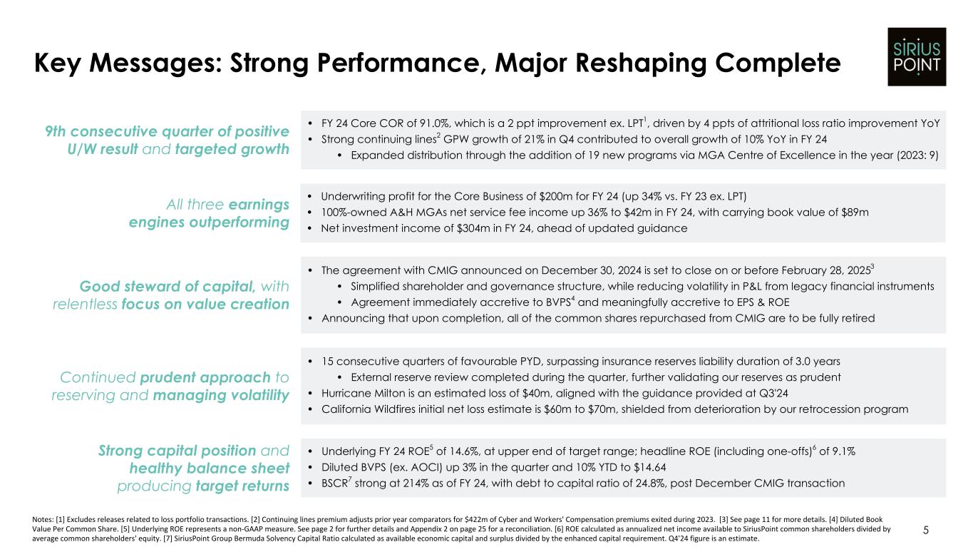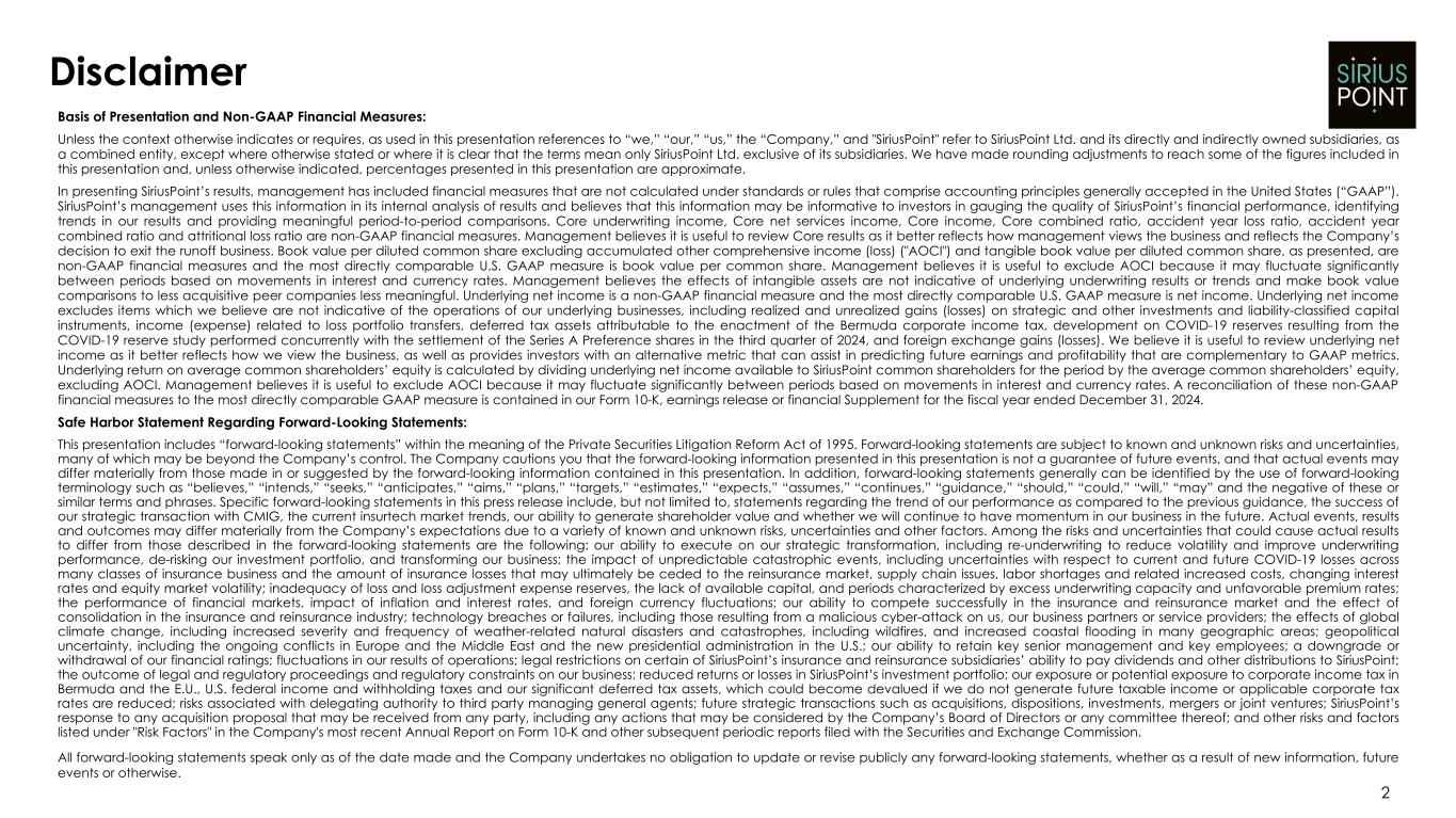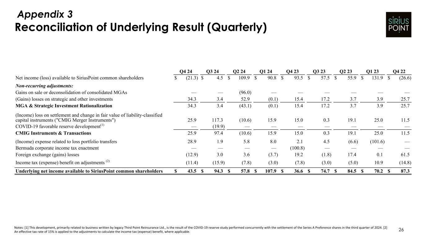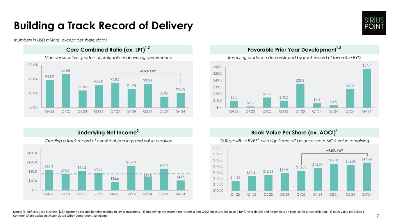 私は、シリウスポイント・チームが、四半期を追うごとに基本的な業績を向上させるために、献身的に取り組んできたことを大変誇りに思っています。彼らが顧客、パートナー、株主のために日々尽力してくれていることに、心から感謝しています。"