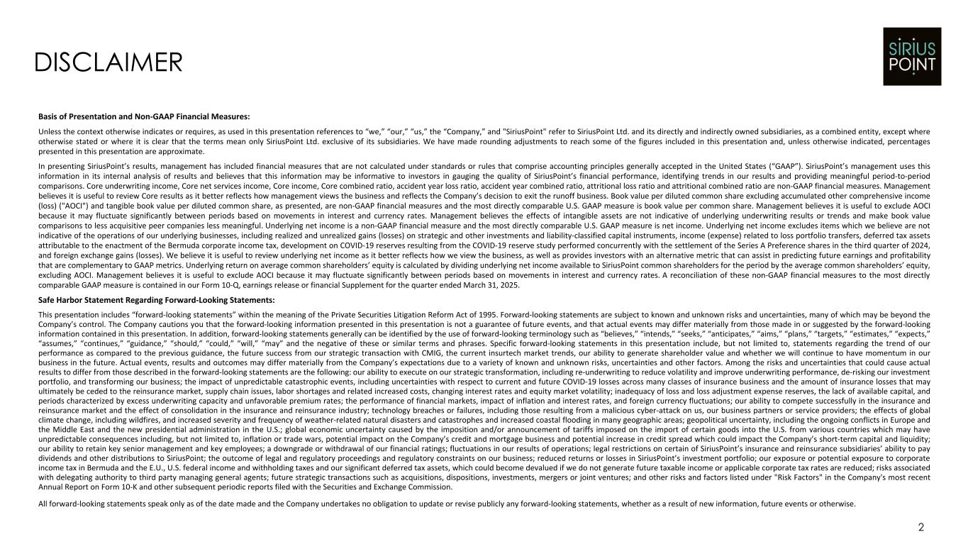 2025年5月5日、シリウスポイント・リミテッドは投資家向けプレゼンテーションにおいて、別紙99.2として添付されている第4四半期財務補足資料、および別紙99.3として添付されているシリウスポイント・リミテッドによるスライドプレゼンテーションを投資家に公開した。