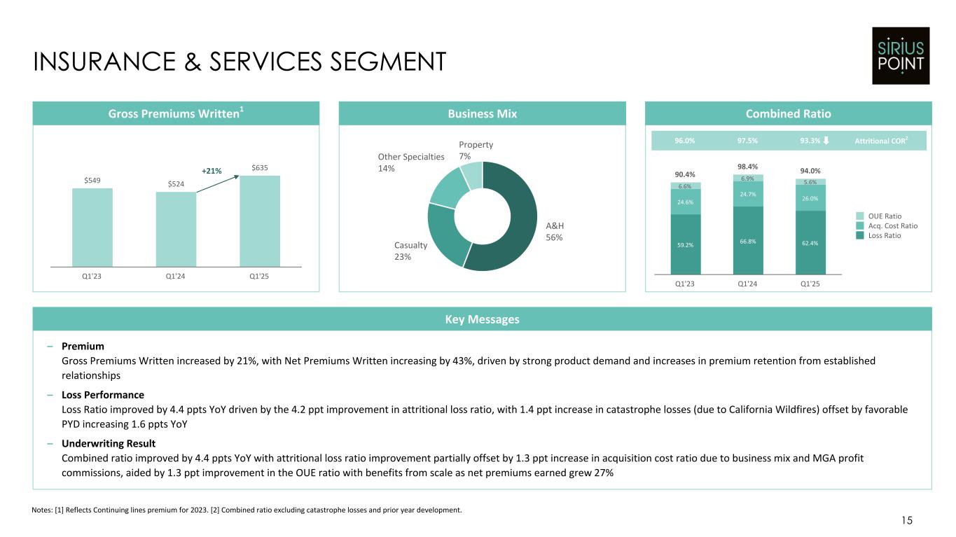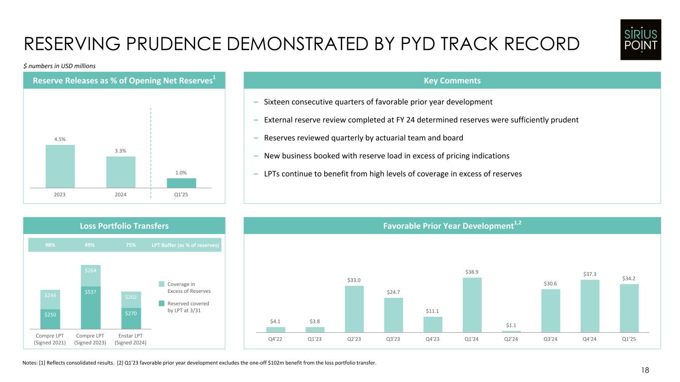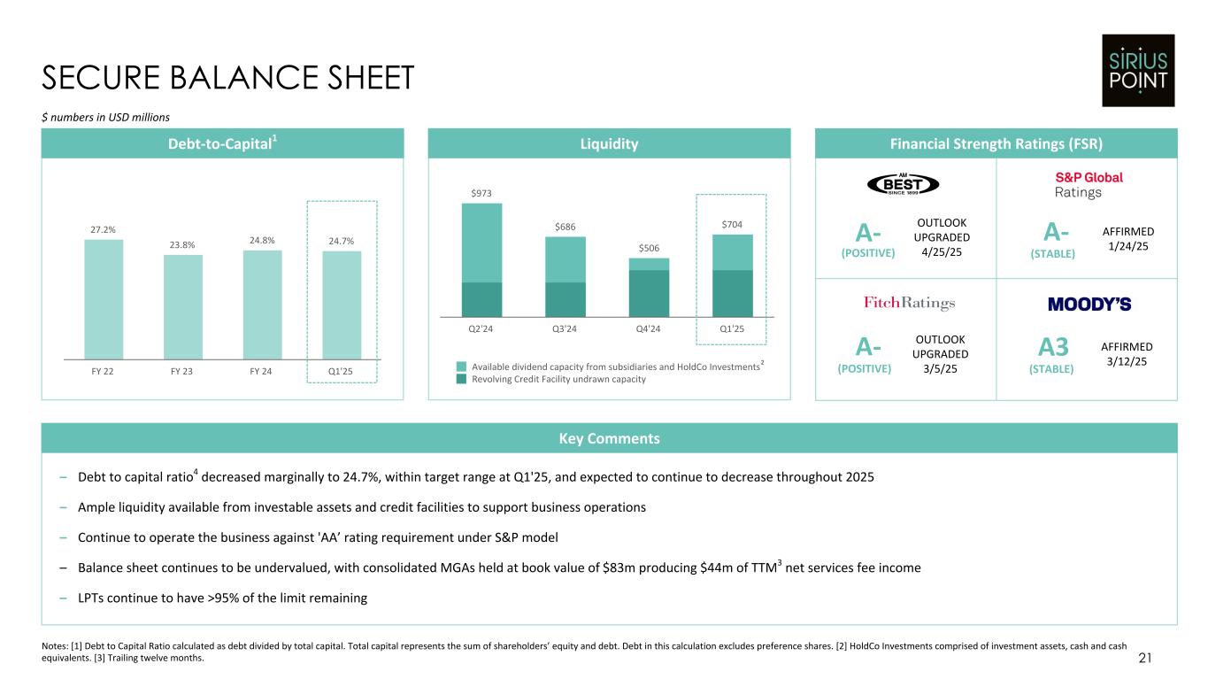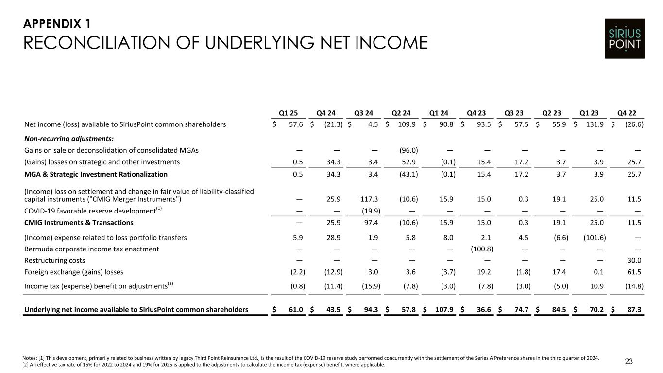 2025年5月5日、バミューダ、ハミルトン発 - シリウスポイント社(SiriusPoint Ltd., NYSE:SPNT)は本日、2025年3月31日に終了した第1四半期の業績を発表した。(NYSE:SPNT)は本日、2025年3月31日に終了した第1四半期の業績を発表しました。