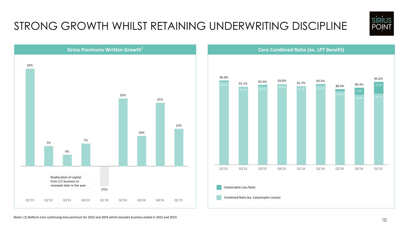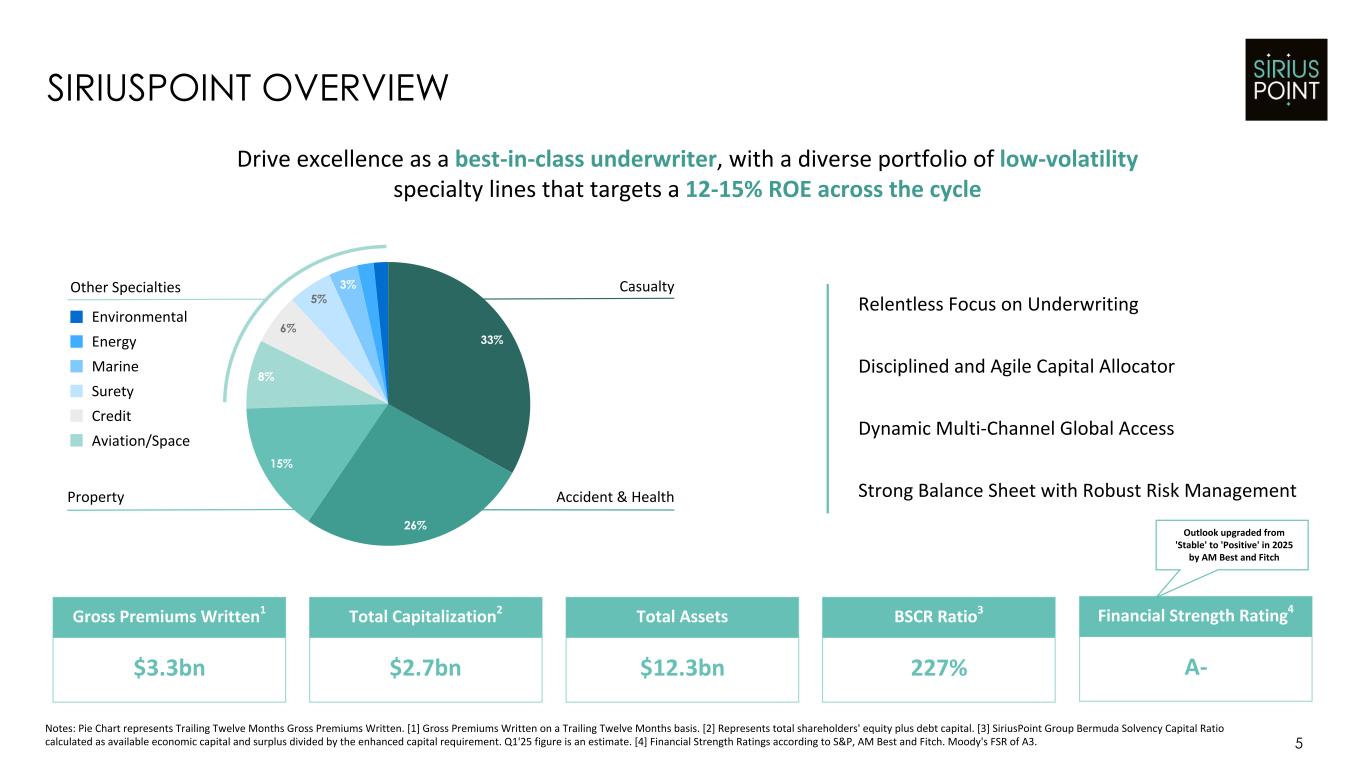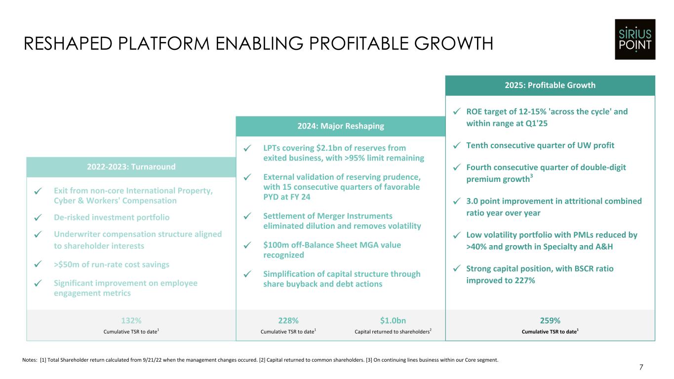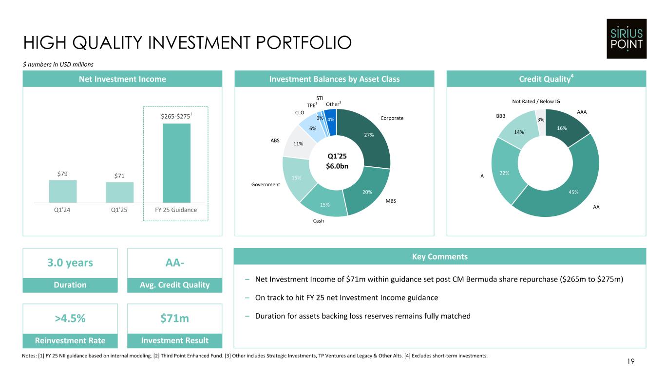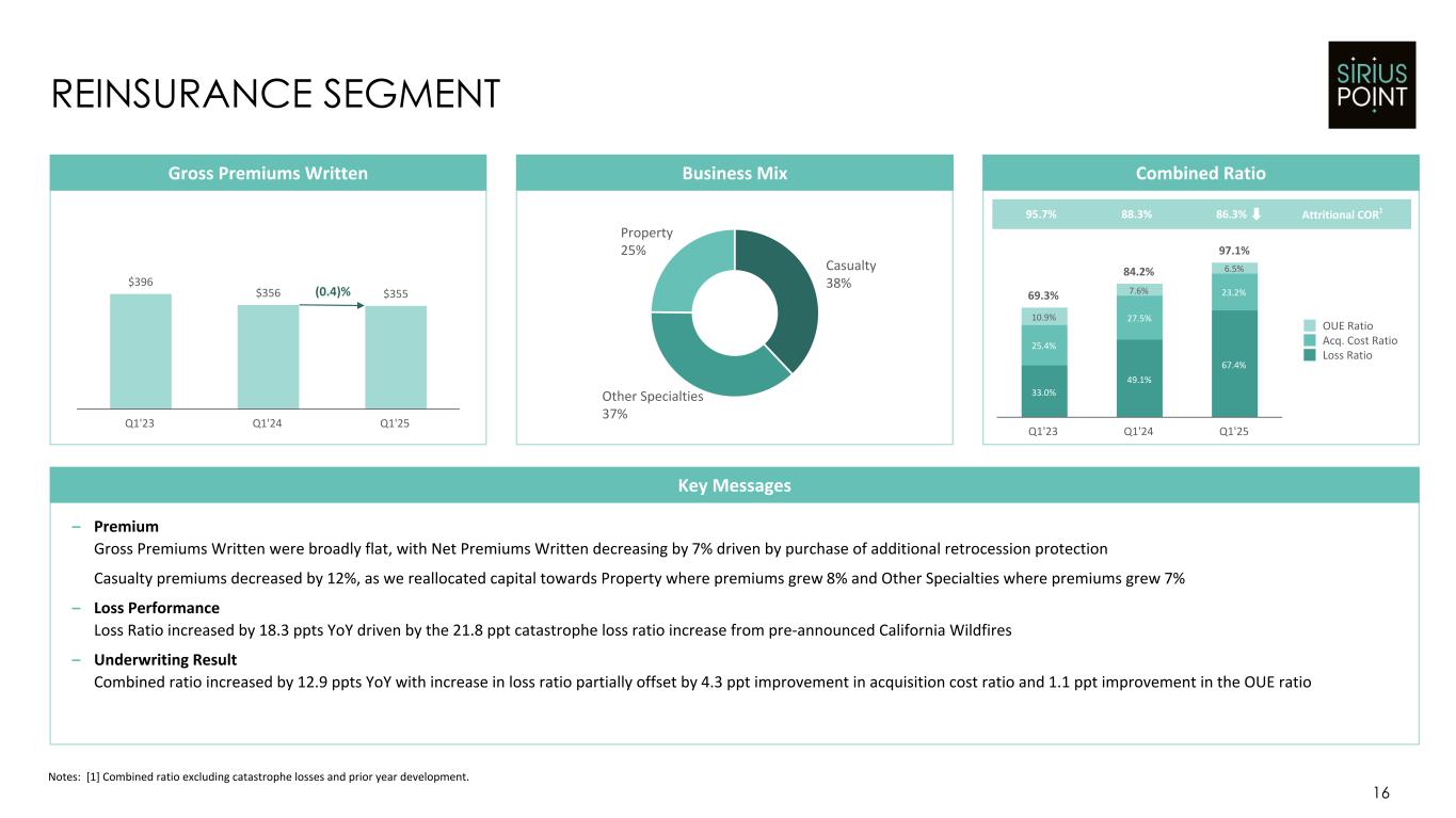 2025年5月5日、バミューダ、ハミルトン発 - シリウスポイント社(SiriusPoint Ltd., NYSE:SPNT)は本日、2025年3月31日に終了した第1四半期の業績を発表した。(NYSE:SPNT)は本日、2025年3月31日に終了した第1四半期の業績を発表しました。
