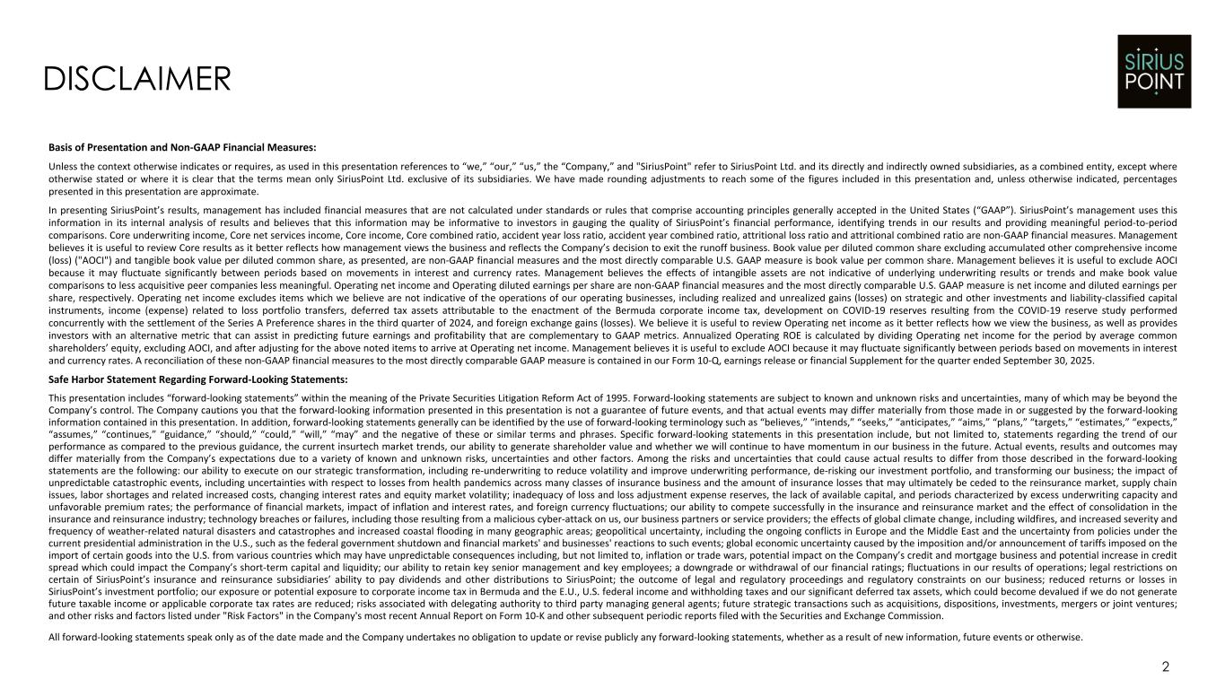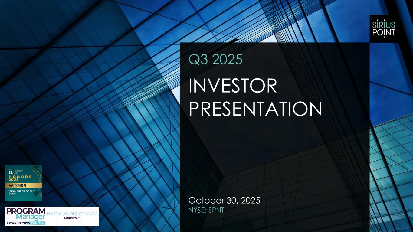 2025年10月30日、シリウスポイント・リミテッドは投資家向けプレゼンテーションにおいて、別紙99.2として添付されている第3四半期財務補足資料、および別紙99.3として添付されているスライドプレゼンテーションを投資家に公開した。