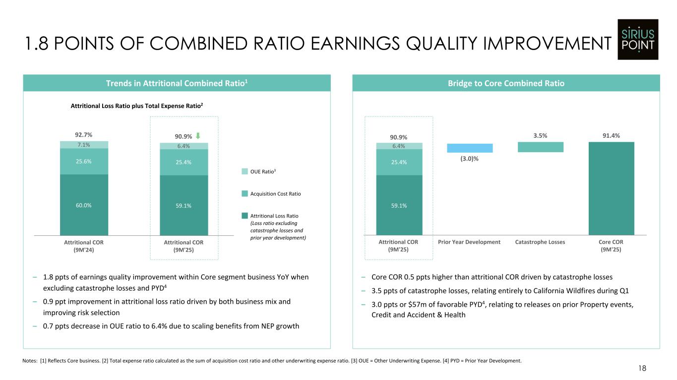 -第3四半期のコア事業のコンバインド・レシオは89.1%、保険引受利益は11%増の7,000万ドル。