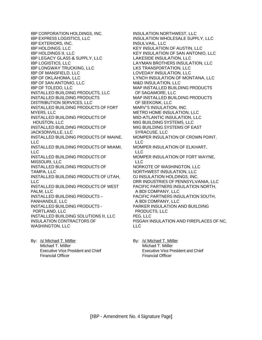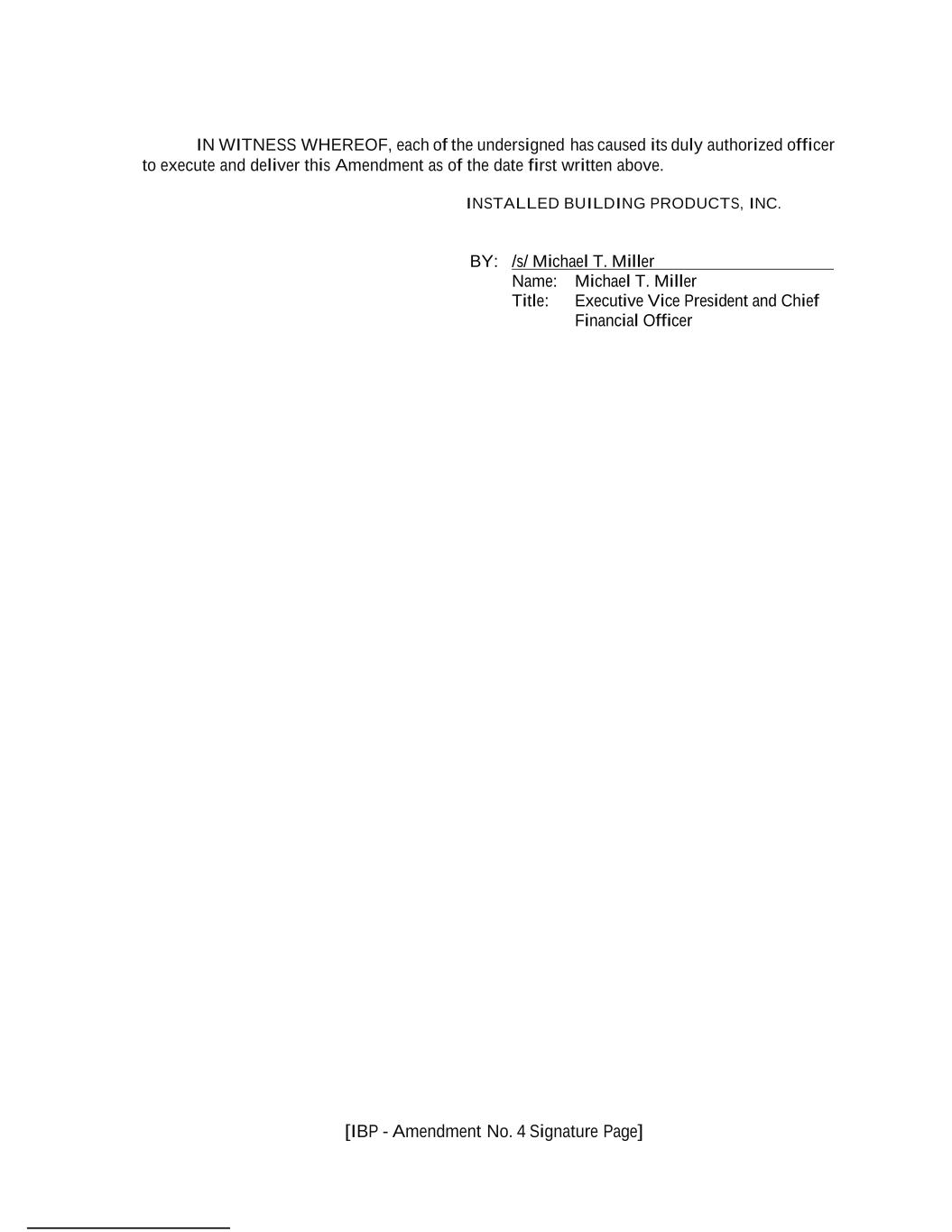 Michael T. Miller, the Executive Vice President and Chief Financial Officer, of Installed Building Products, Inc., certifies that, to the best of his knowledge: