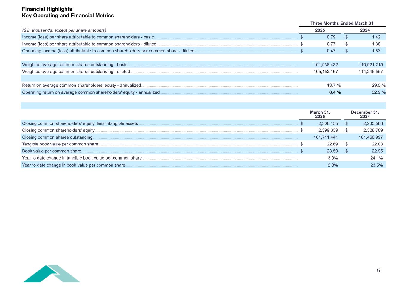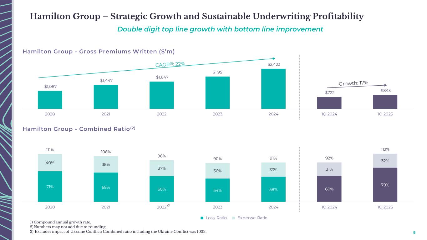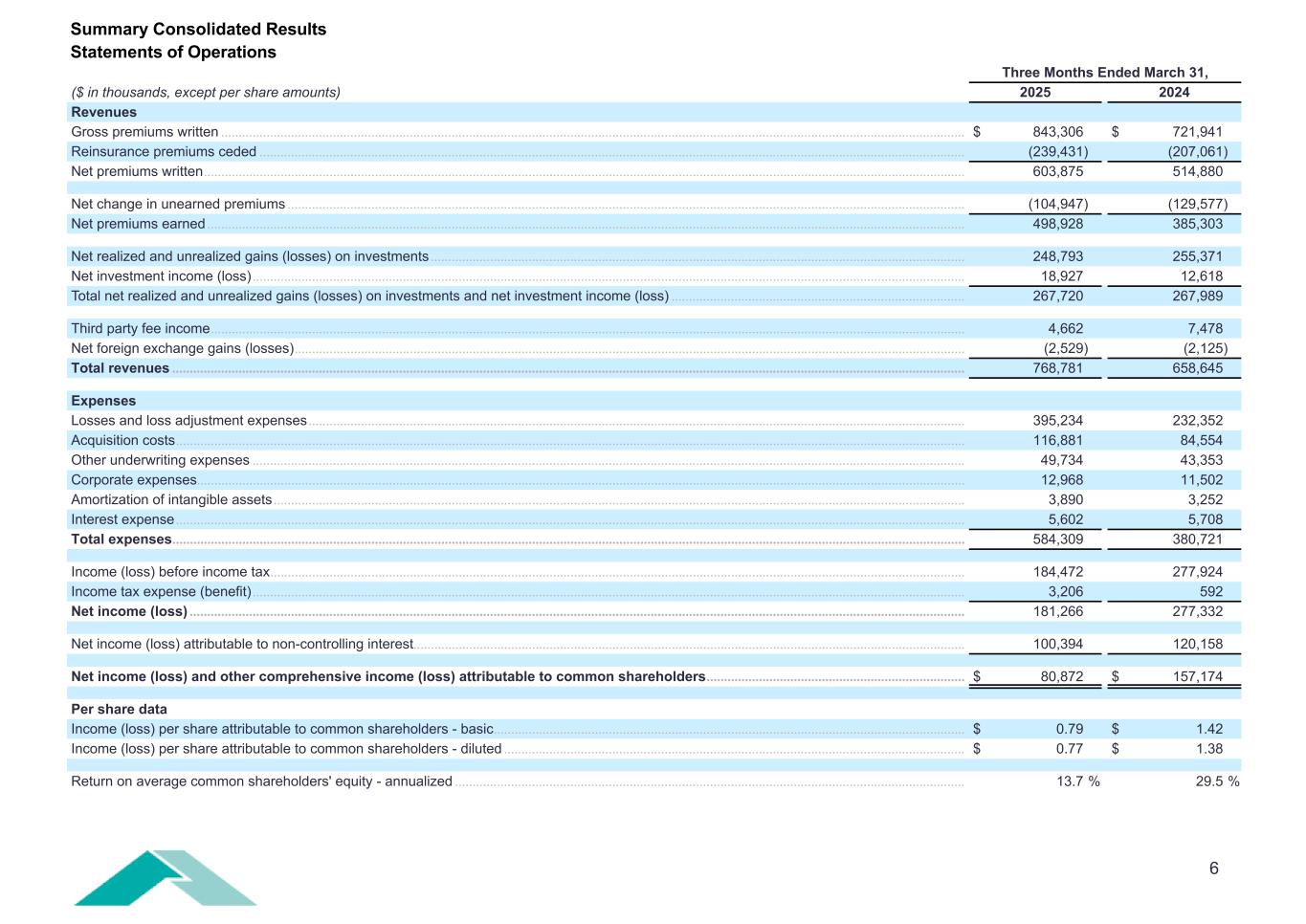 「ハミルトンは、2025 年第 1 四半期のキャタストロフ損害が過去の平均を大幅に上回ったにもかか わらず、8,100 万ドルの純利益を計上し、好調なスタートを切った。