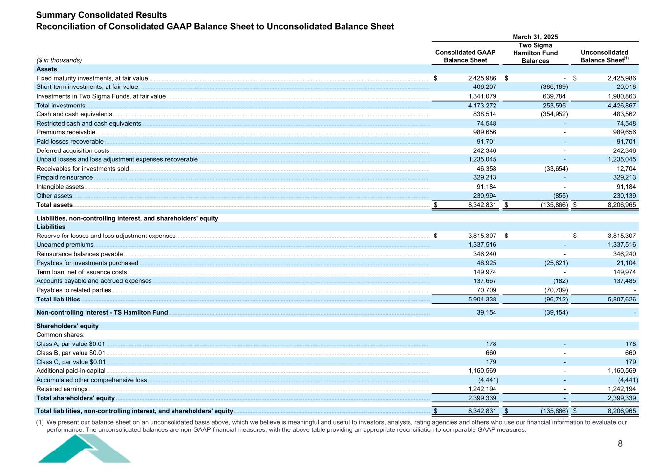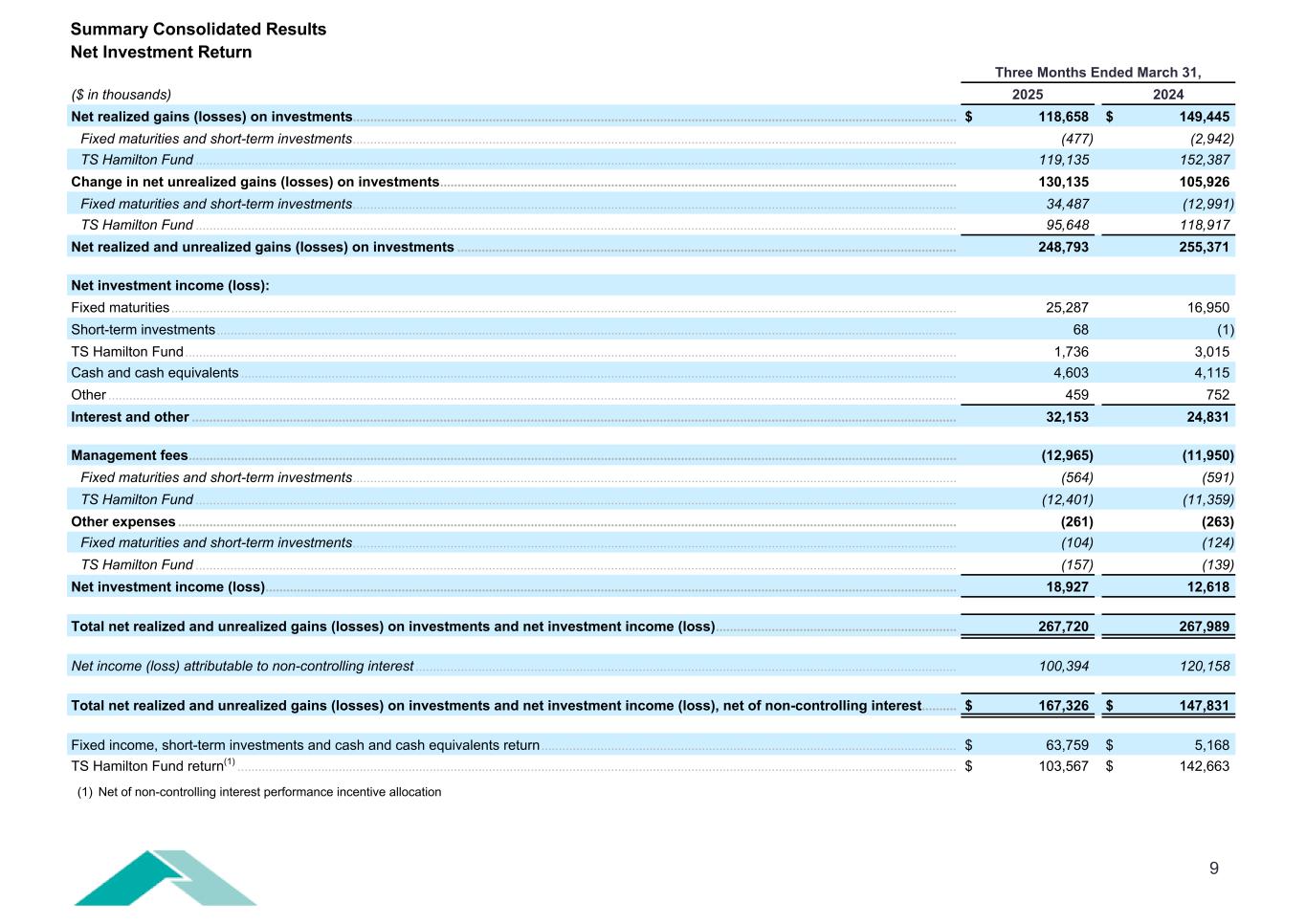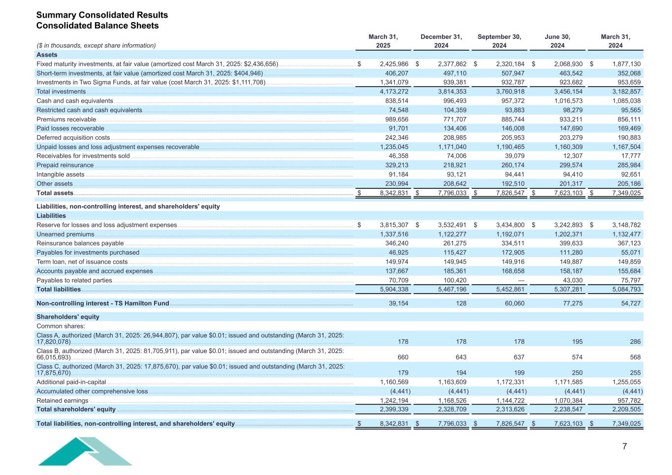 バミューダ、ペンブローク、2025 年 5 月 7 日 - ハミルトン・インシュアランス・グループ(Hamilton Insurance Group, Ltd.(NYSE:HG、以下「ハミルトン」または「当社」)は本日、2025年3月31日に終了した第1四半期の業績を発表した。