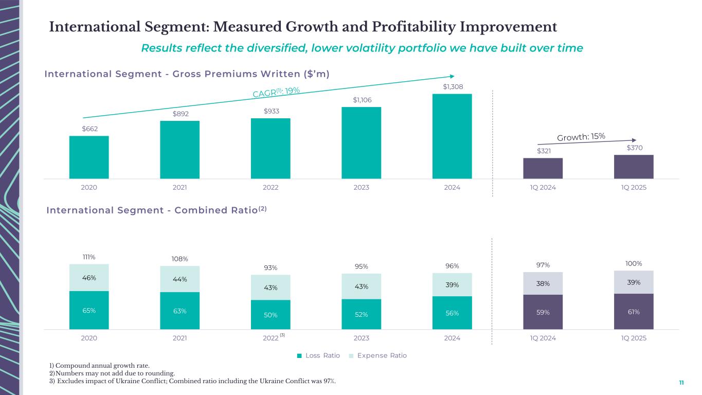 引き続き収益性の高い成長の好機を見出しており、総収入保険料は前年比17%増となった。損害率は51.9%で、基礎となる事業が多様化し、安定性を増していることを反映している。