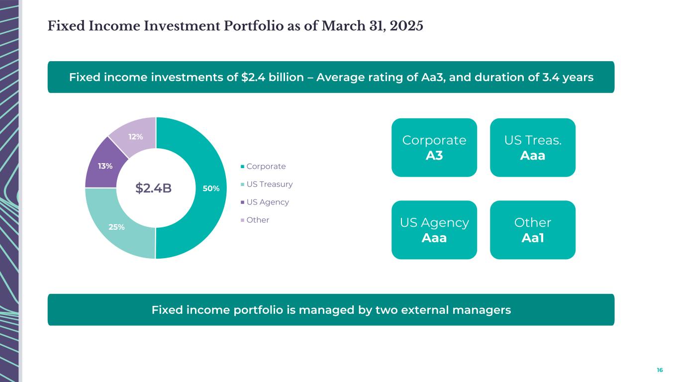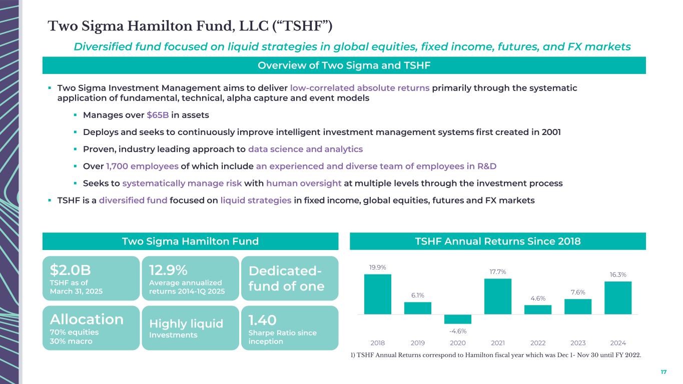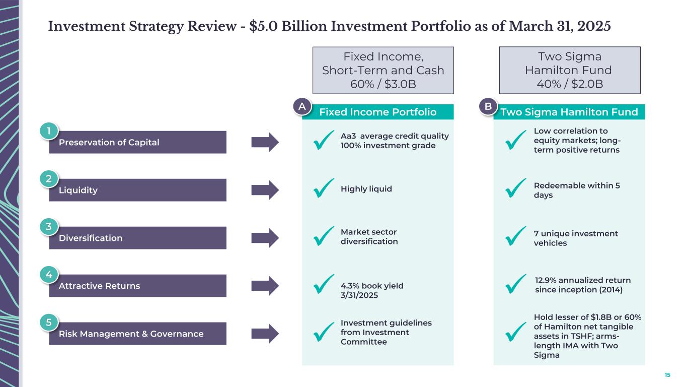 -正味投資利益は1億6,730万ドルで、内訳は2シグマ・ハミルトン・ファンドのリターン1億360万ドル、債券、短期および現金・現金同等物のリターン6,370万ドル;