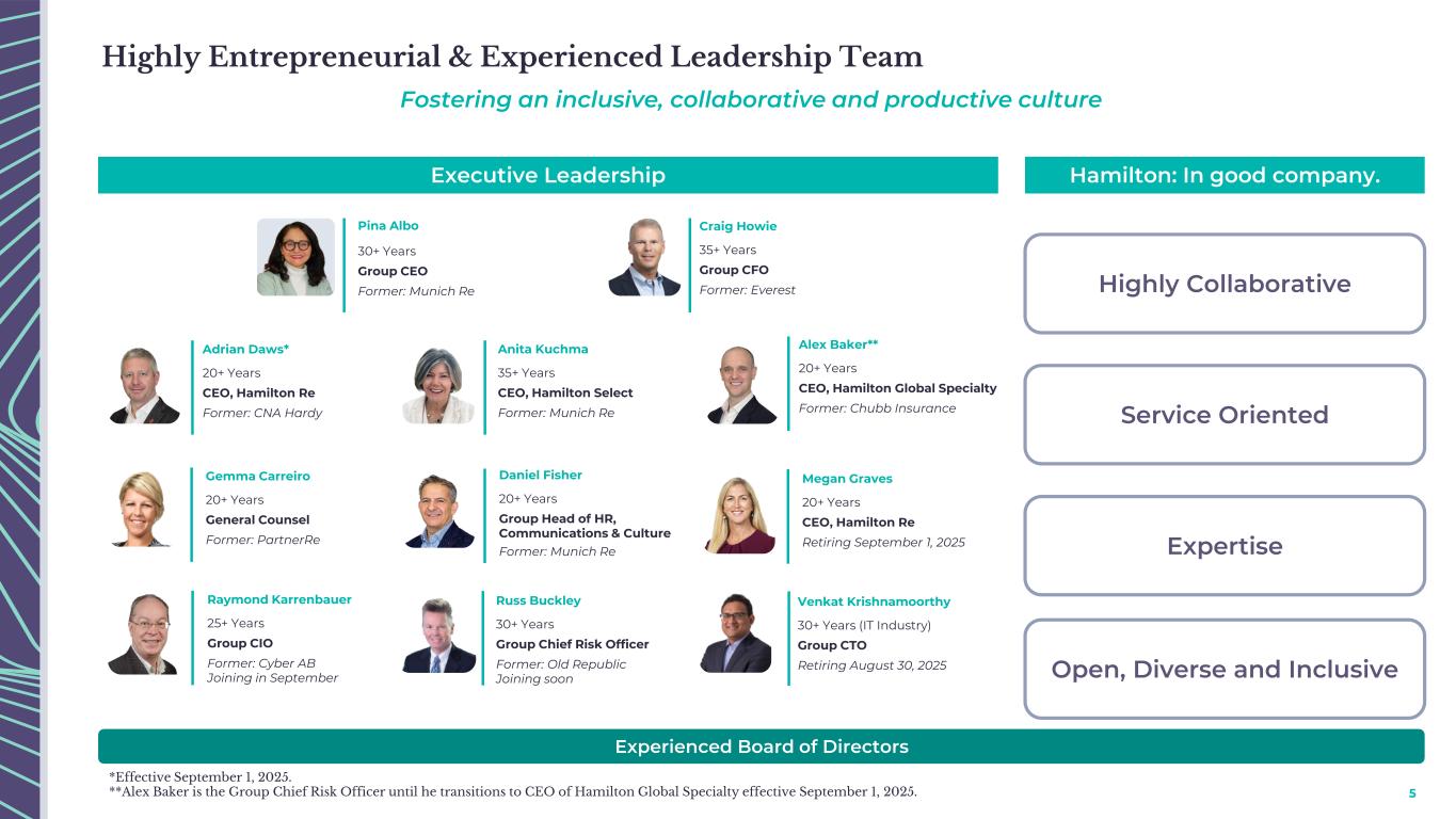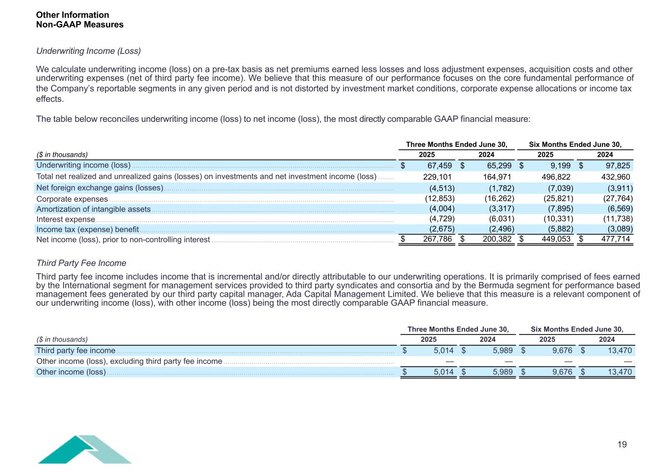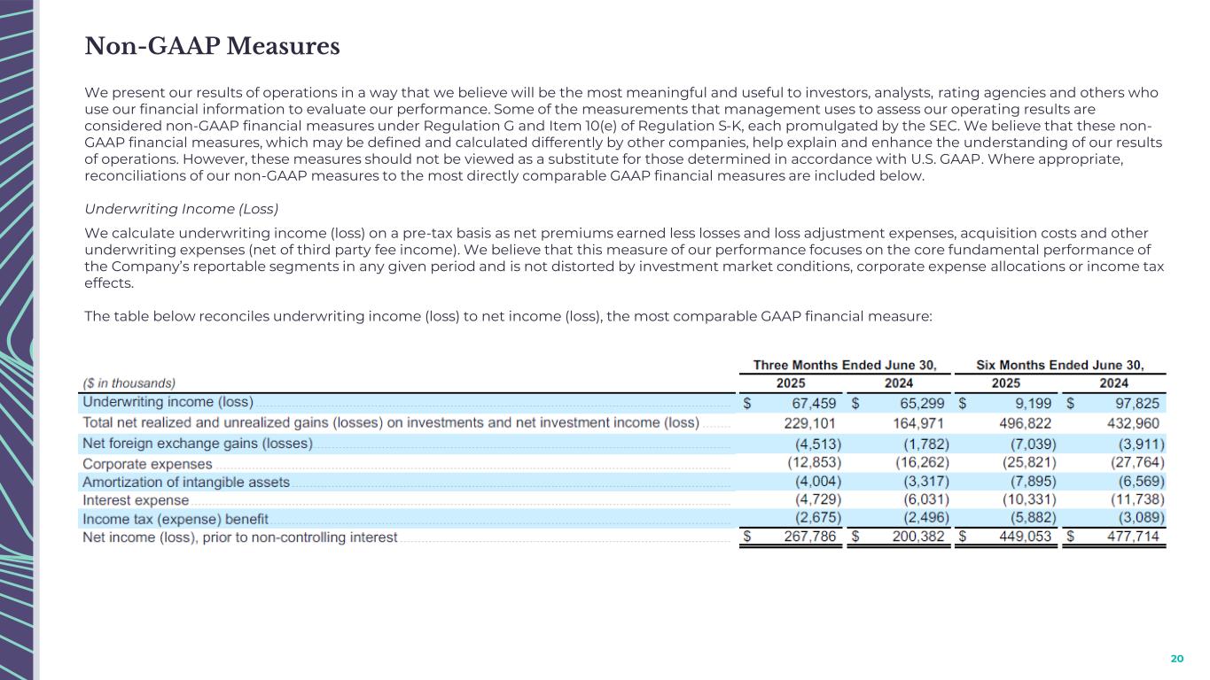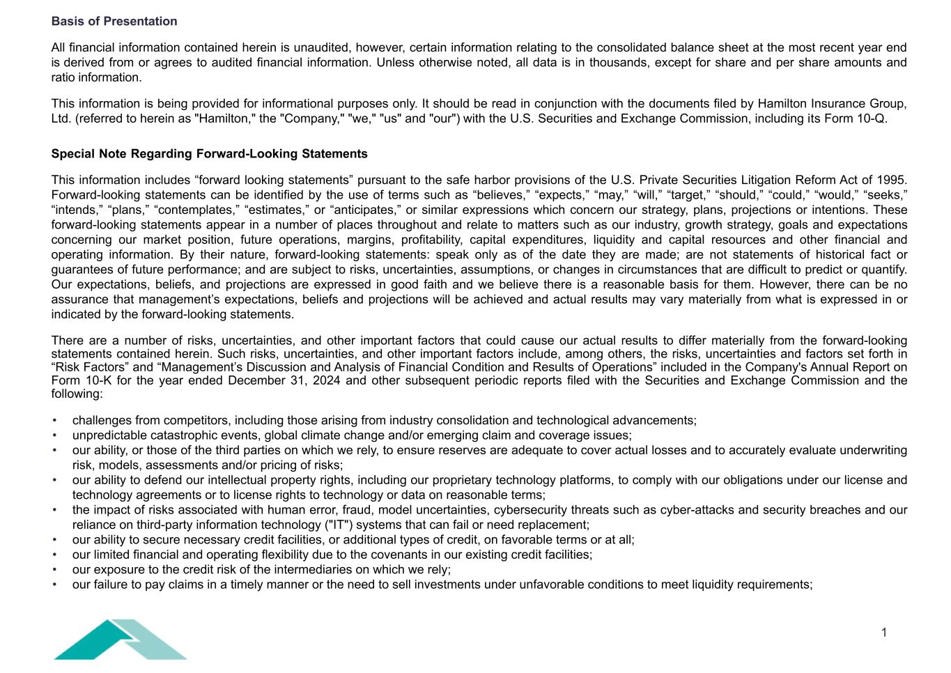 バミューダ、ペンブローク、2025 年 8 月 6 日 - ハミルトン・インシュアランス・グループ(Hamilton Insurance Group, Ltd.(NYSE:HG、以下「ハミルトン」または「当社」)は本日、2025年6月30日に終了した第2四半期の業績を発表した。