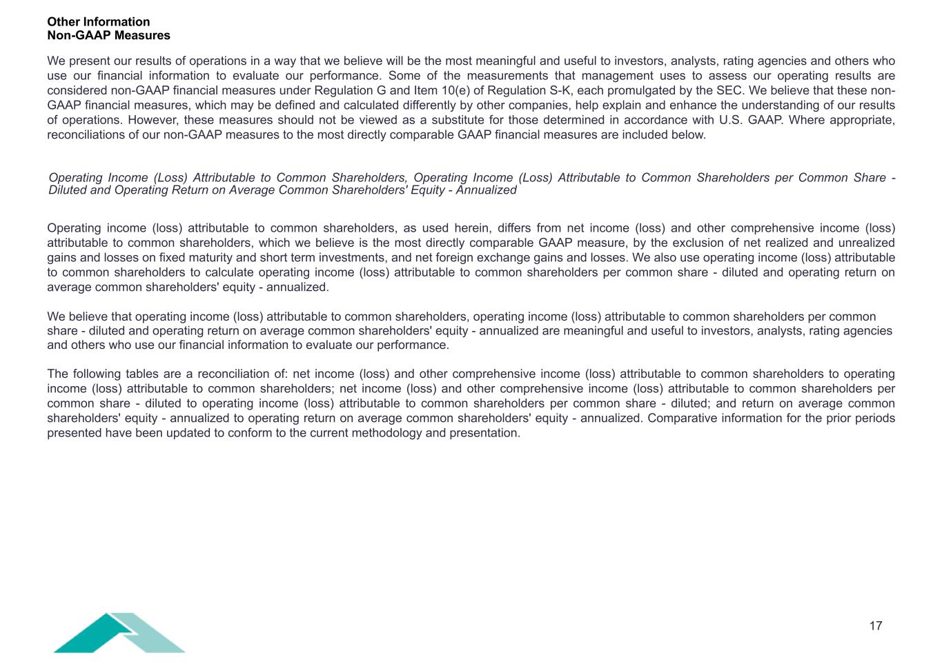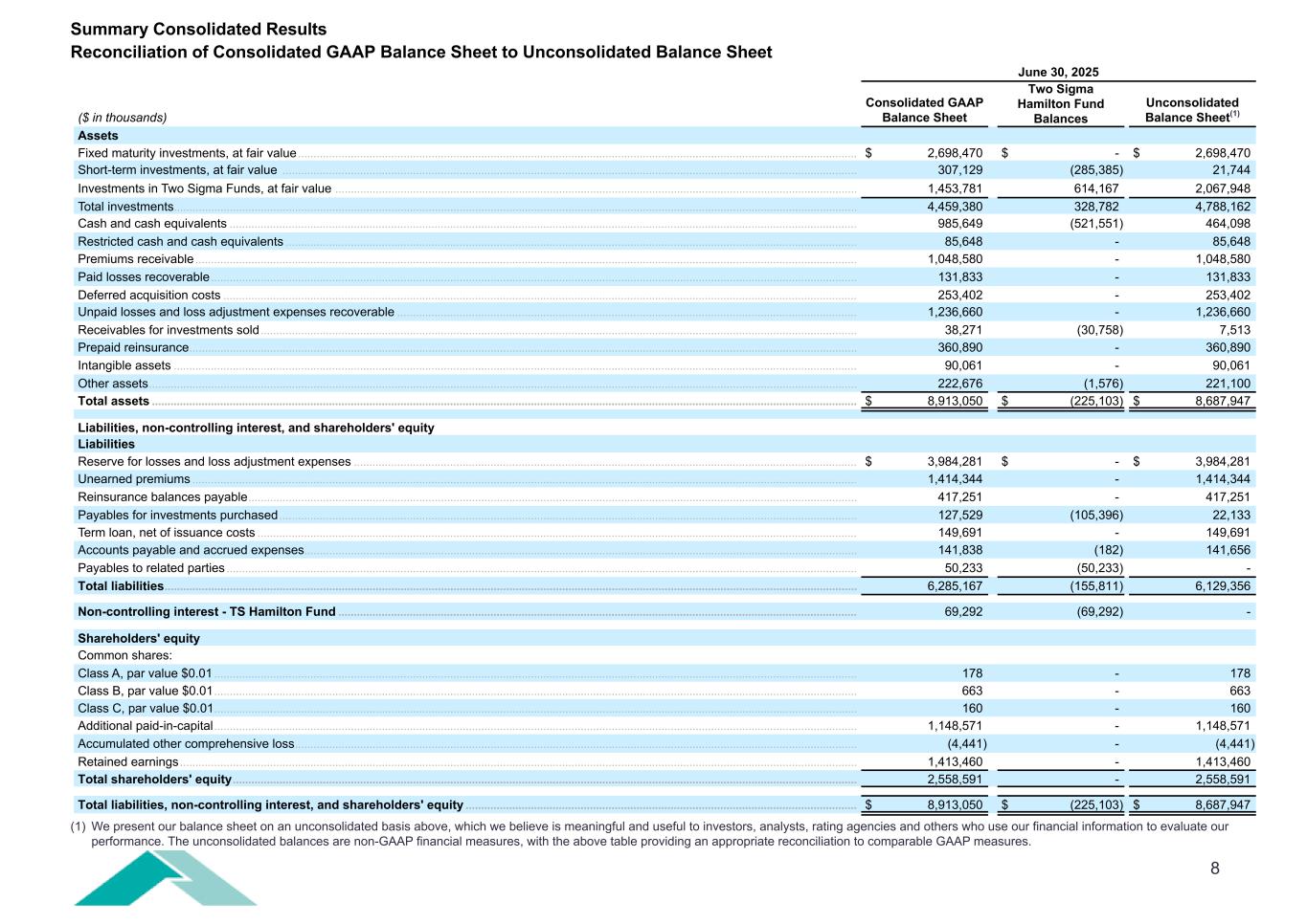 コンバインド・レシオは86.8%で、債券ポートフォリオとツーシグマ・ハミルトン・ファンドからのリターンも好調であった。