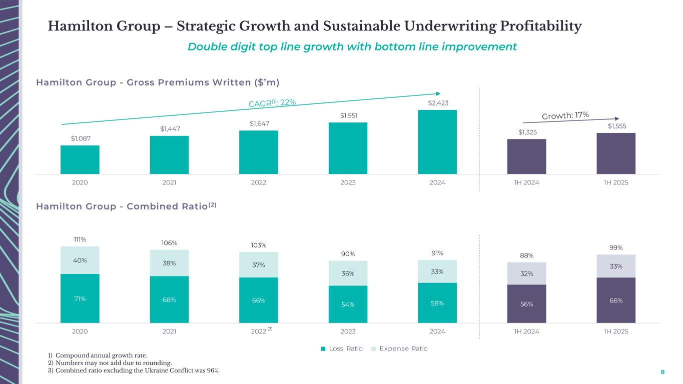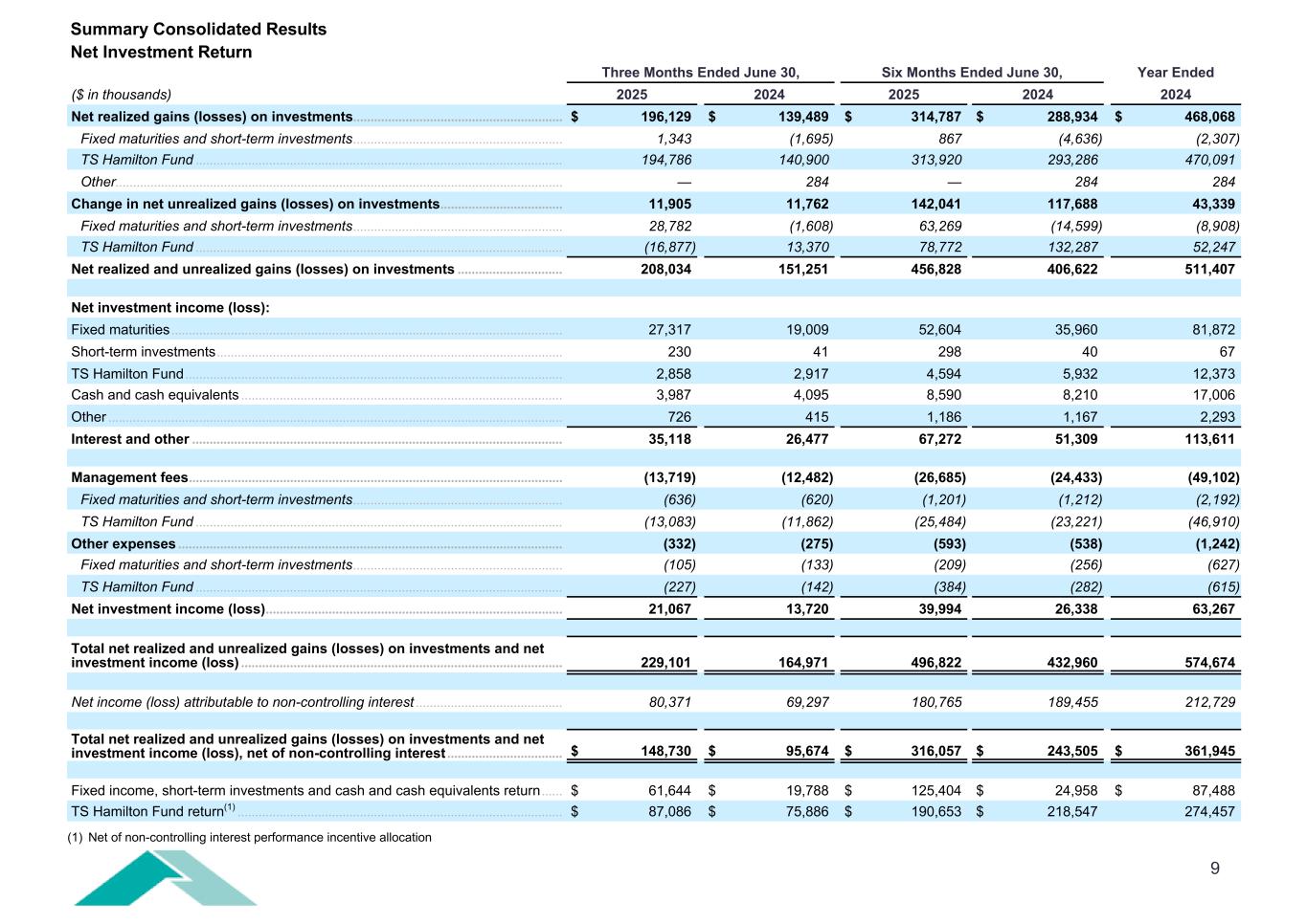 「ハミルトンは当期純利益1億8700万ドルを計上し、その結果、普通株式1株当たりの簿価は8.3%上昇し、平均株主資本利益率は年率換算で30.2%となった。