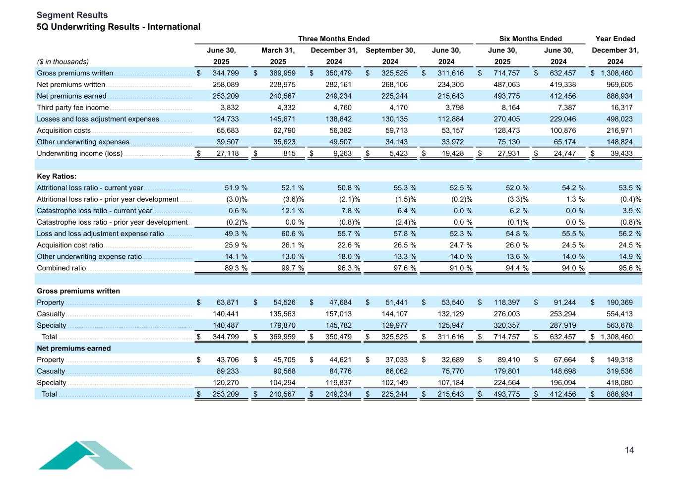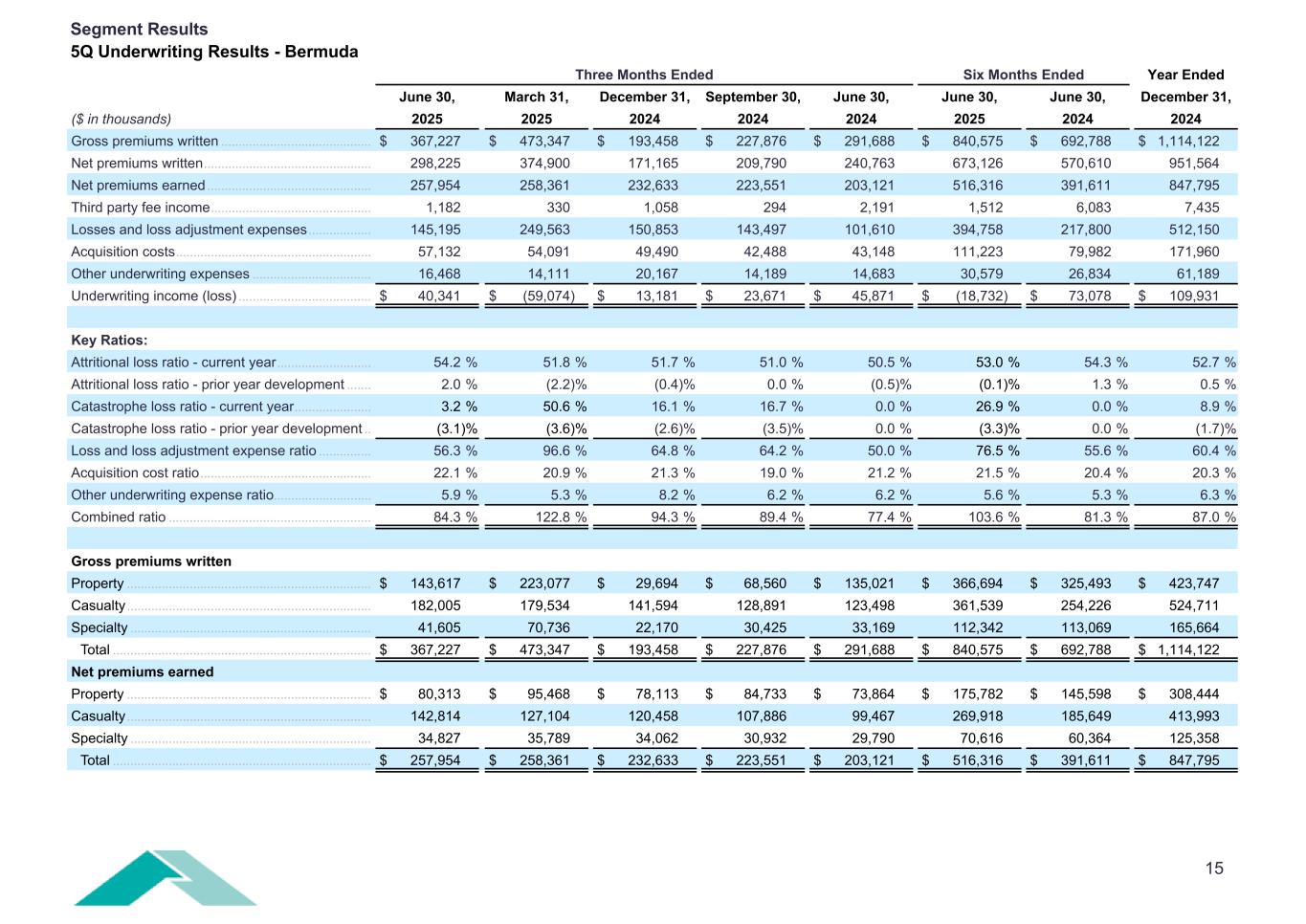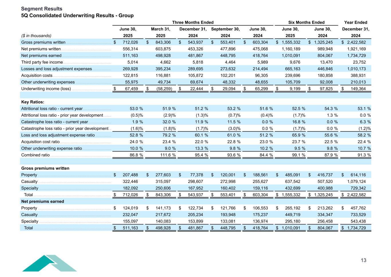 -正味収入保険料は 5 億 1,120 万ドルで、2024 年第 2 四半期と比べ 22.1%の増加;