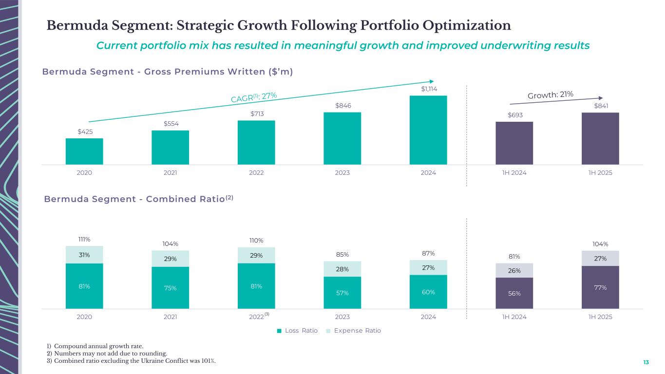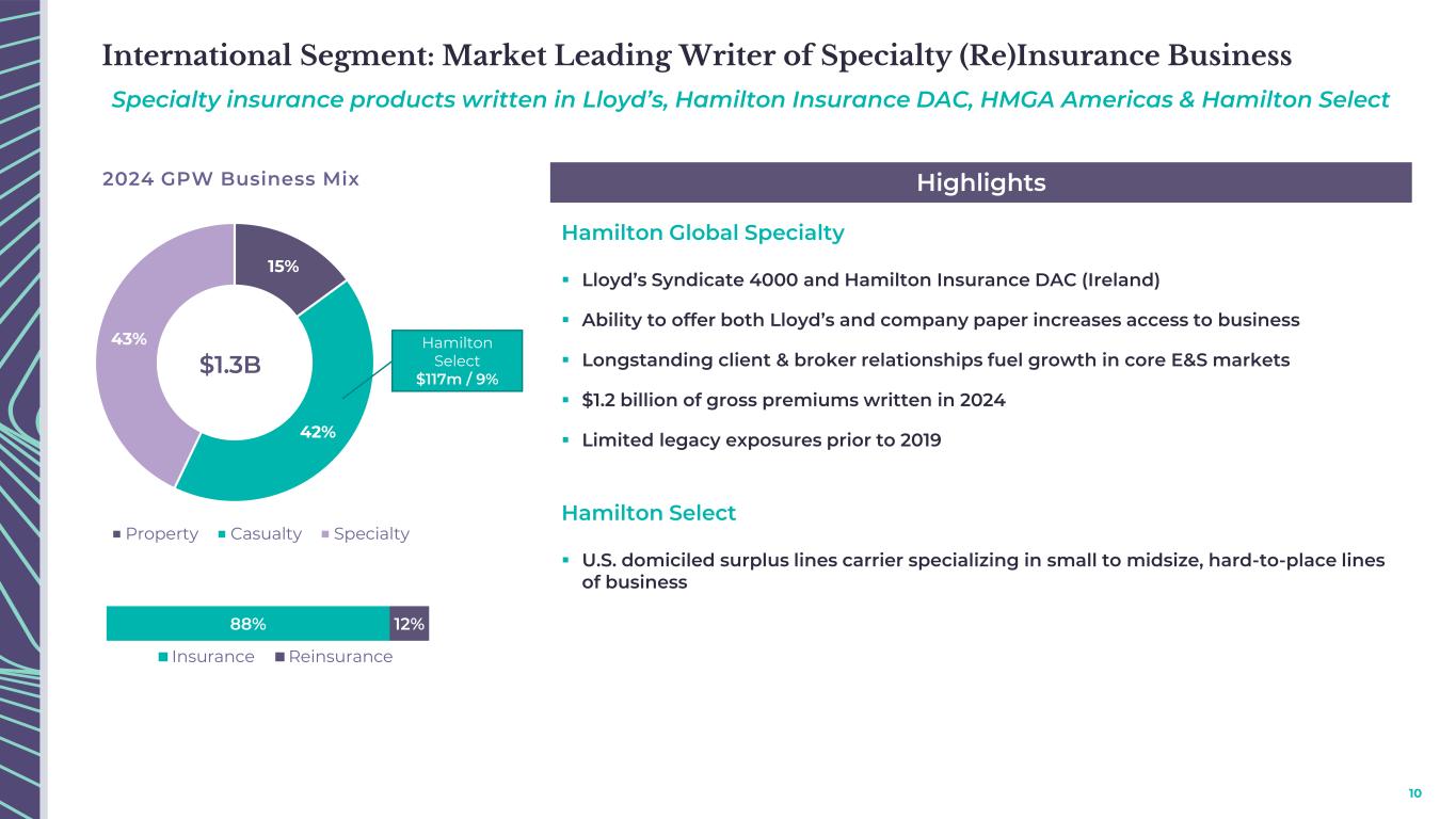 国際事業部門とバミューダ事業部門の各報告部門は、ハミルトンの多角的で良好な事業基盤を反映し、引受成績は堅調に推移し、トップラインも大幅な伸びを示した。
