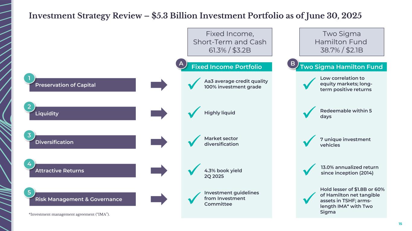 -正味投資利益は1億4,870万ドルで、内訳は2シグマ・ハミルトン・ファンドの8,710万ドルのリターン、債券、短期および現金・現金同等物の6,160万ドルのリターン。