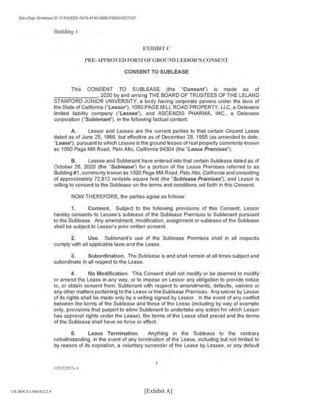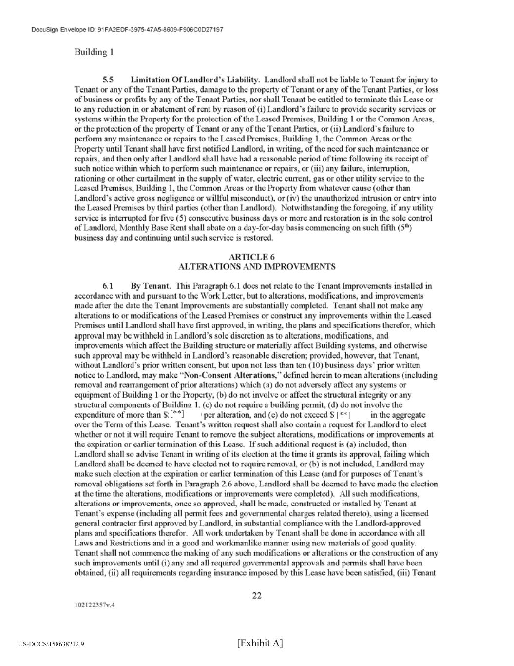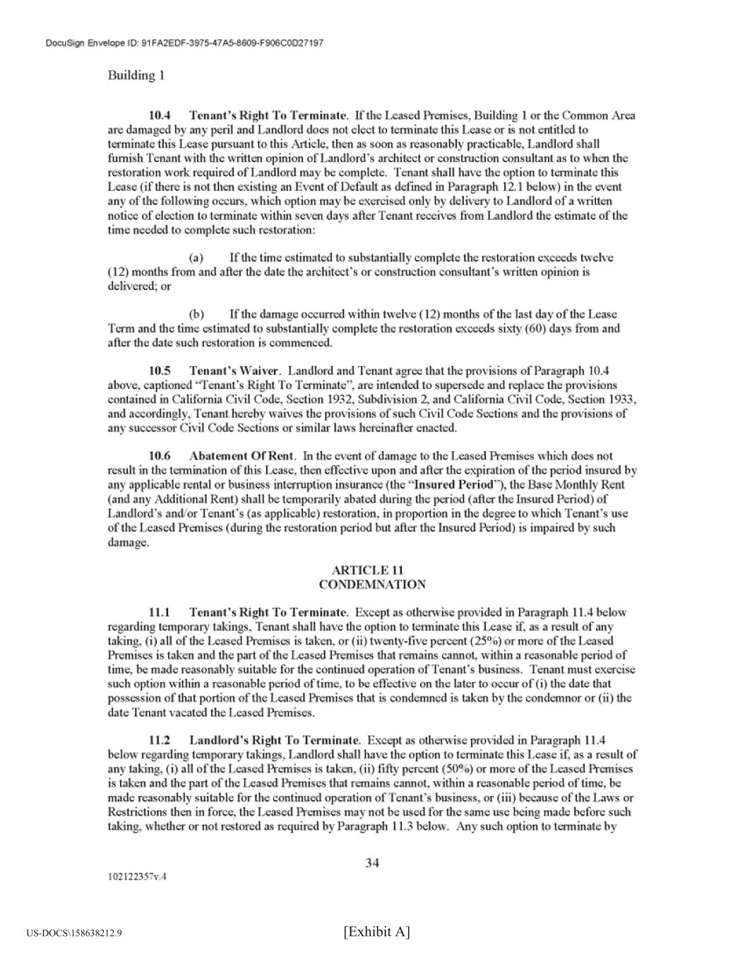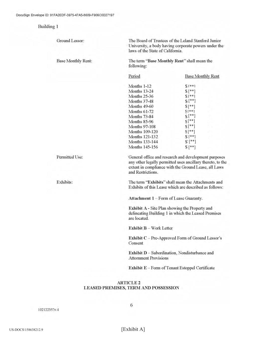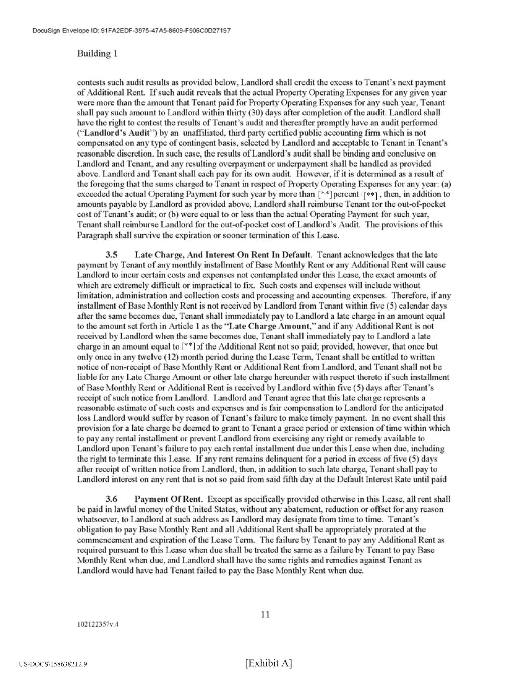 2 expressly acknowledges and agrees Sub-Sublandlord shall not have any obligation to perform any work to prepare the Subleased Premises for Sub-Subtenant’s use and occupancy. 2. Term. Subject to Section 15 herein, the term of this Sub-Sublease (the “Sub- Sublease Term”) shall commence on the date that is the later of: (i) January 1, 2026, and (ii) the date on which Sub-Sublandlord obtains the consent of Sublandlord and Ground Lessor to this Sub- Sublease (“Consent”), in form and substance reasonably satisfactory to Ground Lessor, Sub- Sublandlord and Sub-Subtenant (the “Sublease Commencement Date”) and shall expire on October 28, 2033 (“Sub-Sublease Expiration Date”), unless earlier terminated pursuant to the terms of this Sub-Sublease. 3. Use. Sub-Subtenant shall use the Subleased Premises in compliance with the Sublease, and solely for conducting Sub-Subtenant’s business, which includes general office and research development purposes and other legally permitted uses ancillary thereto. 4. Rent. Sub-Sublandlord shall be responsible for the timely payment of Base Monthly Rent and Additional Rent under the Sublease and otherwise complying with the obligations of Sub-Sublandlord under the Sublease before and during the Sub-Sublease Term. Sub- Subtenant shall pay to Sub-Sublandlord the following as Sub-Sublease rent hereunder: 5. Sublease Term Rent; Rent Commencement Date. Beginning on the Sub- Sublease Rent Commencement Date, and continuing during the Sub-Sublease Term, Sub- Subtenant shall pay to Sub-Sublandlord, as sublease rent (“Monthly Sub-Sublease Rent”) and in lieu of the Base Monthly Rent set forth in the Sublease, in lawful money of the United States of America, without any deduction, offset, prior notice or demand, in advance on the first business day of each month of the Sub-Sublease Term from the Sub-Sublease Rent Commencement Date through the Sublease Expiration Date, the amount of $[**] (based on a rental rate of $[**] per rentable square foot of the Subleased Premises), plus Sub-Subtenant’s Share (as defined below) of Additional Rent (as defined in the Sublease) required under the Sublease with respect to the Subleased Premises in and for the Sublease Term, excluding only utility usage and janitorial services, any late fees, damages or penalties arising from Sublandlord’s breach of the Master Lease (other than those, if any, resulting from Subtenant’s failure to comply with this Sublease), and except as otherwise provided in this Sublease. Sub-Sublandlord shall provide Sub-Subtenant any documentation actually received by Sub-Sublandlord with respect to such Additional Rent amounts and will reasonably cooperate to obtain any other documentation reasonably requested by Sub-Subtenant with respect to such Additional Rents. Notwithstanding anything to the contrary contained in this Sub-Sublease, Sub-Subtenant’s obligation for payment of Monthly Sub-Sublease Rent shall be conditionally abated for each of the initial [**] ([**]) full calendar months of the Sub-Sublease Term by [**] percent ([**]%) (“Abatement”), provided that in the event of the termination of this Sub-Sublease due to a breach by Sub-Subtenant under this Sub-Sublease, then, in addition to all other rights and remedies of Sub-Sublandlord, the amount of Monthly Sub- Sublease Rent theretofore so conditionally abated shall be immediately due and payable in full to Sub-Sublandlord (“Inducement Recapture”) and Sub-Subtenant shall not be entitled to any further conditional abatement of Monthly Sub-Sublease Rent hereunder. Such abatement shall apply to Monthly Sub-Sublease Rent only and shall not relieve Sub-Subtenant of any other obligations under this Sub-Sublease including, without limitation, the obligation to pay Additional Rent hereunder. As used herein, “Sub-Sublease Rent Commencement Date” shall mean the Sub-
