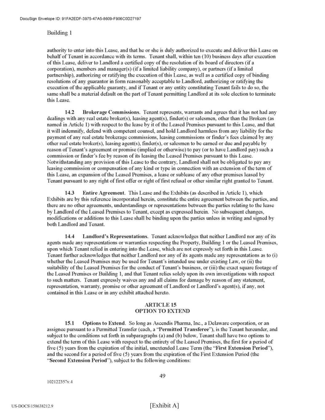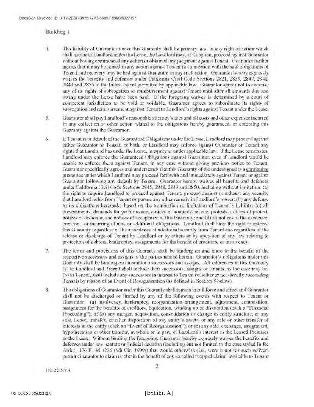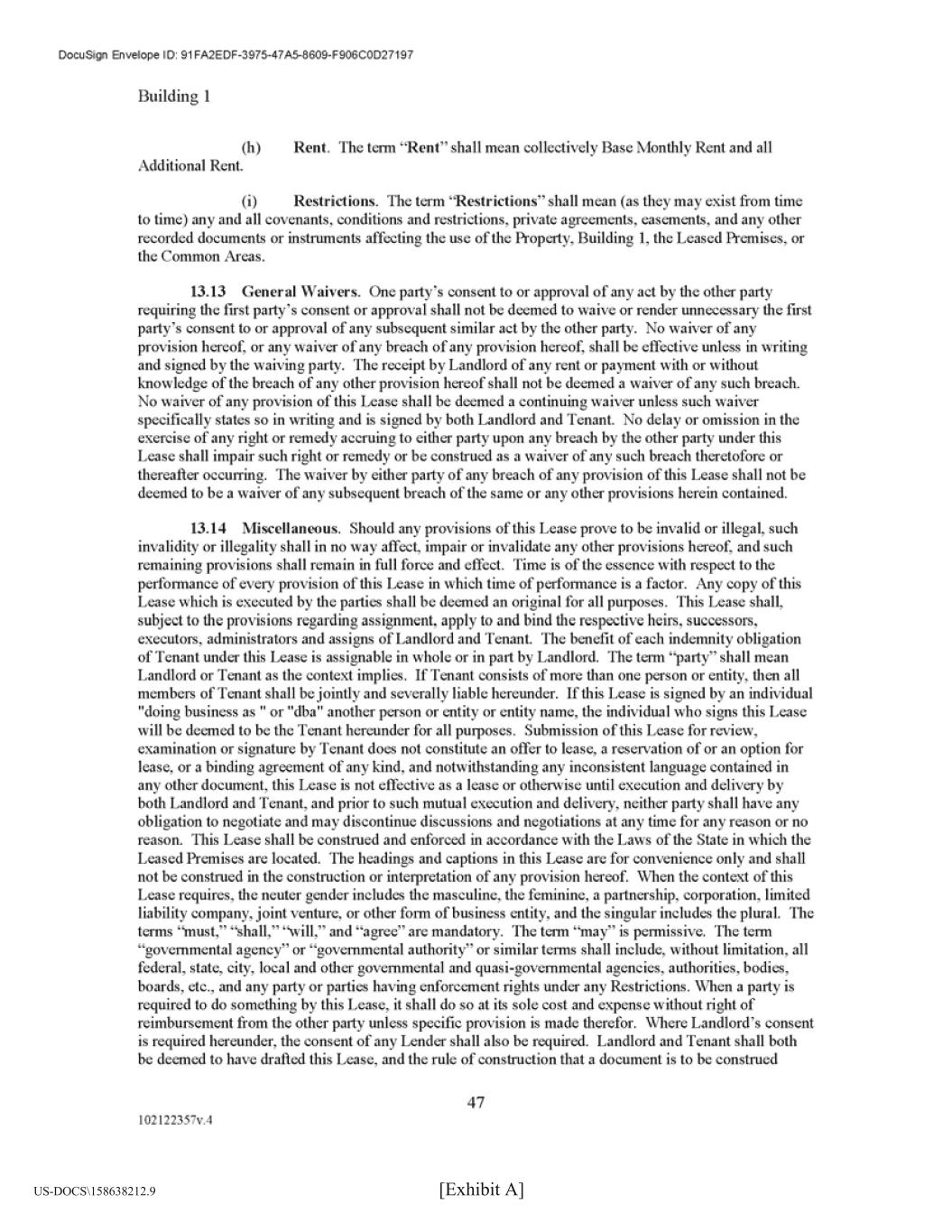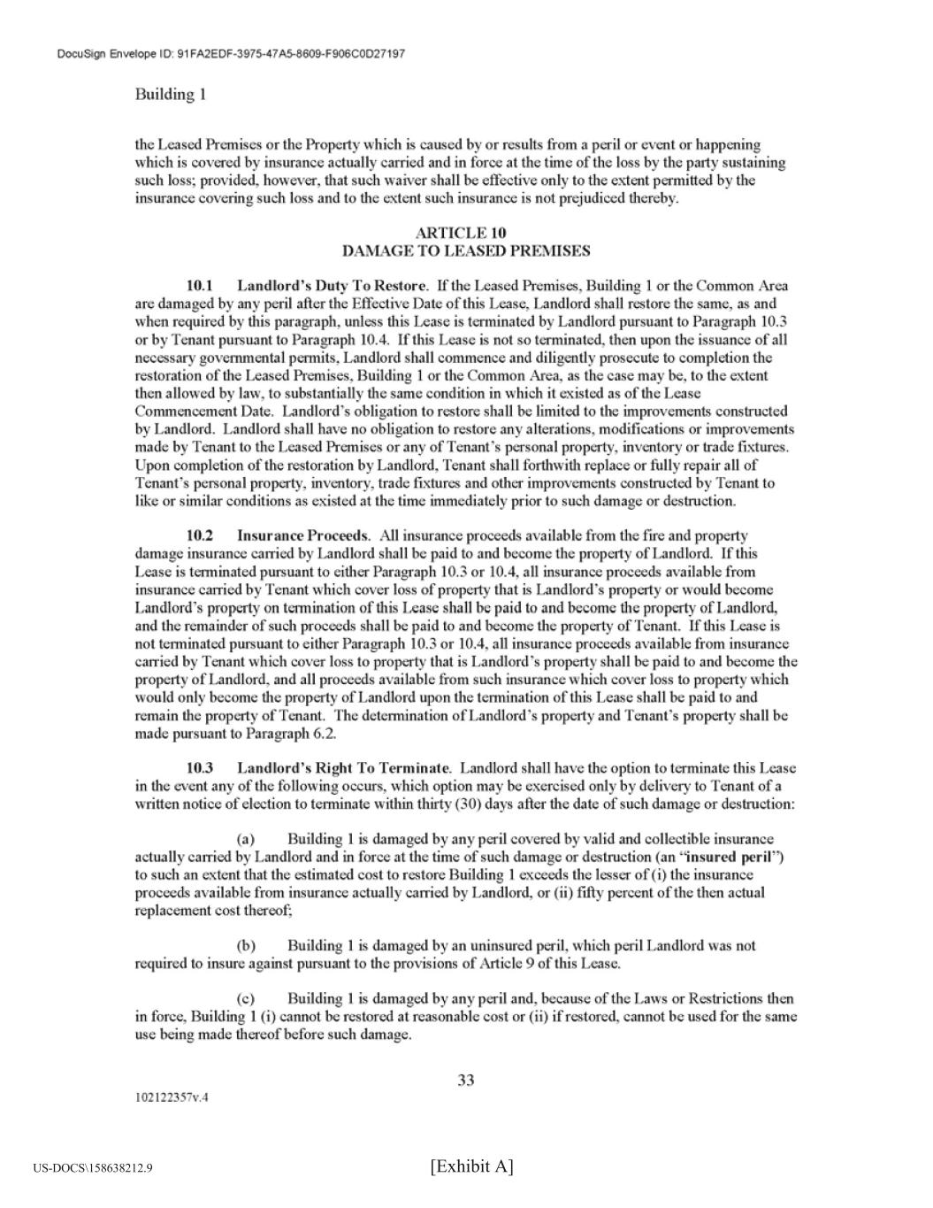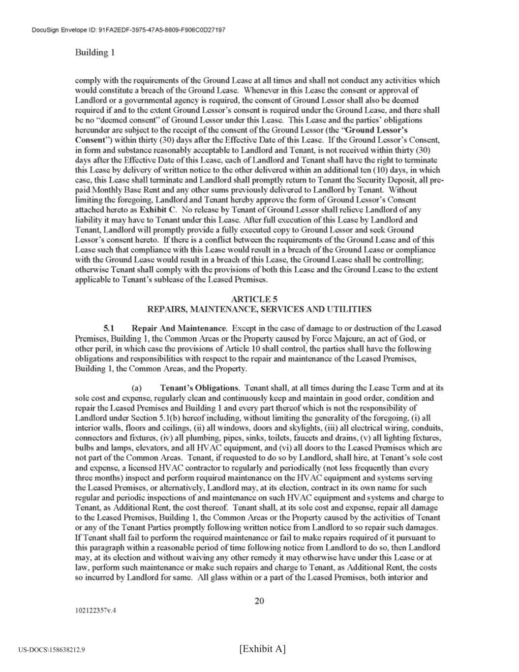 2 expressly acknowledges and agrees Sub-Sublandlord shall not have any obligation to perform any work to prepare the Subleased Premises for Sub-Subtenant’s use and occupancy. 2. Term. Subject to Section 15 herein, the term of this Sub-Sublease (the “Sub- Sublease Term”) shall commence on the date that is the later of: (i) January 1, 2026, and (ii) the date on which Sub-Sublandlord obtains the consent of Sublandlord and Ground Lessor to this Sub- Sublease (“Consent”), in form and substance reasonably satisfactory to Ground Lessor, Sub- Sublandlord and Sub-Subtenant (the “Sublease Commencement Date”) and shall expire on October 28, 2033 (“Sub-Sublease Expiration Date”), unless earlier terminated pursuant to the terms of this Sub-Sublease. 3. Use. Sub-Subtenant shall use the Subleased Premises in compliance with the Sublease, and solely for conducting Sub-Subtenant’s business, which includes general office and research development purposes and other legally permitted uses ancillary thereto. 4. Rent. Sub-Sublandlord shall be responsible for the timely payment of Base Monthly Rent and Additional Rent under the Sublease and otherwise complying with the obligations of Sub-Sublandlord under the Sublease before and during the Sub-Sublease Term. Sub- Subtenant shall pay to Sub-Sublandlord the following as Sub-Sublease rent hereunder: 5. Sublease Term Rent; Rent Commencement Date. Beginning on the Sub- Sublease Rent Commencement Date, and continuing during the Sub-Sublease Term, Sub- Subtenant shall pay to Sub-Sublandlord, as sublease rent (“Monthly Sub-Sublease Rent”) and in lieu of the Base Monthly Rent set forth in the Sublease, in lawful money of the United States of America, without any deduction, offset, prior notice or demand, in advance on the first business day of each month of the Sub-Sublease Term from the Sub-Sublease Rent Commencement Date through the Sublease Expiration Date, the amount of $[**] (based on a rental rate of $[**] per rentable square foot of the Subleased Premises), plus Sub-Subtenant’s Share (as defined below) of Additional Rent (as defined in the Sublease) required under the Sublease with respect to the Subleased Premises in and for the Sublease Term, excluding only utility usage and janitorial services, any late fees, damages or penalties arising from Sublandlord’s breach of the Master Lease (other than those, if any, resulting from Subtenant’s failure to comply with this Sublease), and except as otherwise provided in this Sublease. Sub-Sublandlord shall provide Sub-Subtenant any documentation actually received by Sub-Sublandlord with respect to such Additional Rent amounts and will reasonably cooperate to obtain any other documentation reasonably requested by Sub-Subtenant with respect to such Additional Rents. Notwithstanding anything to the contrary contained in this Sub-Sublease, Sub-Subtenant’s obligation for payment of Monthly Sub-Sublease Rent shall be conditionally abated for each of the initial [**] ([**]) full calendar months of the Sub-Sublease Term by [**] percent ([**]%) (“Abatement”), provided that in the event of the termination of this Sub-Sublease due to a breach by Sub-Subtenant under this Sub-Sublease, then, in addition to all other rights and remedies of Sub-Sublandlord, the amount of Monthly Sub- Sublease Rent theretofore so conditionally abated shall be immediately due and payable in full to Sub-Sublandlord (“Inducement Recapture”) and Sub-Subtenant shall not be entitled to any further conditional abatement of Monthly Sub-Sublease Rent hereunder. Such abatement shall apply to Monthly Sub-Sublease Rent only and shall not relieve Sub-Subtenant of any other obligations under this Sub-Sublease including, without limitation, the obligation to pay Additional Rent hereunder. As used herein, “Sub-Sublease Rent Commencement Date” shall mean the Sub-