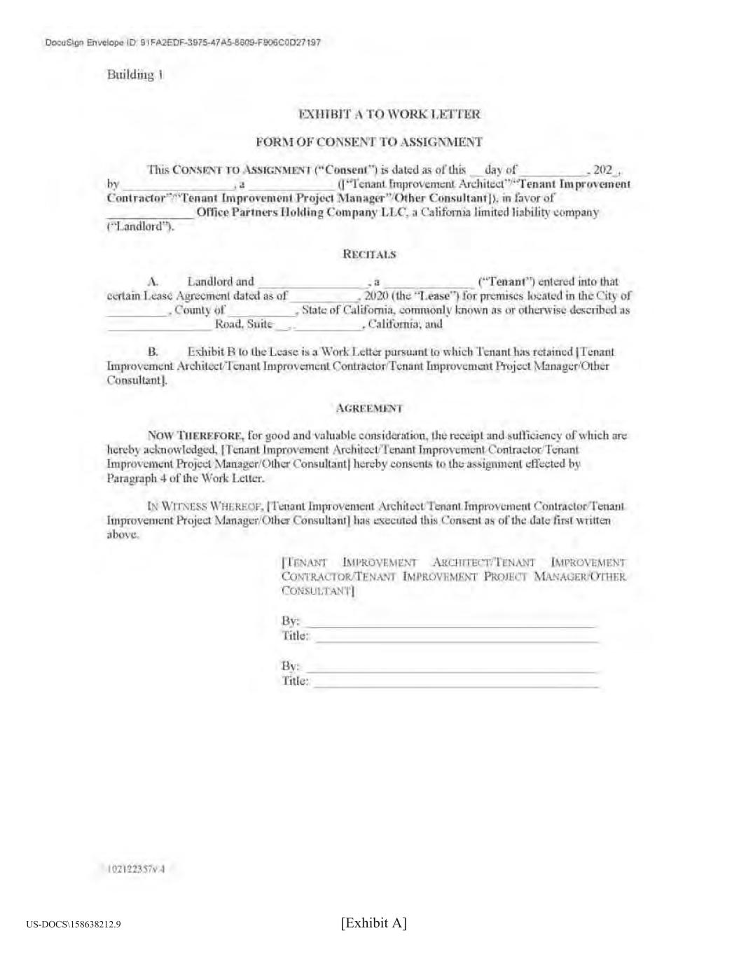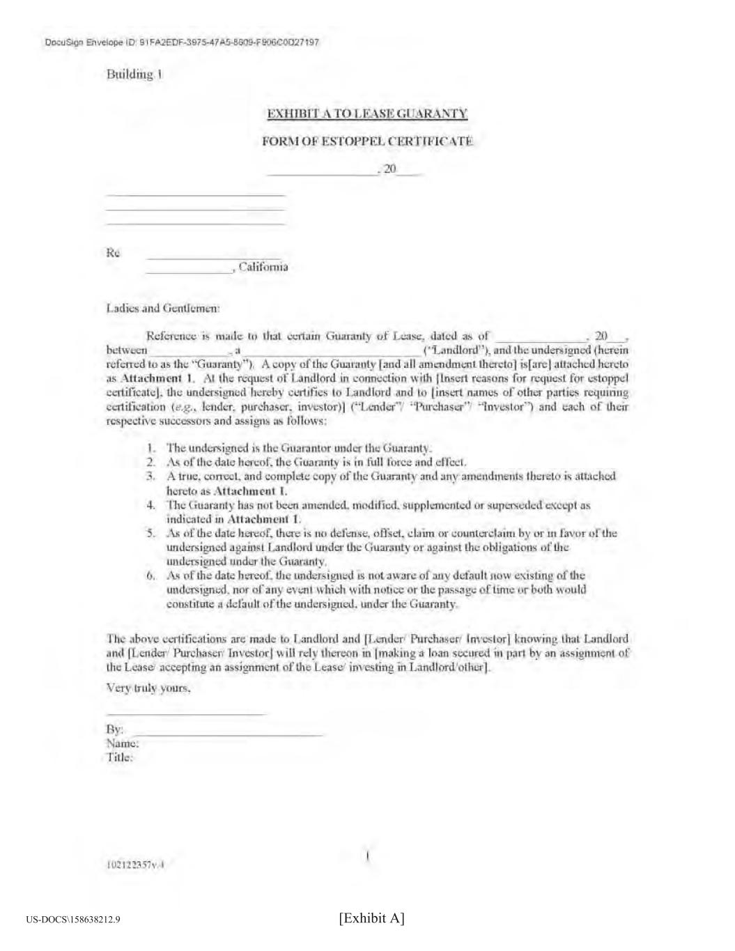 [Exhibit A] EXHIBIT A SUBLEASE [To Be Attached]