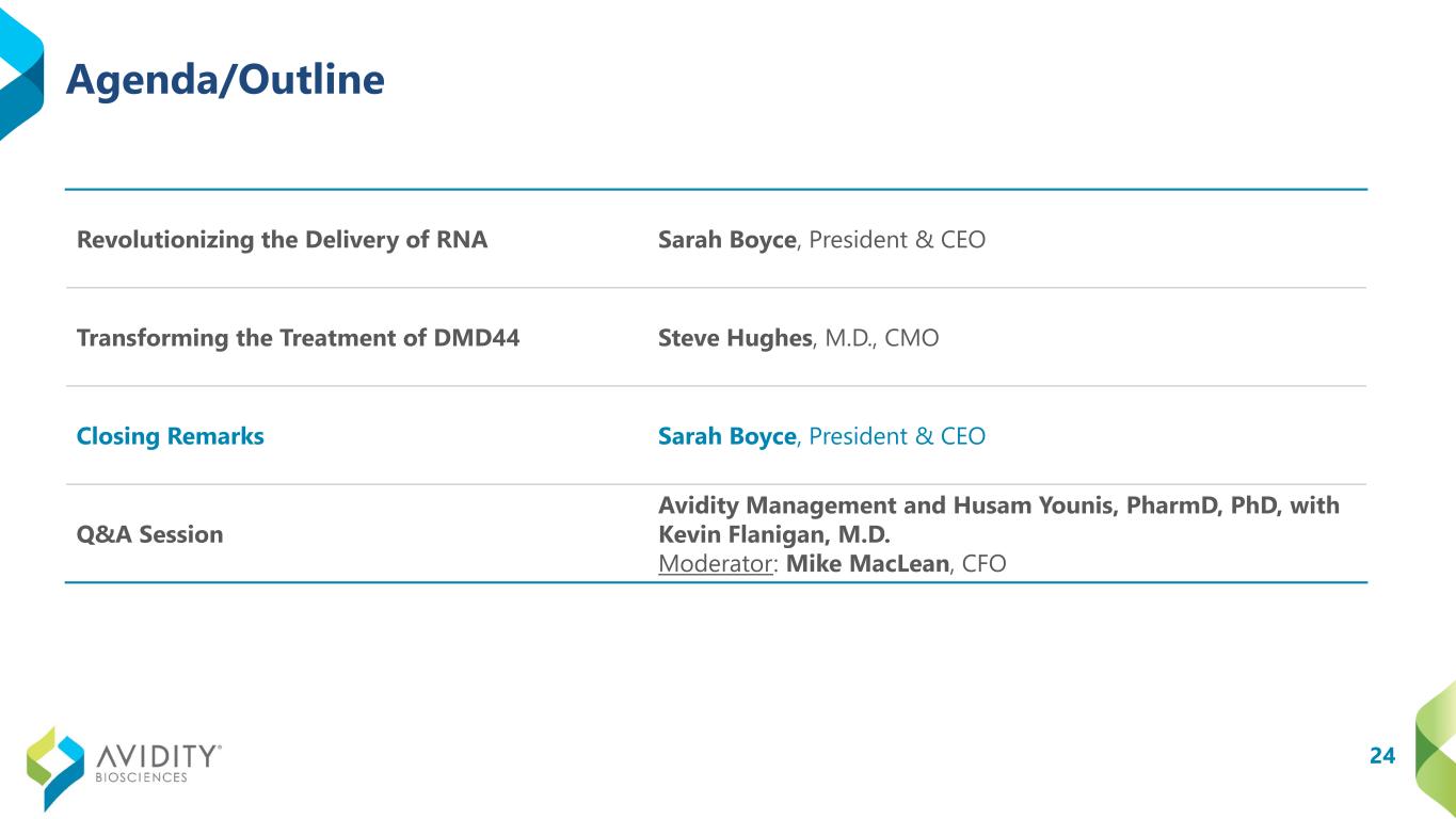 24 Agenda/Outline Revolutionizing the Delivery of RNA Sarah Boyce, President & CEO Transforming the Treatment of DMD44 Steve Hughes, M.D., CMO Closing Remarks Sarah Boyce, President & CEO Q&A Session Avidity Management and Husam Younis, PharmD, PhD, with Kevin Flanigan, M.D. Moderator: Mike MacLean, CFO