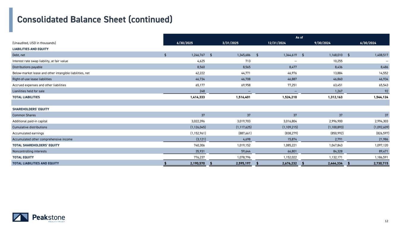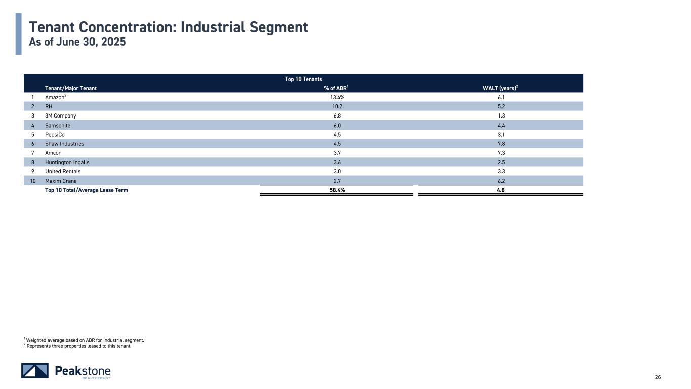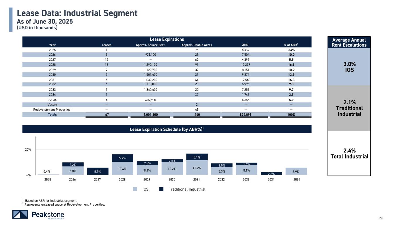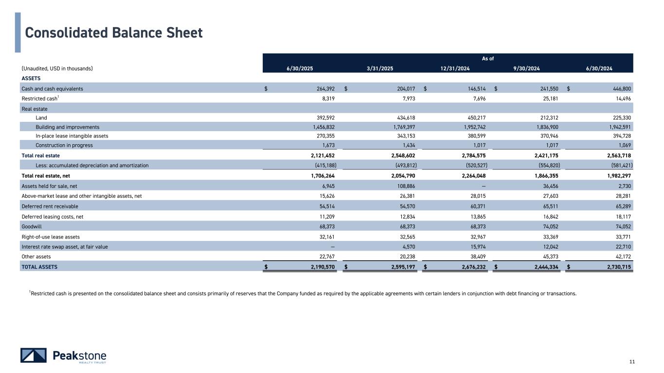カリフォルニア州エルセグンド発 (2025年8月7日) - Peakstone Realty Trust (以下「当社」) (NYSE: PKST) は本日、産業用屋外倉庫に戦略的重点を置き、産業用資産の所有・運営に注力する不動産投資信託として、2025年6月30日に終了した四半期決算を発表しました。