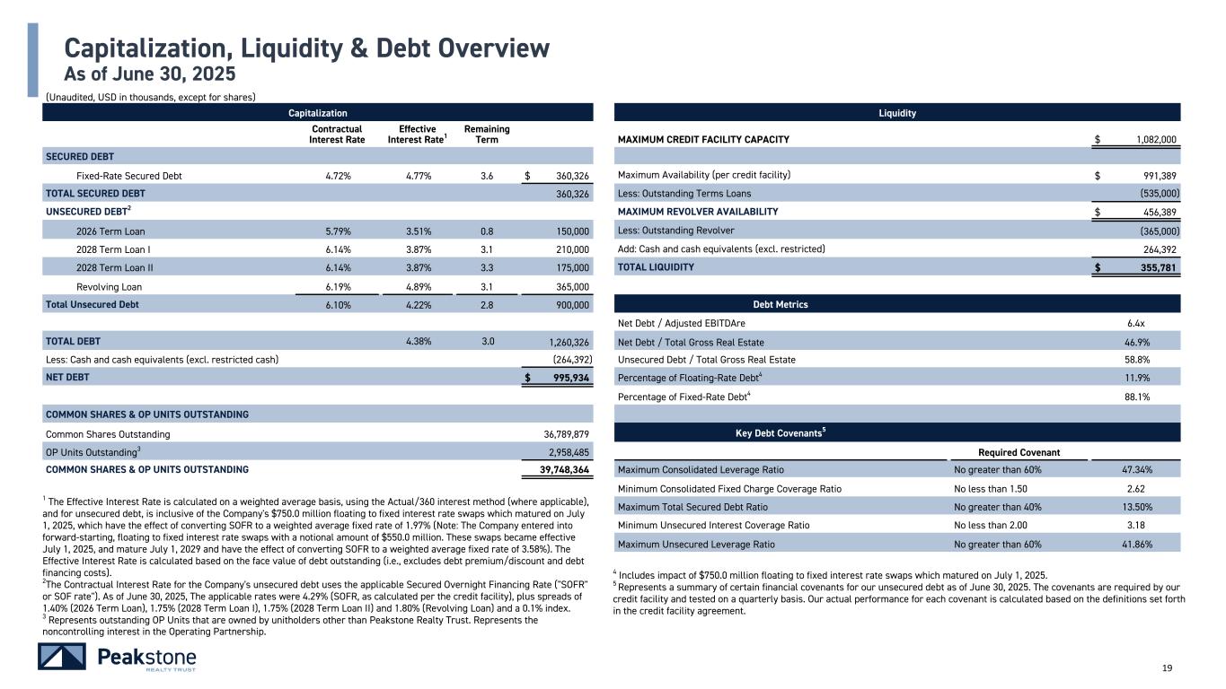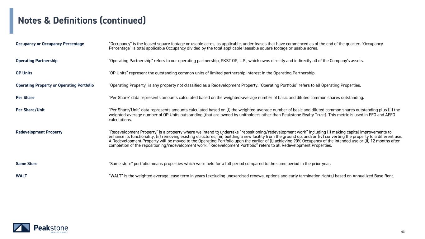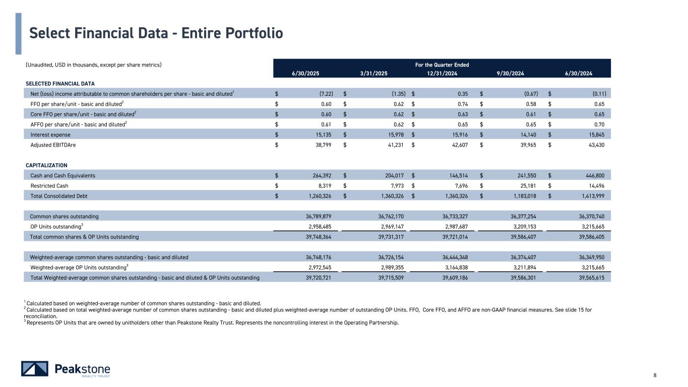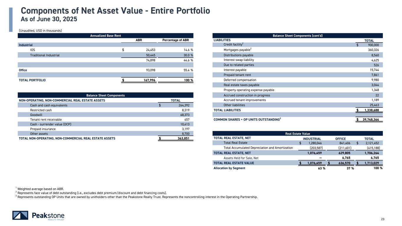 カリフォルニア州エルセグンド発 (2025年8月7日) - Peakstone Realty Trust (以下「当社」) (NYSE: PKST) は本日、産業用屋外倉庫に戦略的重点を置き、産業用資産の所有・運営に注力する不動産投資信託として、2025年6月30日に終了した四半期決算を発表しました。