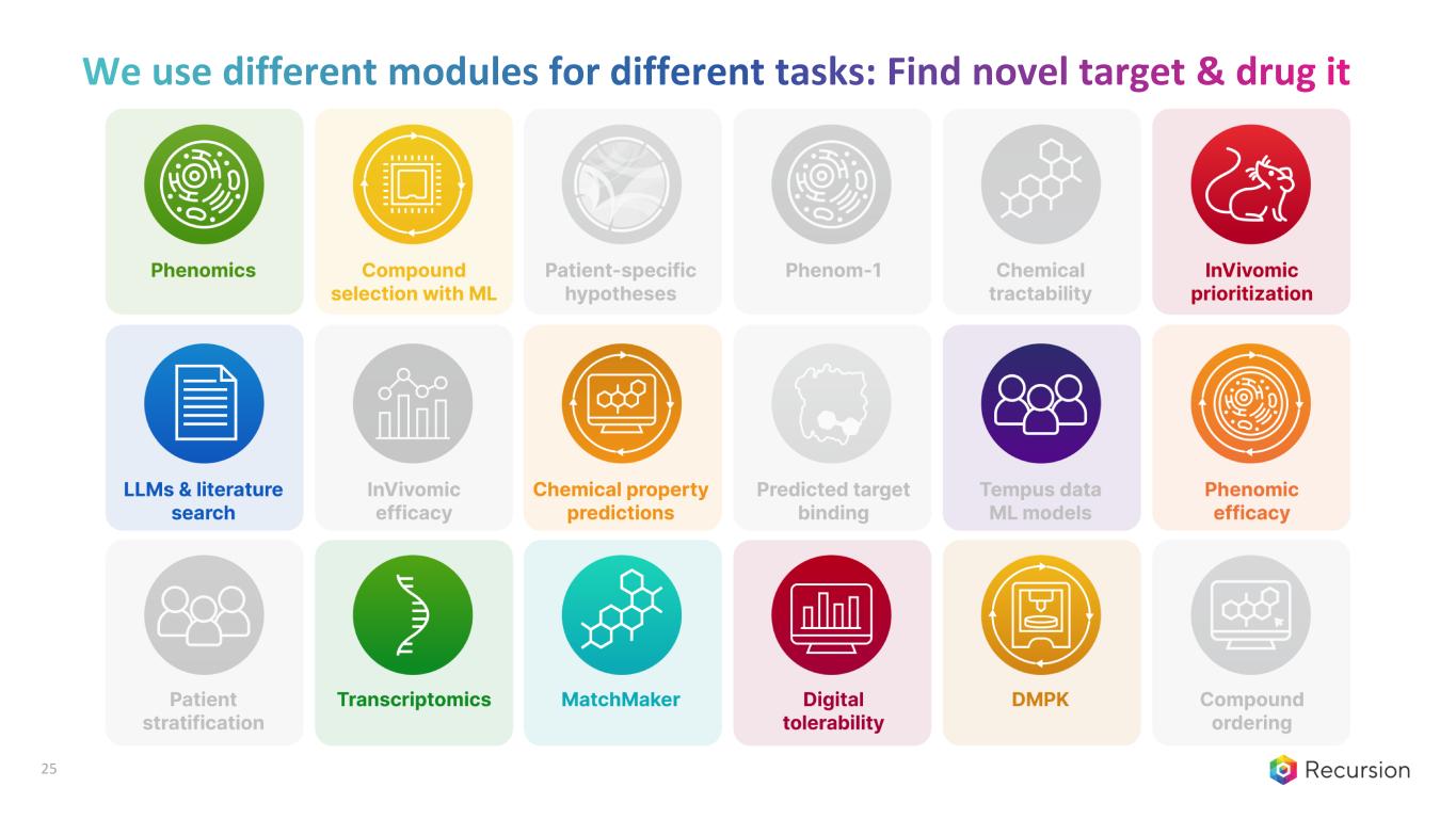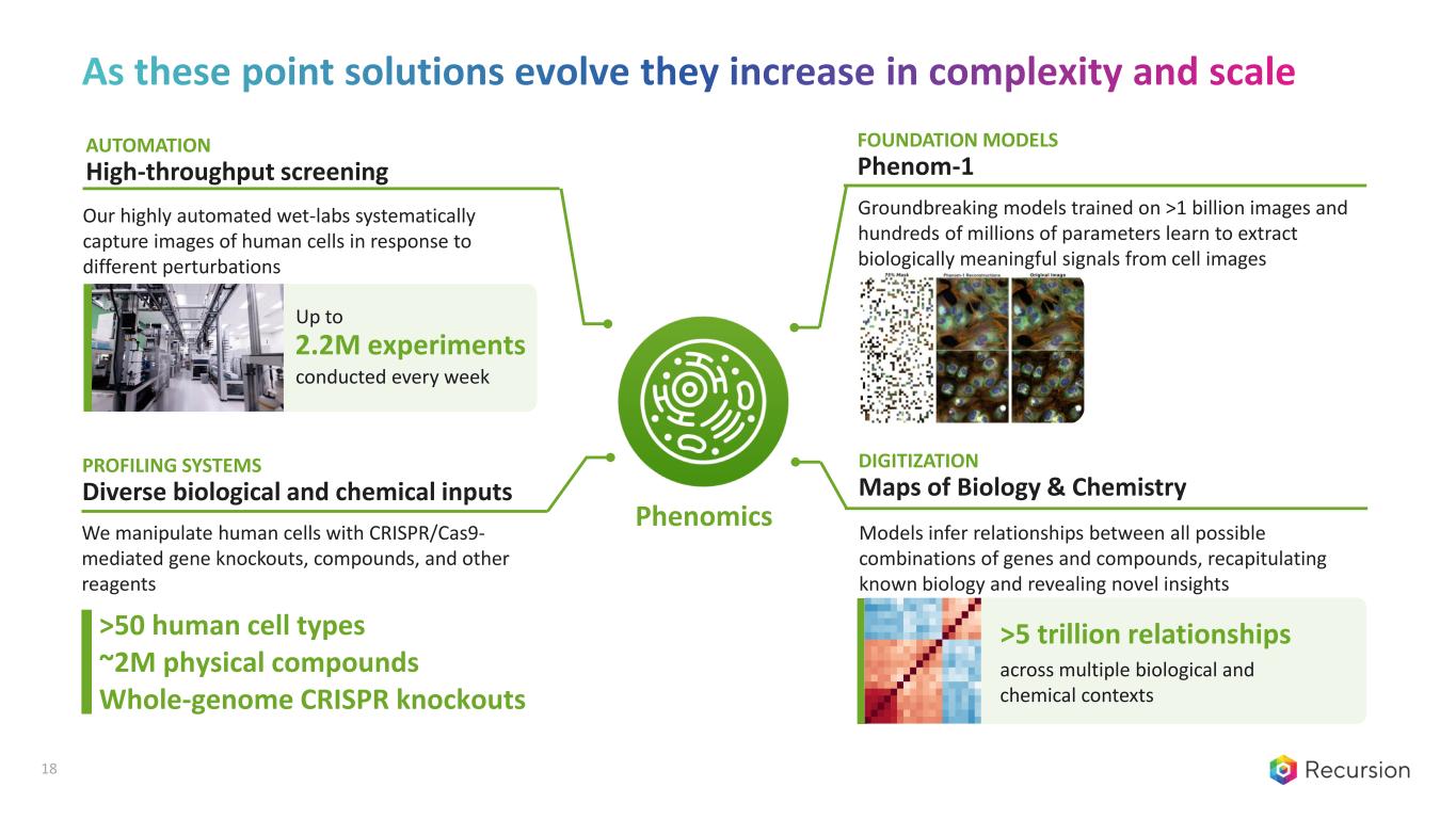 毎週数百万件のウェットラボ実験という大規模な実験規模と、世界で最も強力なスーパーコンピューターの1つを所有・運用するという大規模な計算規模を持つリカーシオンは、テクノロジー、生物学、化学、患者中心のデータを統合し、医療の未来を前進させている。