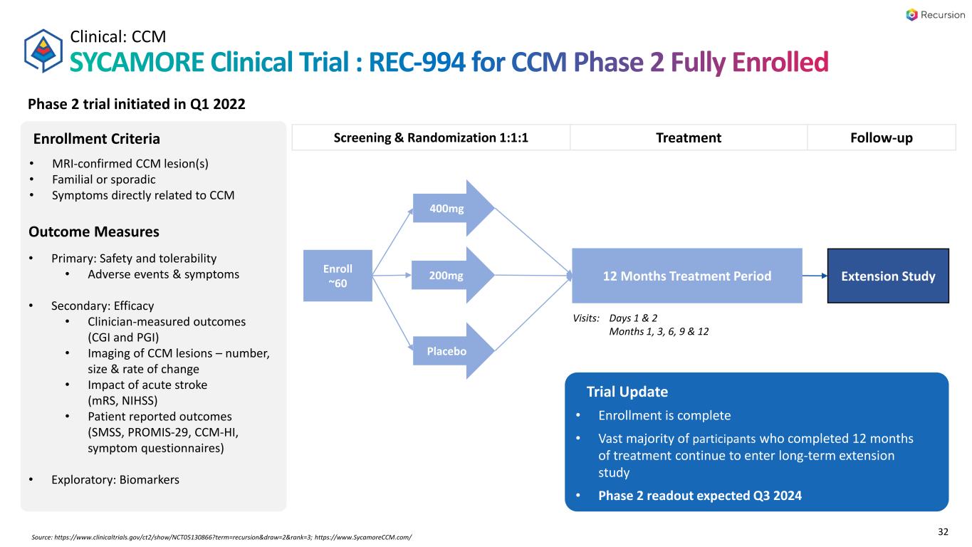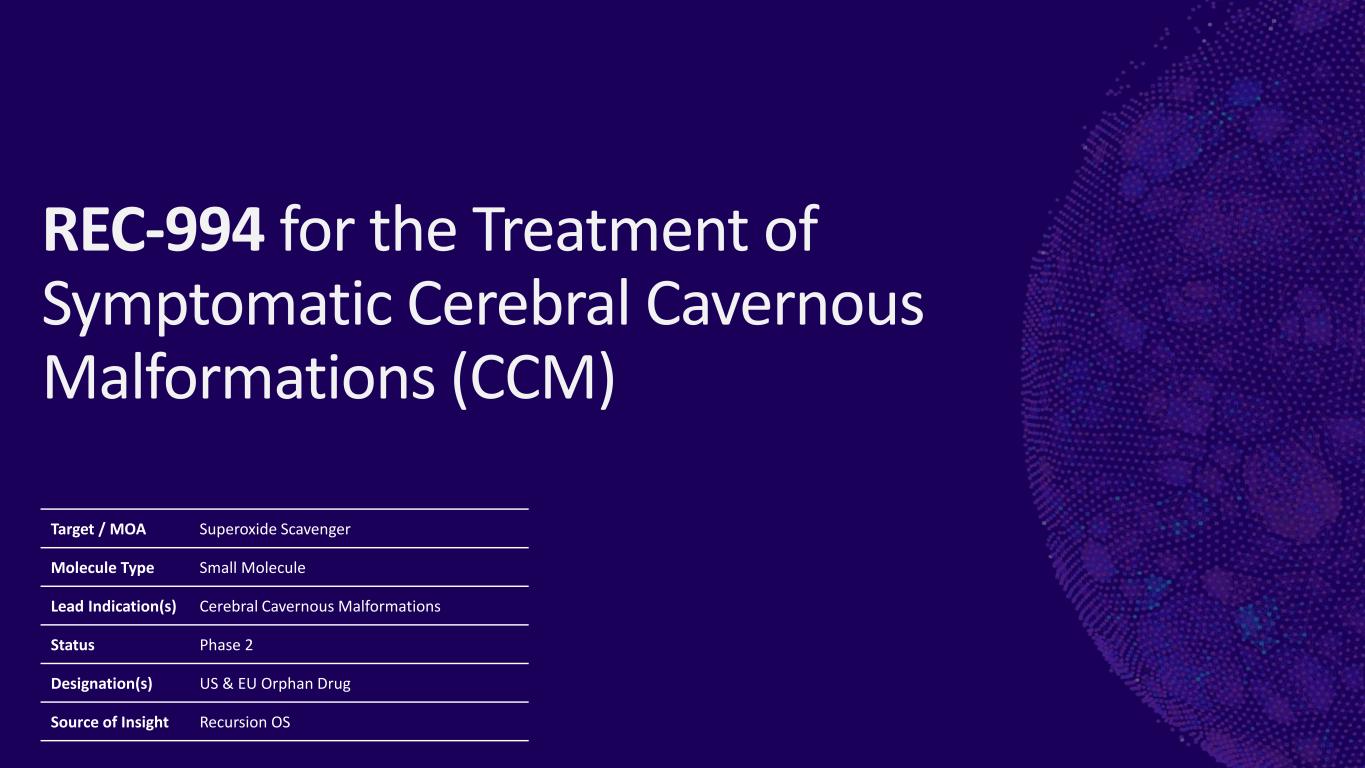 脳空洞奇形(CCM)(REC-994):当社の第2相SYCAMORE臨床試験は、CCM患者を対象としたREC-994の無作為化二重盲検プラセボ対照安全性・忍容性・探索的有効性試験である。この試験は、2023年6月に62名の参加者が登録され、12ヶ月間の治療を完了した参加者の大多数は、引き続き長期延長試験への参加を選択しています。第2相試験のデータは2024年第3四半期に発表される予定である。