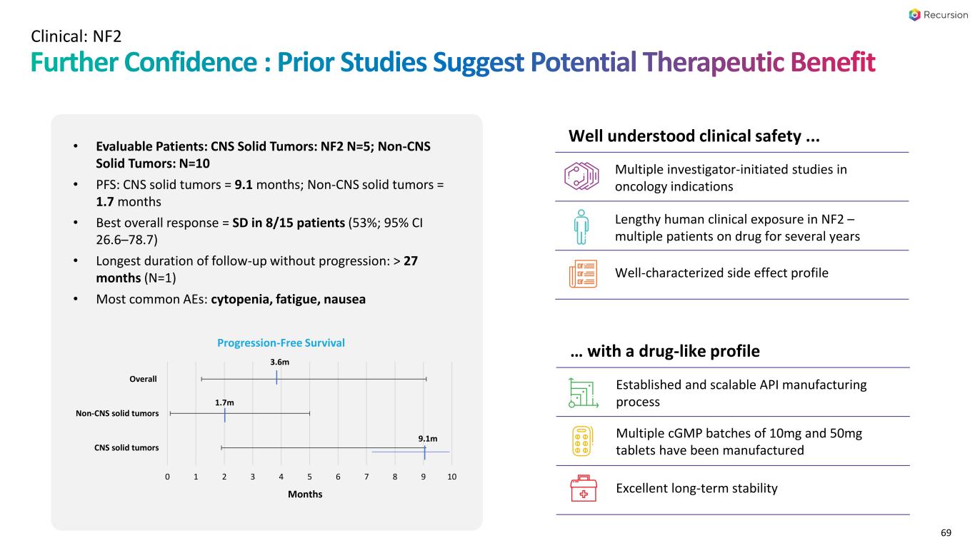 この研究はすでに、大規模な腫瘍学的適応症における新規の遺伝子/疾患関係に対する指向性腫瘍学プログラムに結実している。Recursionは、データジェネレーターとしても、マルチモーダルデータアグリゲーターとしても機能する予定である。将来的には、生殖細胞系列の遺伝子データ、オルガノイド技術、自動ナノ合成技術によってデータセットを増強し、Recursion OSに磨きをかけるつもりである。