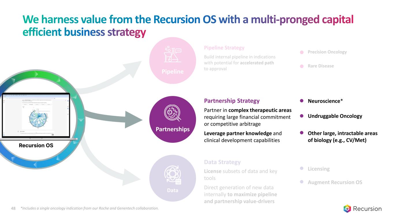 グーグル・クラウドとの提携:Google Cloudのテクノロジーを活用し、当社の創薬プラットフォームをサポートするため、Google Cloudとの協力関係を拡大しました。この戦略的パートナーシップには、RecursionOSのサポート、BigQueryによる検索とアクセスの改善、コンピューティングリソースの拡張を支援するGeminiモデルを含むジェネレーティブAI機能の探求が含まれます。さらに、当社のAIモデルの一部をGoogle Cloudで利用できるようにすることも検討します。