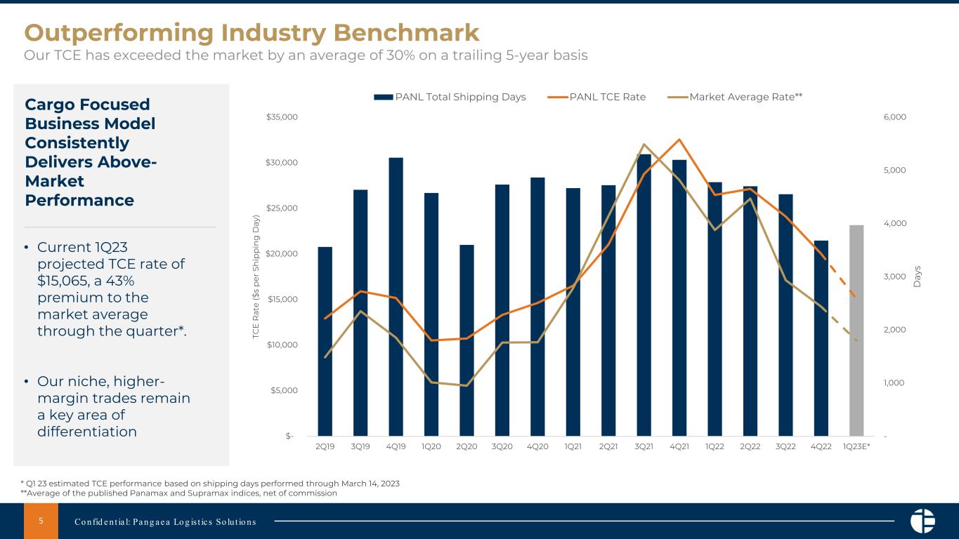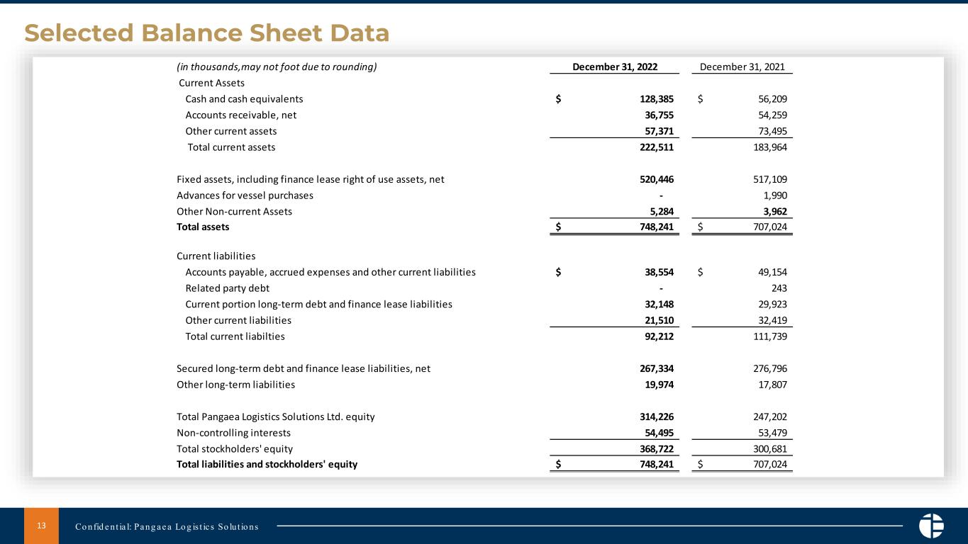 RI 州ニューポート - 2023 年 3 月 15 日 - パンゲア・ロジスティクス・ソリューションズ社(Pangaea Logistics Solutions Ltd.(以下、パンゲアまたは「当社」) (NASDAQ: PANL) は、包括的な海上物流ソリューションを提供するグローバル企業として、本日、2022年12月31日に終了した3ヶ月間および1年間の業績を発表しました。