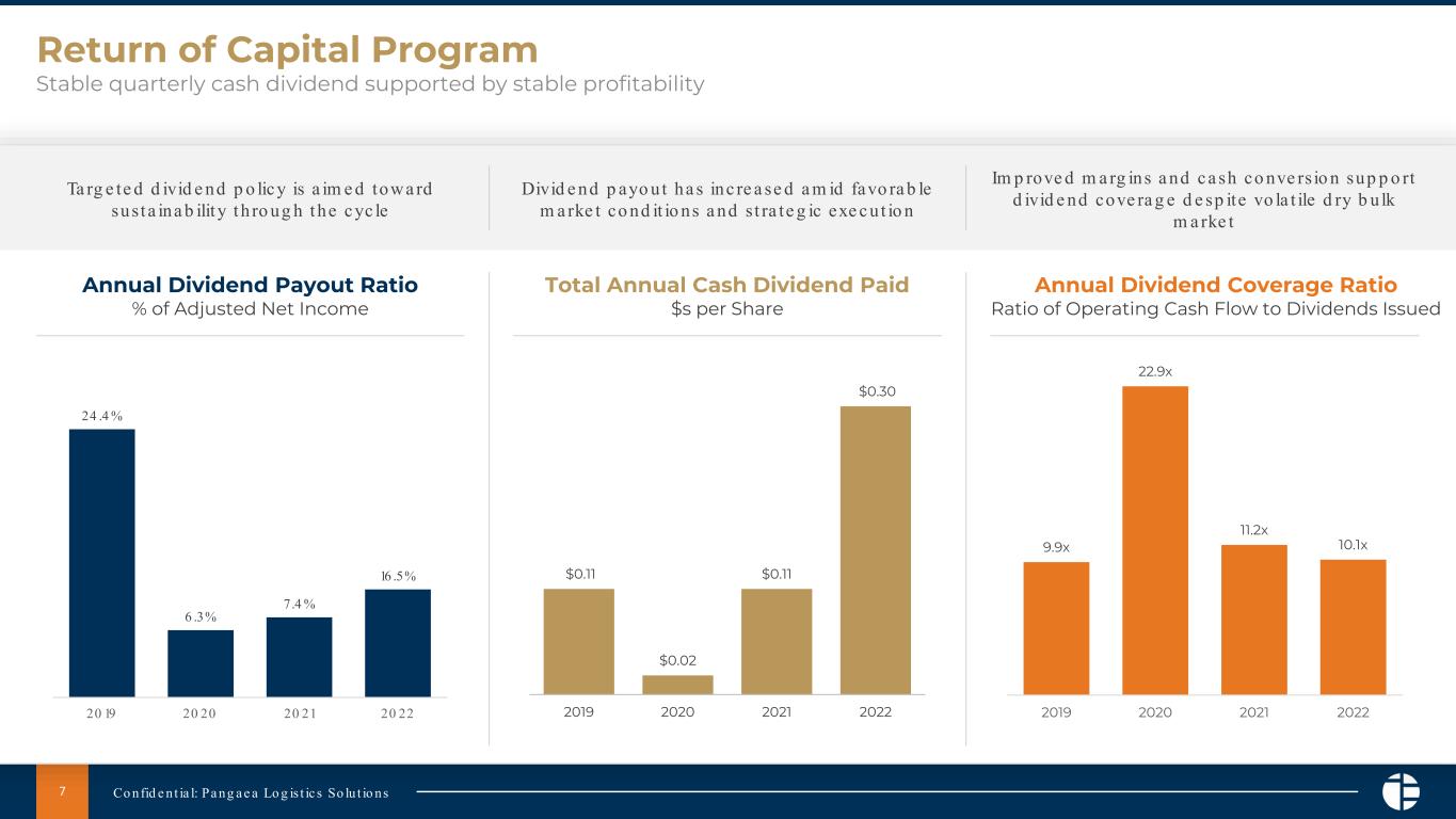「当社の貨物中心の事業計画は、2022年に株主の皆様に大きな価値創造をもたらしました。1億ドル近いフリーキャッシュフローを創出し、有機・無機成長投資に対するバランスのとれた自己資金アプローチと、強固で一貫した配当プログラムを追求することができました。今年は、船隊の更新と慎重な拡張、ロジスティクス・プラットフォームの拡大、特に補完的で即効性のある陸上事業への取り組み、さらなる債務の削減、そして年換算で1,800万ドル以上の株主への分配となる四半期現金配当の継続などを優先的に資本配分する予定です」。