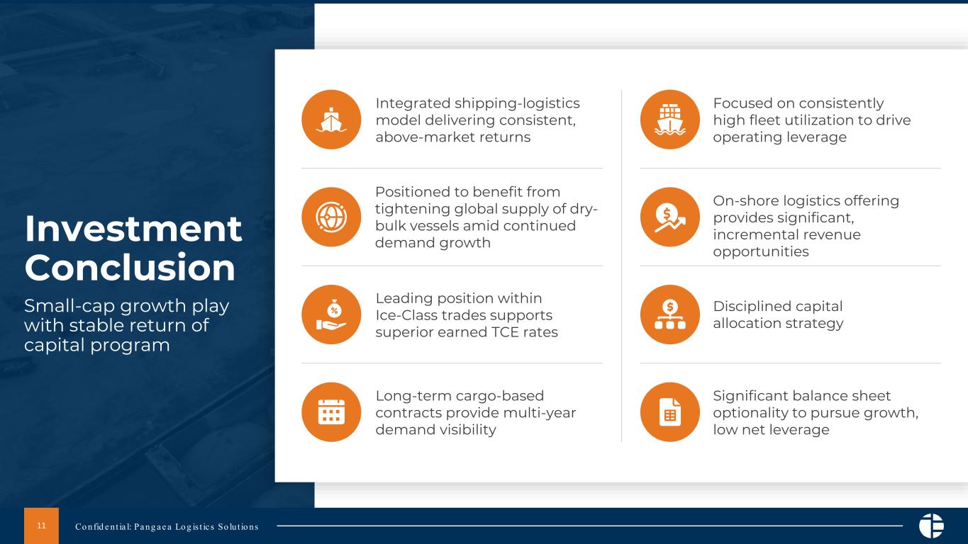 パンゲアは、コモディティ市場やニッチ市場において、海運、サプライチェーン、ロジスティクスに特化したサービスを提供し、1日あたりのタイムチャーター換算でプレミアムリターンを実現する、規模の大きなドライバルク物流・輸送サービスのリーディングカンパニーを目指し、引き続き努力していきます。