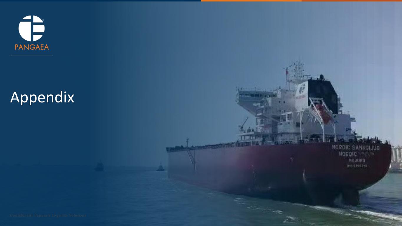 好調な船隊利用を継続する。第4四半期のパンゲアの自社船25隻はフルに活用され、平均15隻の傭船で貨物やCOAのコミットメントを補いました。軽快な船隊編成を活かし、傭船船の再配送を行い、平均傭船船隊数を第3四半期の26隻から第4四半期の15隻に減らすことで、市場へのエクスポージャーを減らしました。