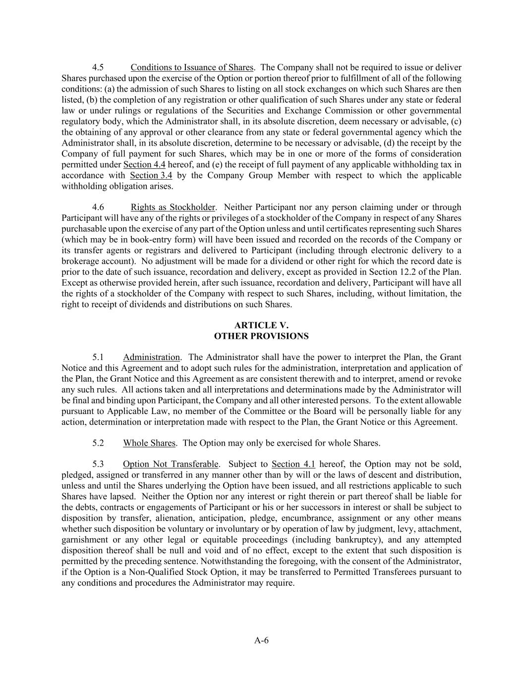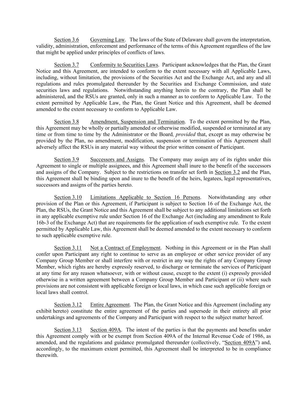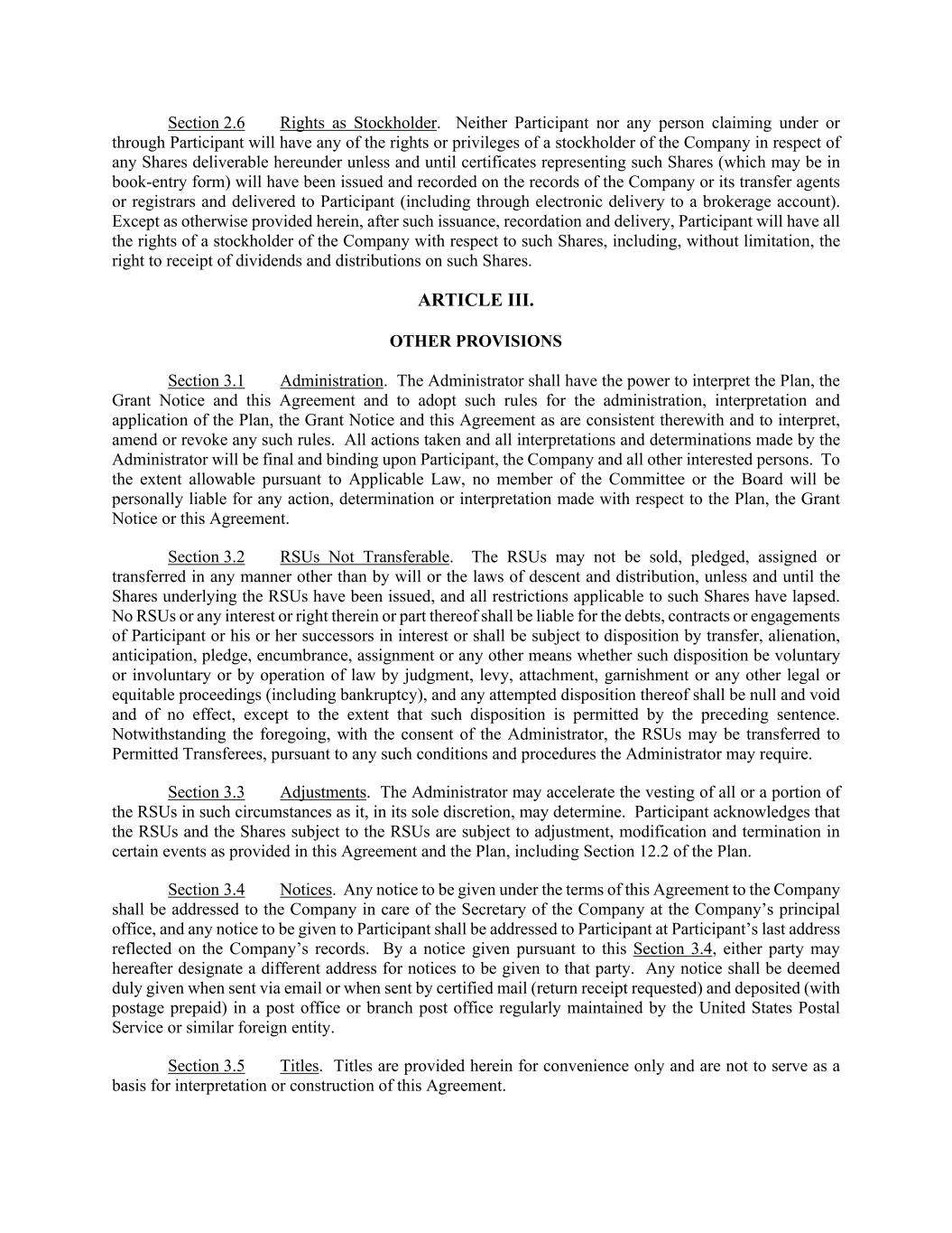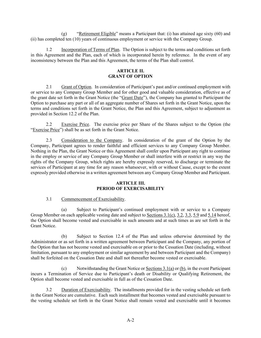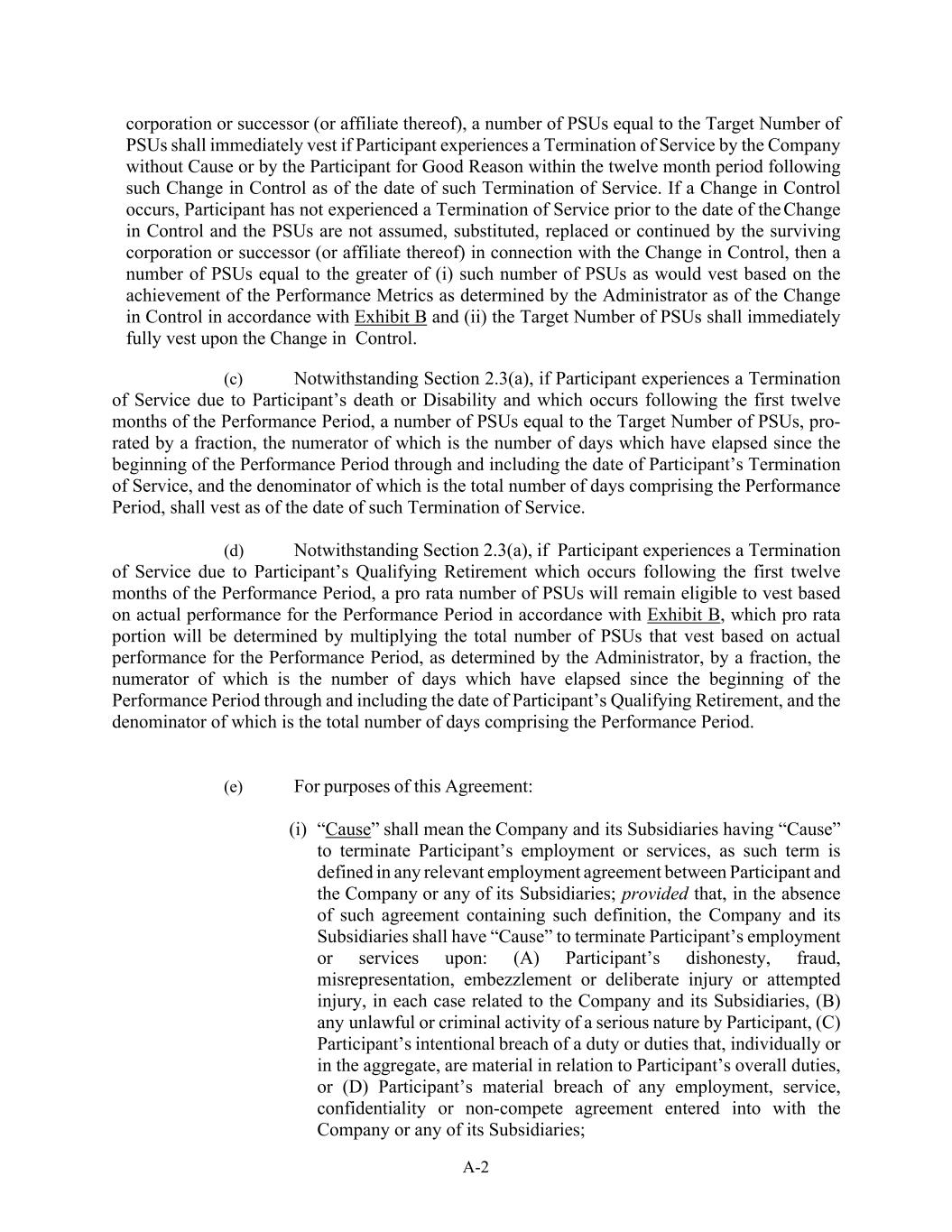 Non‐Employee Director Compensation Policy Inspire Medical Systems, Inc. (a) Annual Awards. Each Non‐Employee Director who (i) serves on the Board as of the date of any annual meeting of the Company’s stockholders (an “Annual Meeting”) after the Effective Time and (ii) will continue to serve as a Non‐Employee Director immediately following such Annual Meeting shall be automatically granted, on the date of such Annual Meeting, an award of restricted stock units (“RSUs”) having an aggregate fair value on the date of grant of $200,000 (as determined in accordance with FASB Accounting Codification Topic 718 (“ASC 718”) and subject to adjustment as provided in the Equity Plan). If the number of shares of Common Stock subject to an RSU award granted under this Section 2(a) would include a fractional share of Common Stock, the value of that fractional share shall instead be paid in cash at the date of grant. The awards described in this Section 2(a) shall be referred to as the “Annual Awards.” For the avoidance of doubt, a Non‐Employee Director elected for the first time to the Board at an Annual Meeting shall receive only an Annual Award in connection with such election, and shall not receive any Initial Award on the date of such Annual Meeting as well. (b) Initial Awards. Each Non‐Employee Director who is initially elected or appointed to the Board after the date the IPO price of the shares of Common Stock is established in connection with the IPO, on any date other than the date of an Annual Meeting, shall be automatically granted, on the date of such Non‐Employee Director’s initial election or appointment (such Non‐Employee Director’s “Start Date”), an award of RSUs having an aggregate fair value on such Non‐Employee Director’s Start Date equal to $300,000 (as determined in accordance with ASC 718 and subject to adjustment as provided in the Equity Plan). If the number of shares of Common Stock subject to an RSU award granted under this Section 2(b) would include a fractional share of Common Stock, the value of that fractional share shall instead be paid in cash at the date of grant. The awards described in this Section 2(b) shall be referred to as “Initial Awards.” For the avoidance of doubt, no Non‐Employee Director shall be granted more than one Initial Award. (c) Termination of Employment of Employee Directors. Members of the Board who are employees of the Company or any parent or subsidiary of the Company who subsequently terminate their employment with the Company and any parent or subsidiary of the Company and remain on the Board will not receive an Initial Award pursuant to Section 2(b) above, but to the extent that they are otherwise eligible, will be eligible to receive, after termination from service with the Company and any parent or subsidiary of the Company, Annual Awards as described in Section 2(a) above. (d) Vesting of Awards Granted to Non‐Employee Directors. Each Annual Award shall vest and become exercisable on the first anniversary of the date of grant and each Initial Award shall vest and become exercisable in three equal annual installments following the date of grant (such that the Initial Award shall vest and become exercisable in full on the third anniversary of the date of grant), in each case subject to the Non‐Employee Director continuing in service through the applicable vesting dates. No portion of an Annual Award or Initial Award that is unvested or unexercisable at the time of a Non‐Employee Director’s termination of service on the Board shall become vested and exercisable thereafter. All of a Non‐ Employee Director’s Annual Awards and Initial Awards shall vest in full immediately prior to the occurrence of a Change in Control (as defined in the Equity Plan), to the extent outstanding at such time.