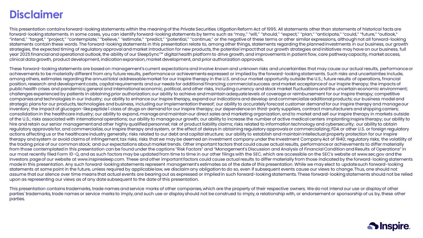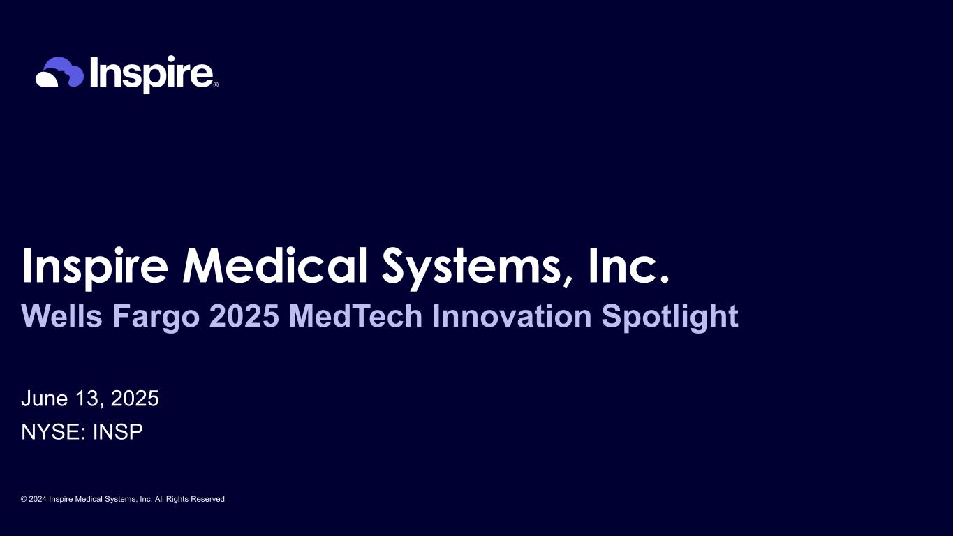 © 2024 Inspire Medical Systems, Inc. All Rights Reserved Inspire Medical Systems, Inc. Wells Fargo 2025 MedTech Innovation Spotlight June 13, 2025 NYSE: INSP