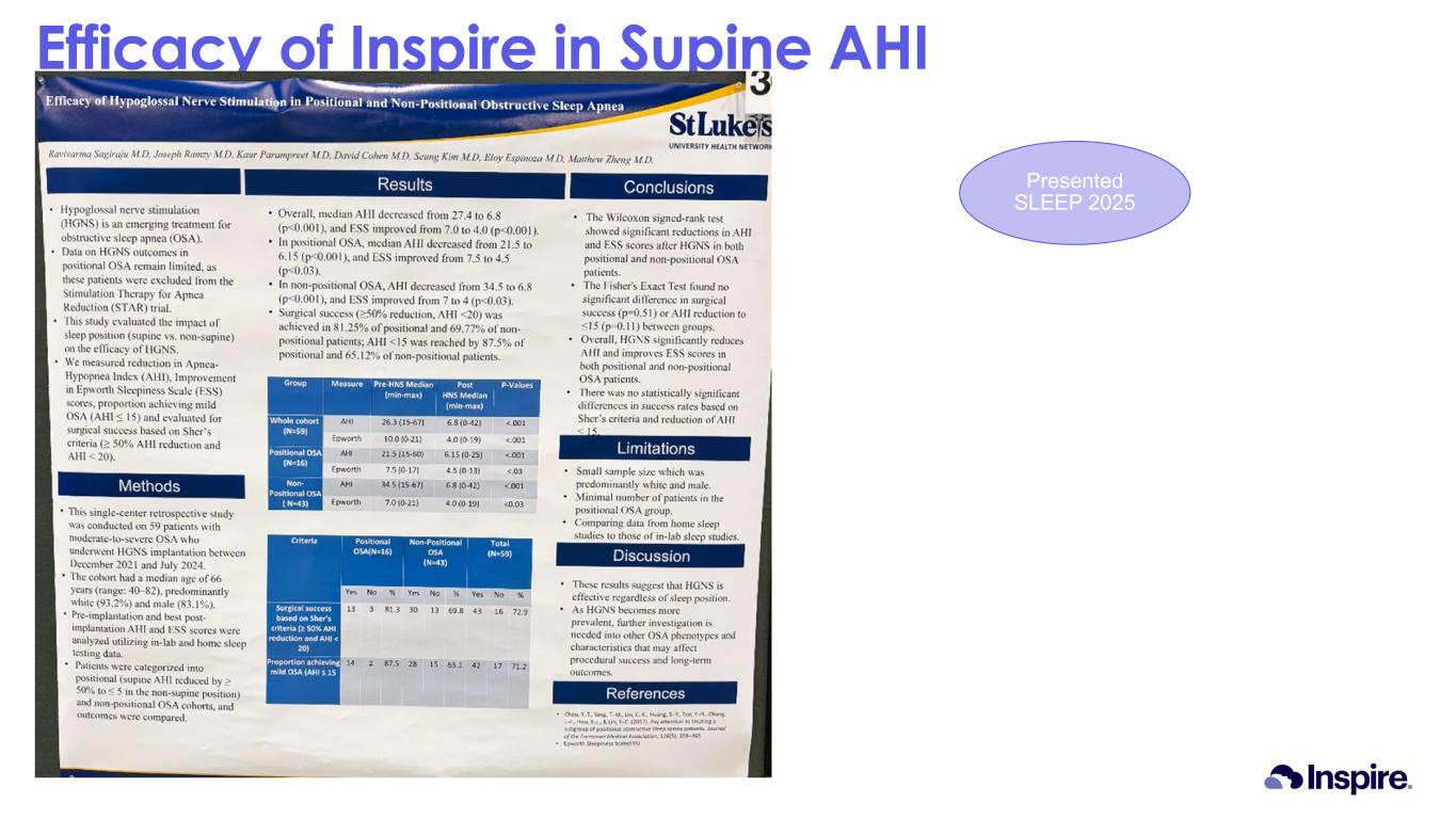 Efficacy of Inspire in Supine AHI Presented SLEEP 2025