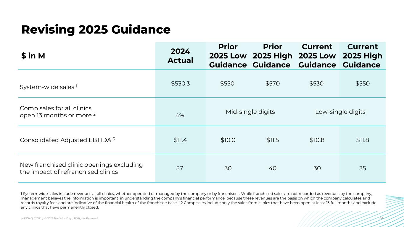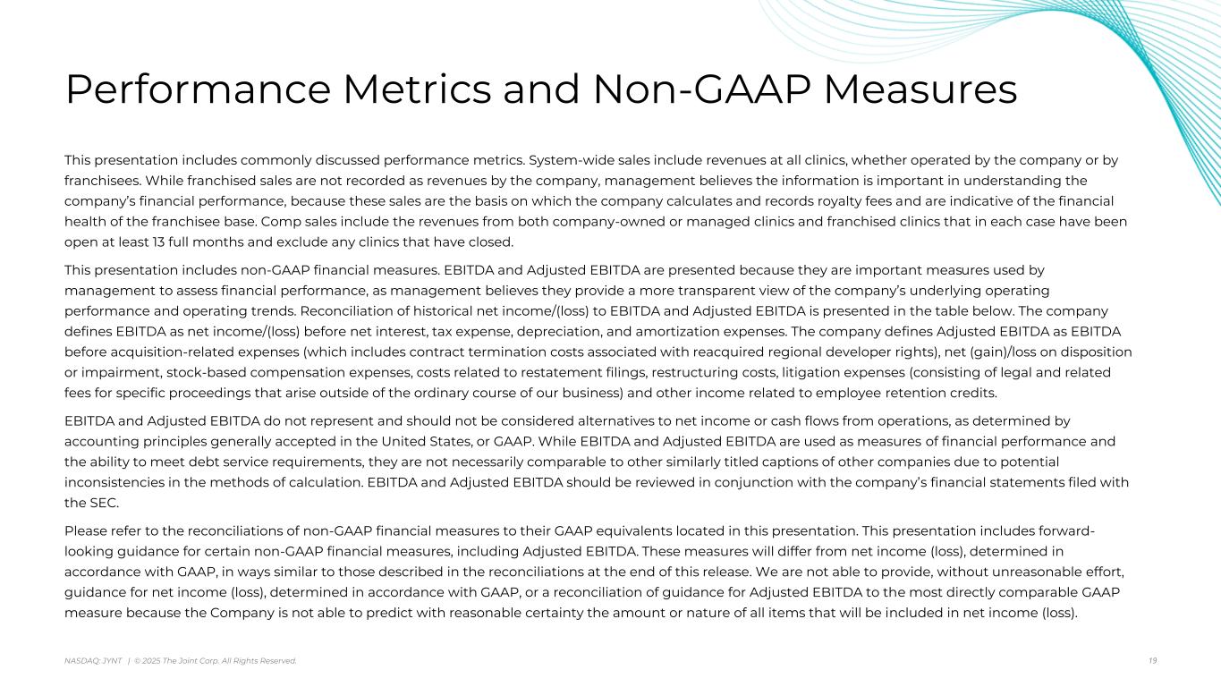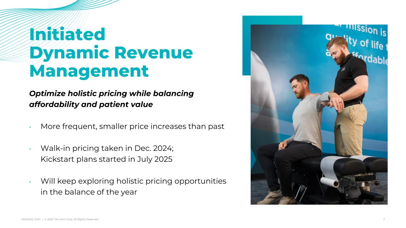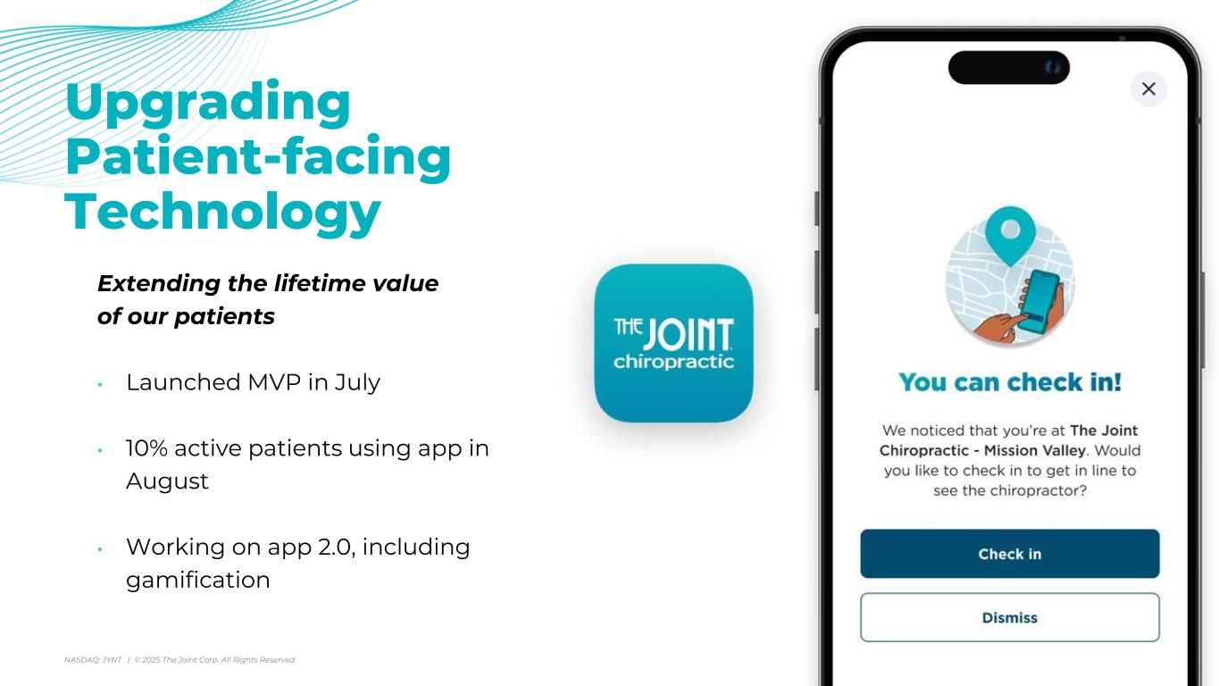 アリゾナ州スコッツデール、2025年8月7日 - カイロプラクティック・クリニックの全国的なオペレーター、マネージャー、フランチャイザーであるジョイント・コーポレーション(NASDAQ:JYNT)は、2025年6月30日に終了した四半期の営業ハイライトと限定的な財務情報を掲載しました。以下の数字は、特に断りのない限り、継続事業を表しています。