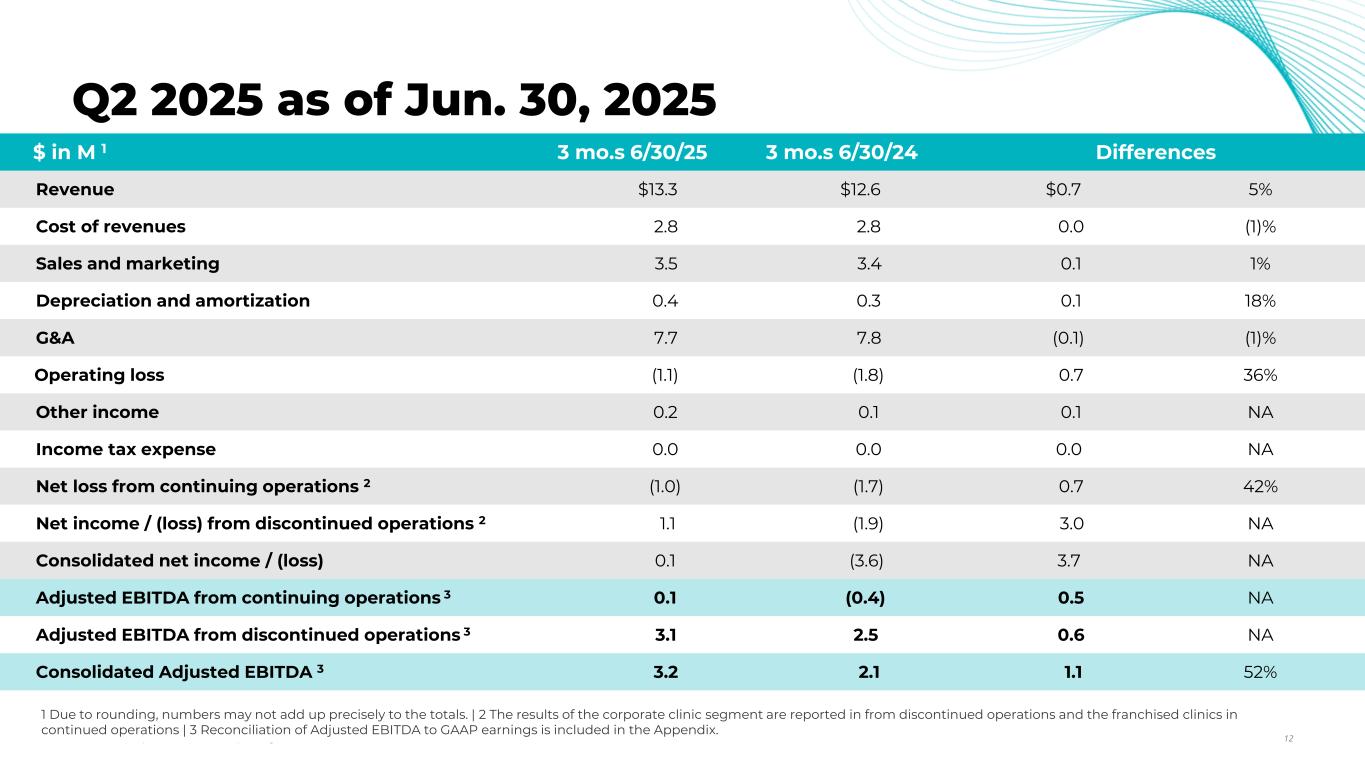 2025年7月30日に発表したとおり、当社は、非継続事業に含まれる売却目的で保有する診療所について計上した現金支出を伴わない減損に関連して経営陣が認識した重要な誤りにより、2024年12月31日に終了した事業年度の年次報告書Form 10-Kおよび2025年3月31日に終了した四半期の四半期報告書Form 10-Qに含まれる、過去に発行した財務諸表を修正再表示する予定です。具体的には、売却目的で保有する資産の当初の評価方法が一般に公正妥当と認められた会計原則に合致していないと判断し、当社の財務諸表を正確に表示するために調整を行いました。損益計算書の観点からは、この調整により2024年度の当期純損失が減少し、2025年度第1四半期の当期純利益が増加しました。これらの調整は、2024年度および2025年度第1四半期の調整後EBITDAには影響を与えないと予想されます。貸借対照表への影響は、売却目的保有資産の帳簿価額の増加である。過去の財務諸表を変更する必要があるため、本出願日現在、2025年6月30日および2024年6月30日に終了する3ヶ月間の損益計算書および調整後EBITDA、ならびに2025年6月30日現在の使途不指定の現金および現金残高を含む限定的な財務諸表を提供しています。