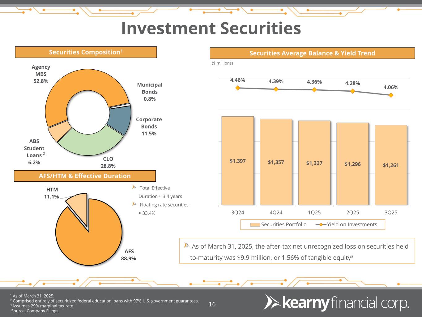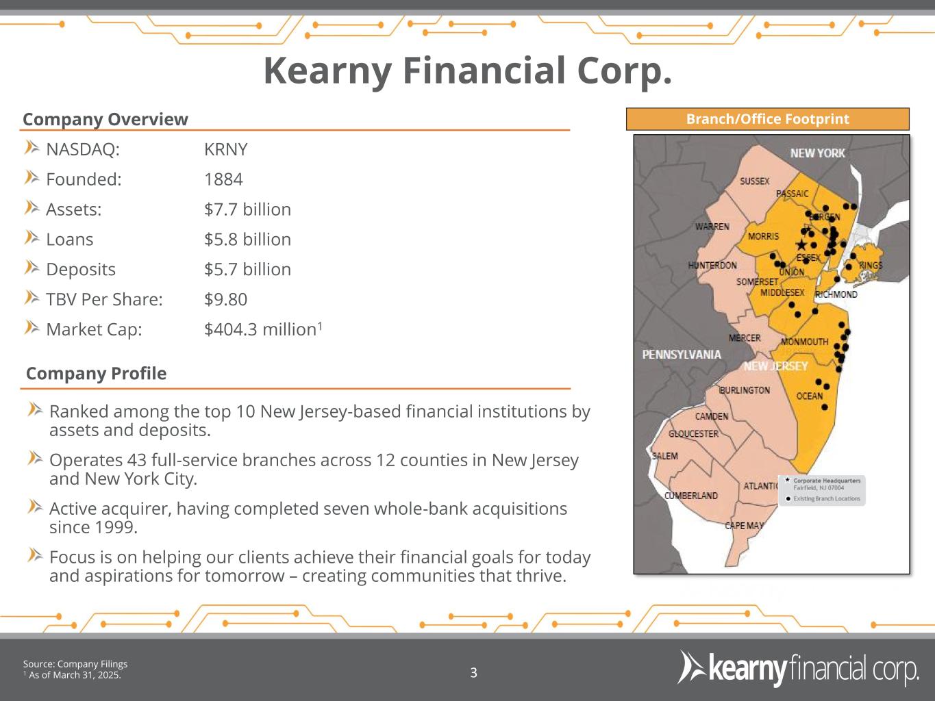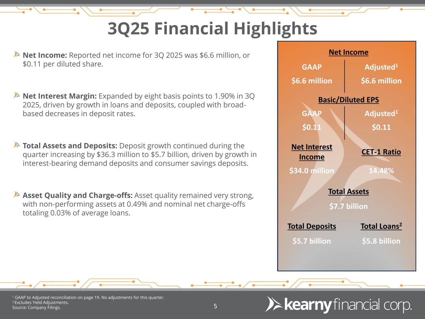 本リリースは、カーニー・ファイナンシャル・コーポレーションの 2025 年第 3 四半期投資家向けプレゼンテー ションと併せてお読みください。プレゼンテーションのコピーは、当社ウェブサイトのページ下部にある投資家向けリレーションズ のリンク(www.kearnybank.com)および証券取引委員会のウェブサイト(www.sec.gov)に掲載されているフォーム 8-K による最新報告書を通じて入手できます。