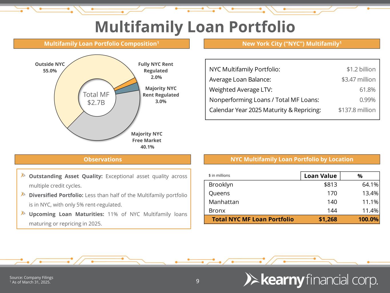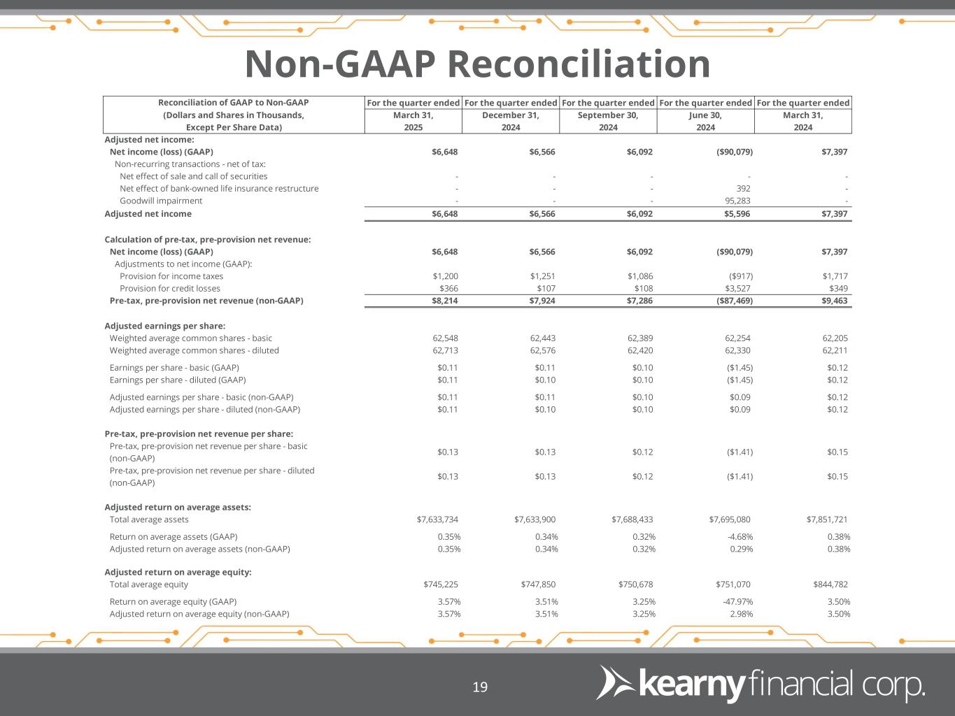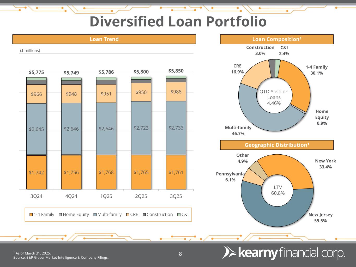 本リリースは、カーニー・ファイナンシャル・コーポレーションの 2025 年第 3 四半期投資家向けプレゼンテー ションと併せてお読みください。プレゼンテーションのコピーは、当社ウェブサイトのページ下部にある投資家向けリレーションズ のリンク(www.kearnybank.com)および証券取引委員会のウェブサイト(www.sec.gov)に掲載されているフォーム 8-K による最新報告書を通じて入手できます。