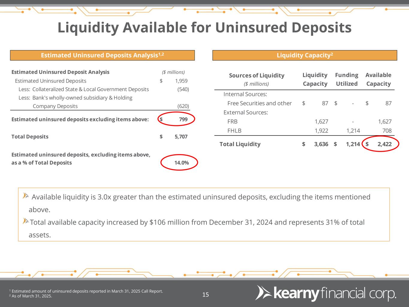 -2025年3月31日現在、当行は厚生労働省および連邦準備制度理事会(FRB)の割引窓口から24.2億ドルの担保付借入枠を維持しており、これは総資産の31.3%に相当する。