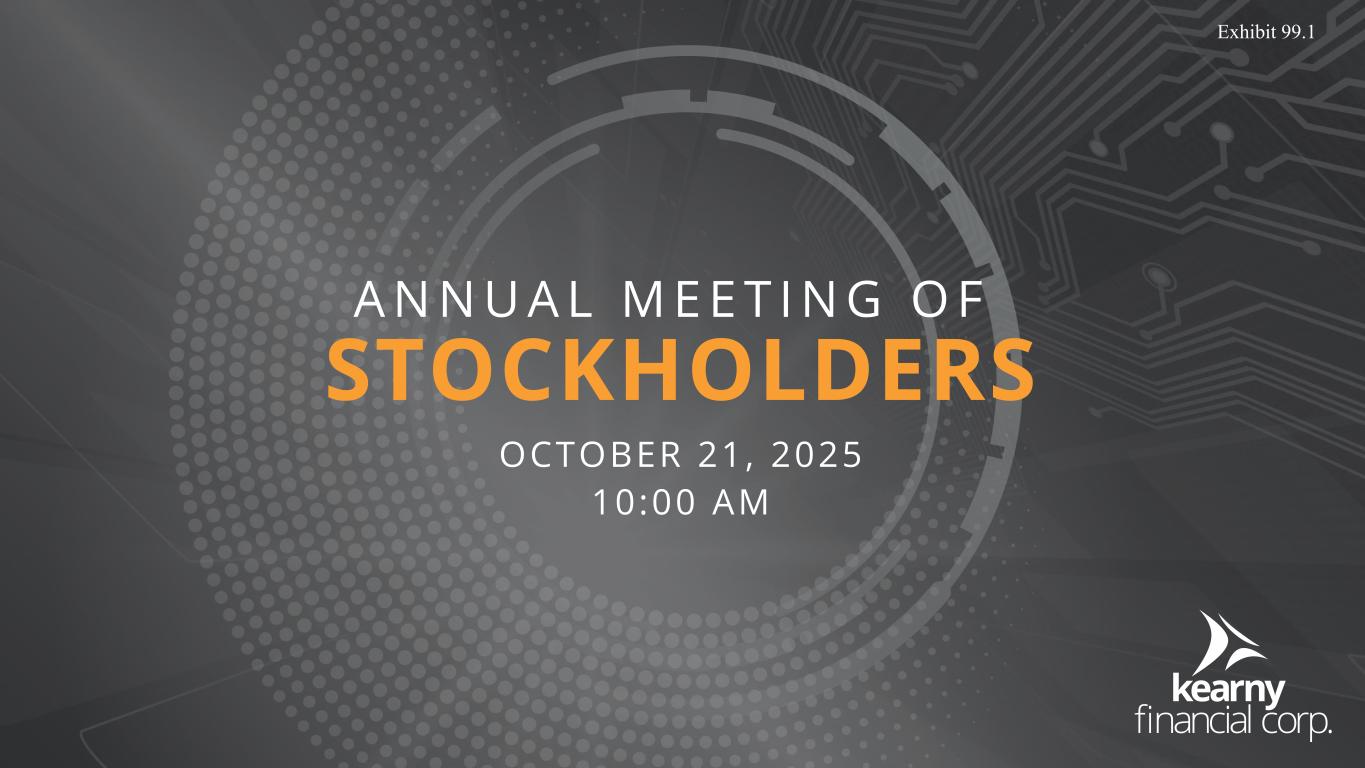 On October 21, 2025, Kearny Financial Corp. (the “Company”) will make an investor presentation at its fiscal 2025 Annual Meeting of Stockholders.