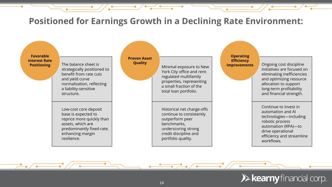 Fiscal Year 2026 Strategic Initiatives 13 Accelerate Organic Growth ▪ Deepen client relationships and wallet share through personalized cross-selling, targeted digital outreach, and refined segmentation. Optimize Loan Portfolio for Performance and Resilience ▪ Balance yield and resilience with disciplined lending strategies, supported by strong client relationships and aligned deposit activity. Strengthen Core Deposit Base ▪ Focus on building a stable, low-cost funding base to reduce reliance on higher-cost alternatives and reinforce financial strength. Enhance Operational Efficiency Through Technology ▪ Leverage automation and data-driven processes to streamline operations, improve client engagement, and drive cost effectiveness. Broaden Market Presence and Optimize Physical Footprint ▪ Expand into new and adjacent markets to diversify lending opportunities while optimizing branch network performance to boost community engagement and deposit growth.