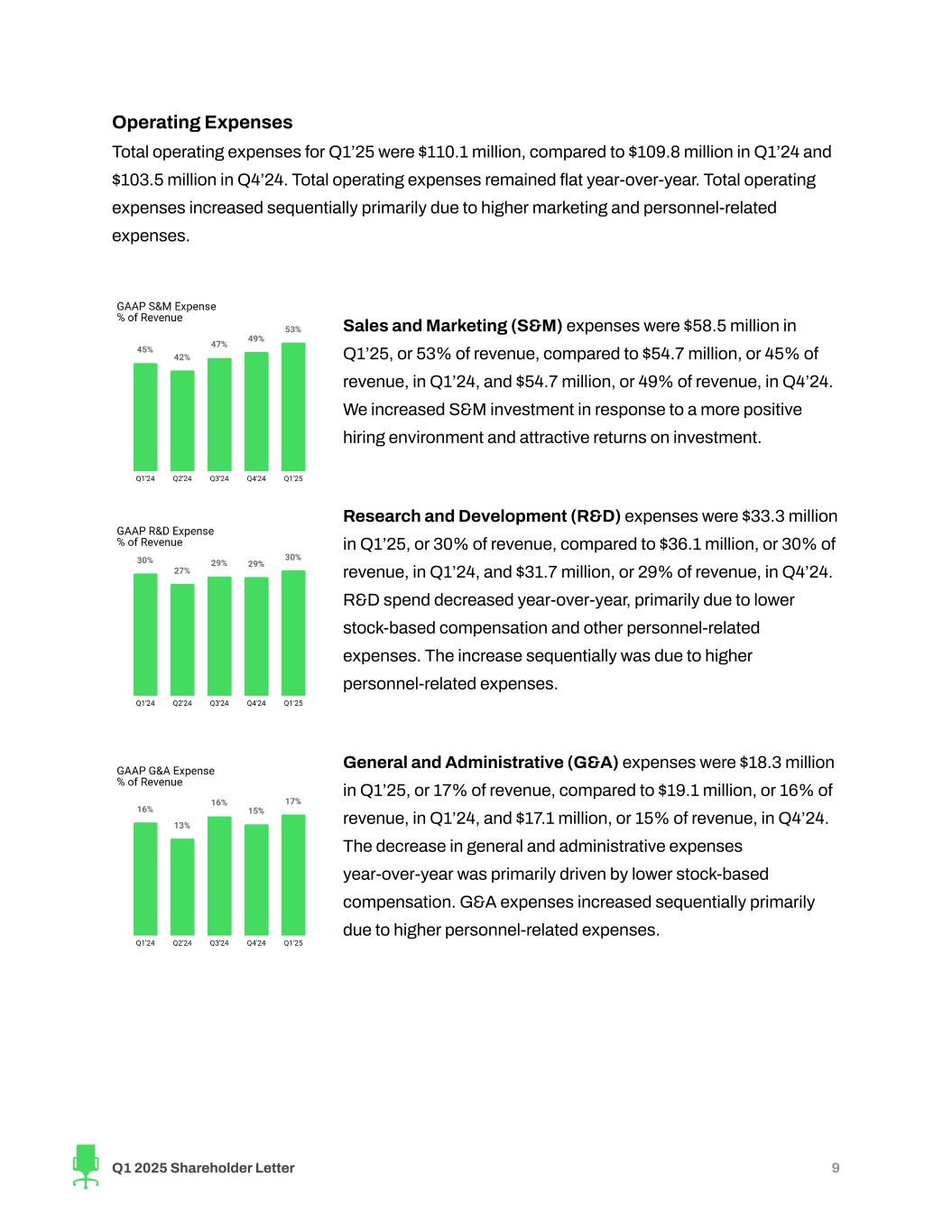 「第 1 四半期の売上高は 1 億 1,010 万ドルと、ガイダンスの中間値を上回ったが、前年同期比では 10%減、第 4 四半期比では 1%減となった。しかし、前四半期比の減収は、23年第1四半期が13%減、24年第1四半期が10%減であったのに対して、雇用主が年末年始の減速後に採用活動を再開するため、より典型的な季節的傾向を表している」とZipRecruiterのCEOであるIan Siegel氏は述べている。「我々は今年を慎重な楽観論でスタートした。しかし、目先の米国経済に不透明感が広がっていることを反映し、雇用主は『様子見』の姿勢をとっているようです。雇用者の採用が急激に後退することはまだありませんが、第2四半期に入っても採用活動の加速は見られません。マクロ経済環境に関わらず、ZipRecruiterは製品とテクノロジーイニシアティブに戦略的な投資を続けています。私たちの市場の両側の間でさらに大きなエンゲージメントを促進することは、人々を次の素晴らしい機会につなげるための鍵であり、私たちは、採用活動が回復したときに私たちは大きな成長の準備ができていると信じています。"