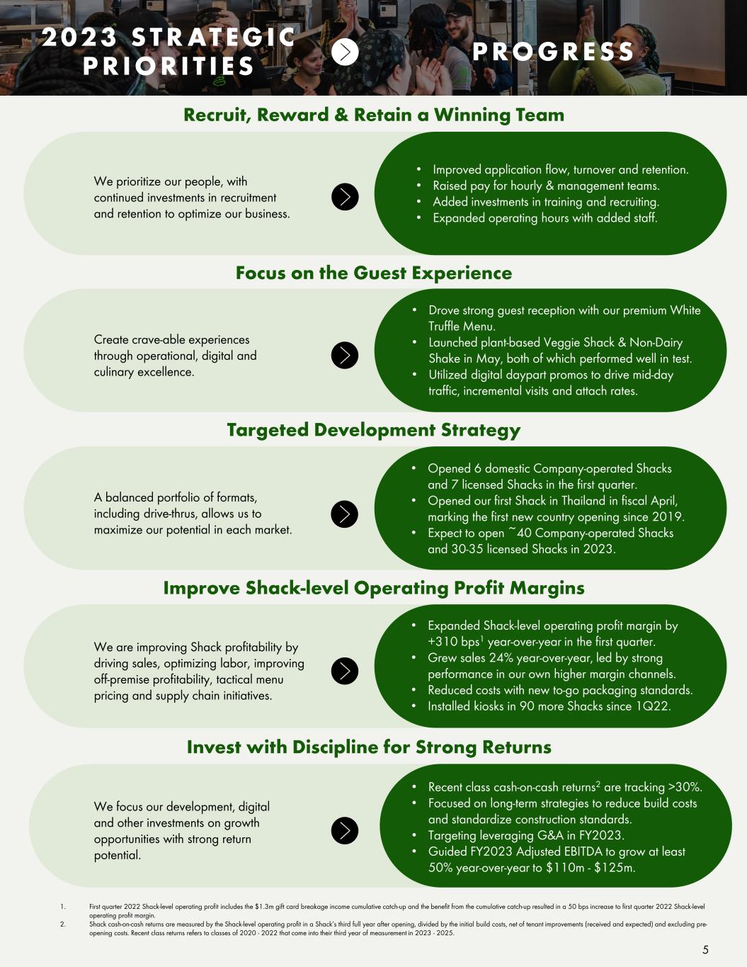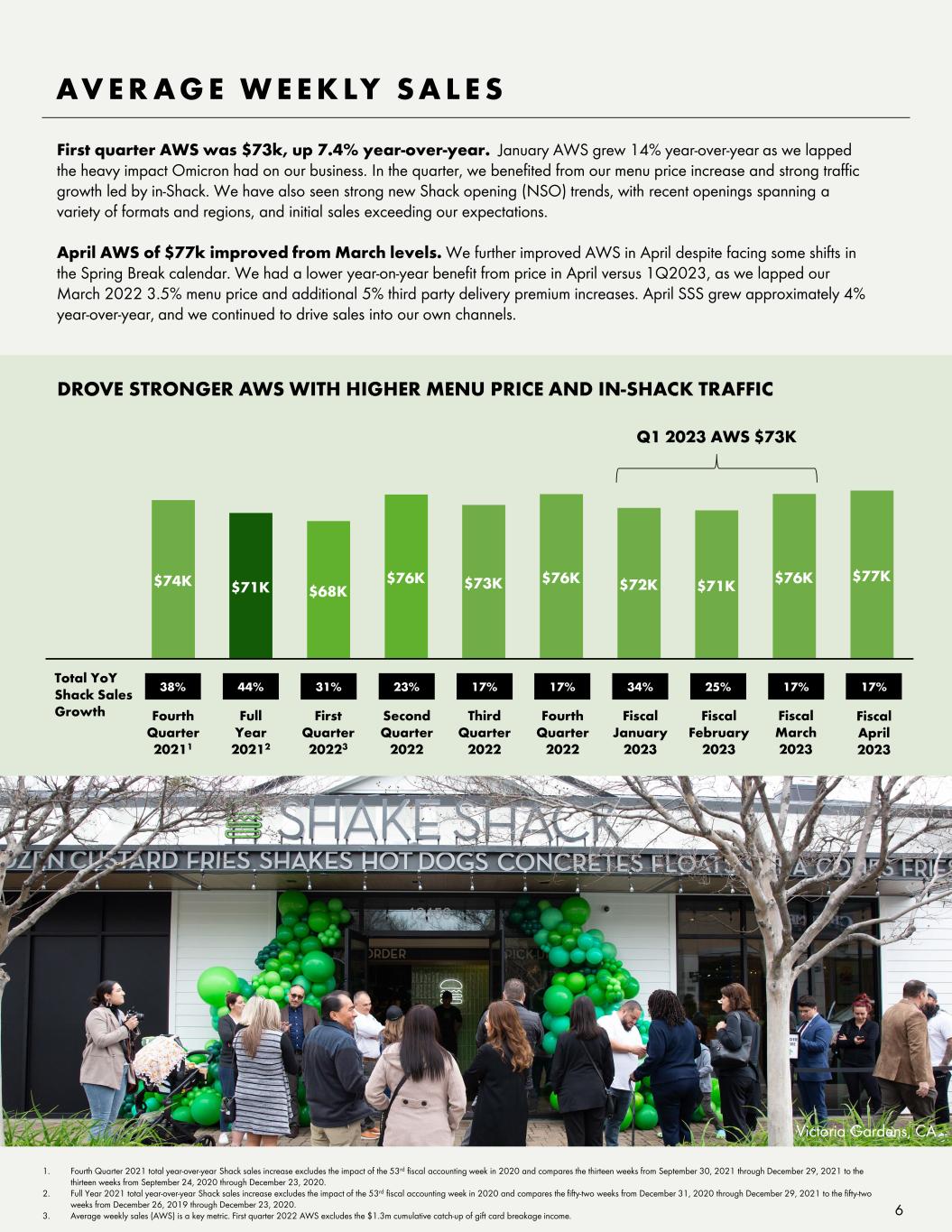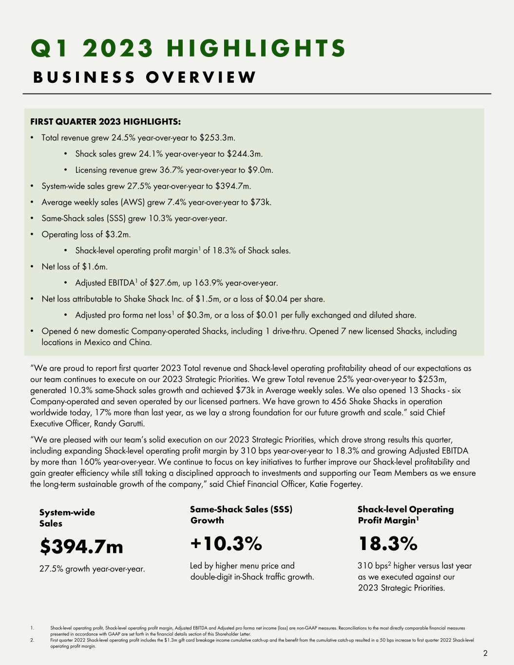 ニューヨーク州ニューヨーク(ビジネスワイヤ) - 2023年5月4日 - シェイクシャック・インク(「シェイクシャック」または「当社」)(NYSE:SHAK)は、2023年第1四半期の業績を株主レターとして、当社の投資家向けウェブサイトの四半期業績セクションに掲載しましたので、こちらでご覧ください:
