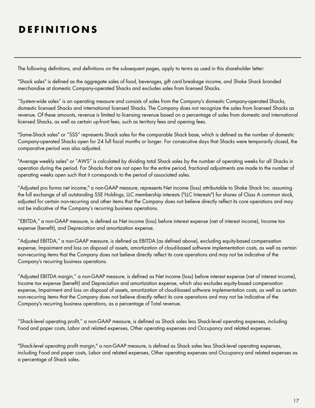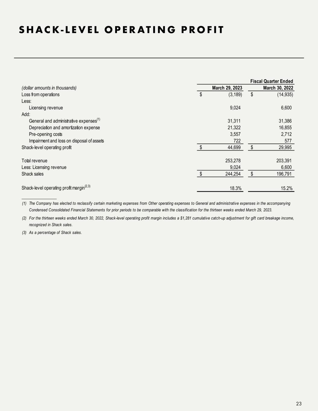 「シャックレベル営業利益率」は、非GAAP指標であり、シャック売上高から、食品及び紙費、人件費及び関連費、その他営業費、及び居住費及び関連費を含むシャックレベル営業費を控除した、シャック売上高に対する比率と定義されています。
