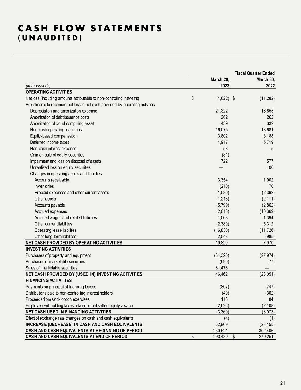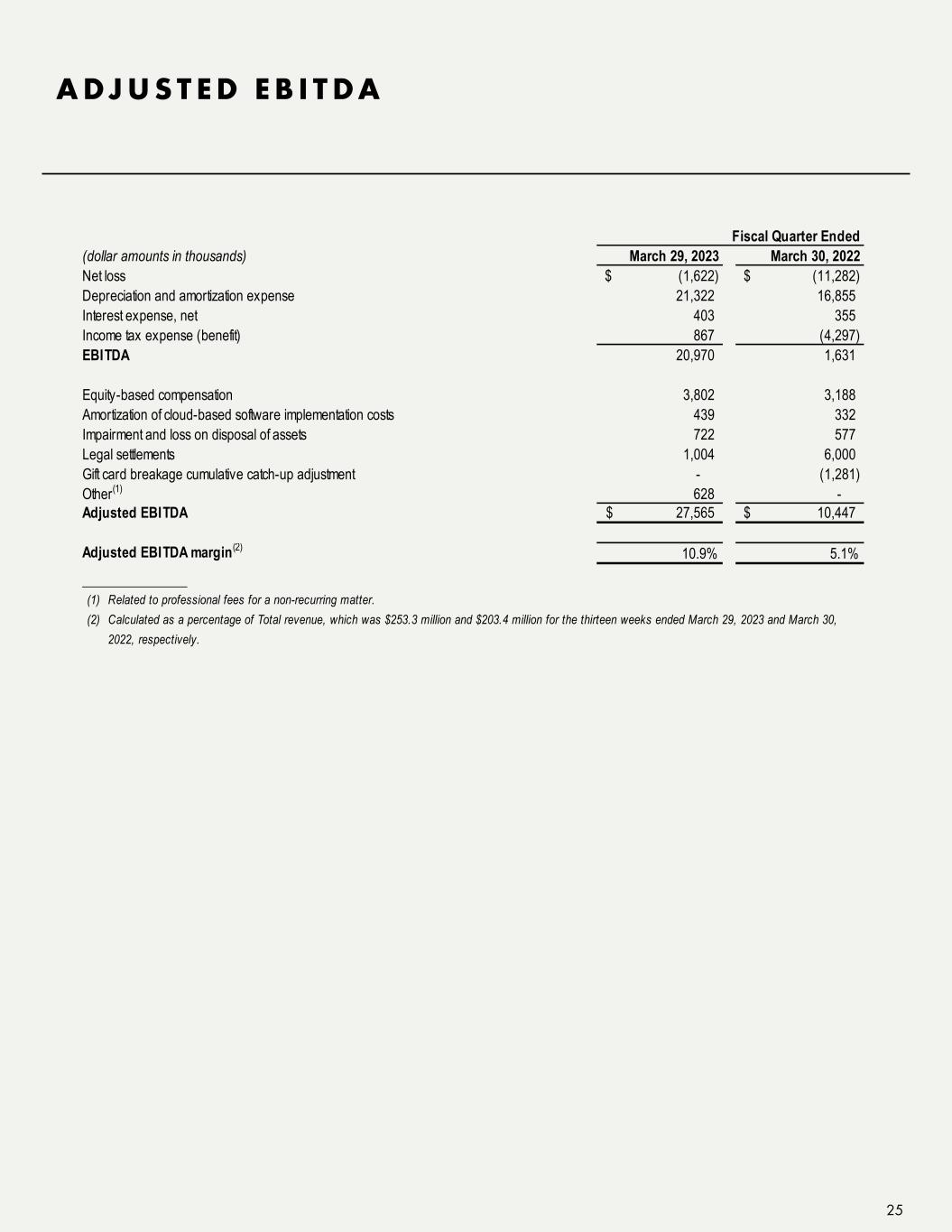 ▪シャックの売上2億4,430万ドル、ライセンス収入900万ドルを含む総売上は、2022年度比24.5%増の2億5,330万ドルとなりました。
