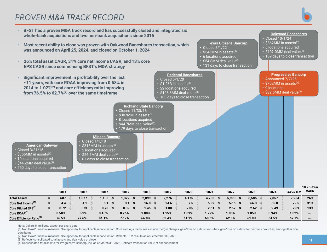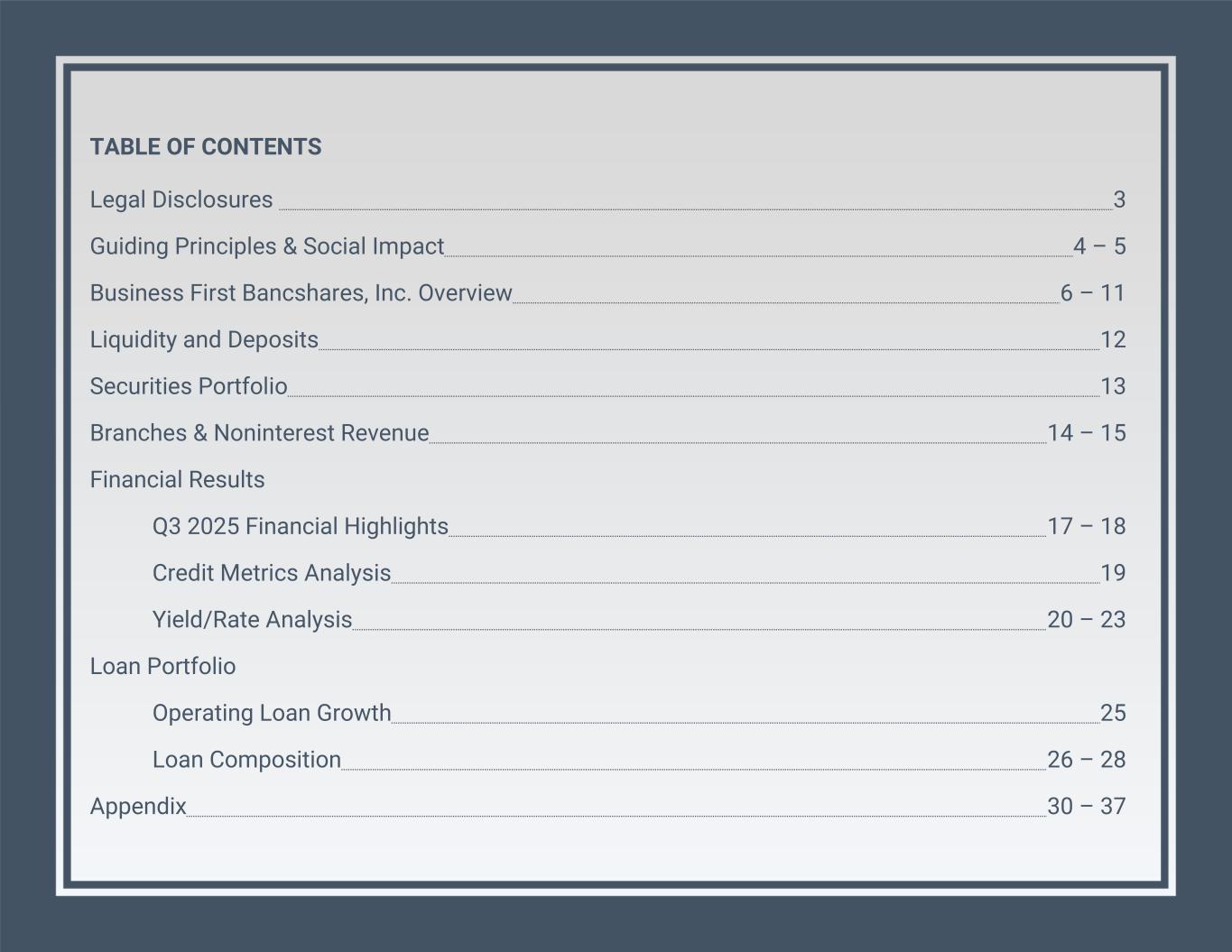 ビジネス・ファースト・バンクシェアーズ、2025年第3四半期決算を発表