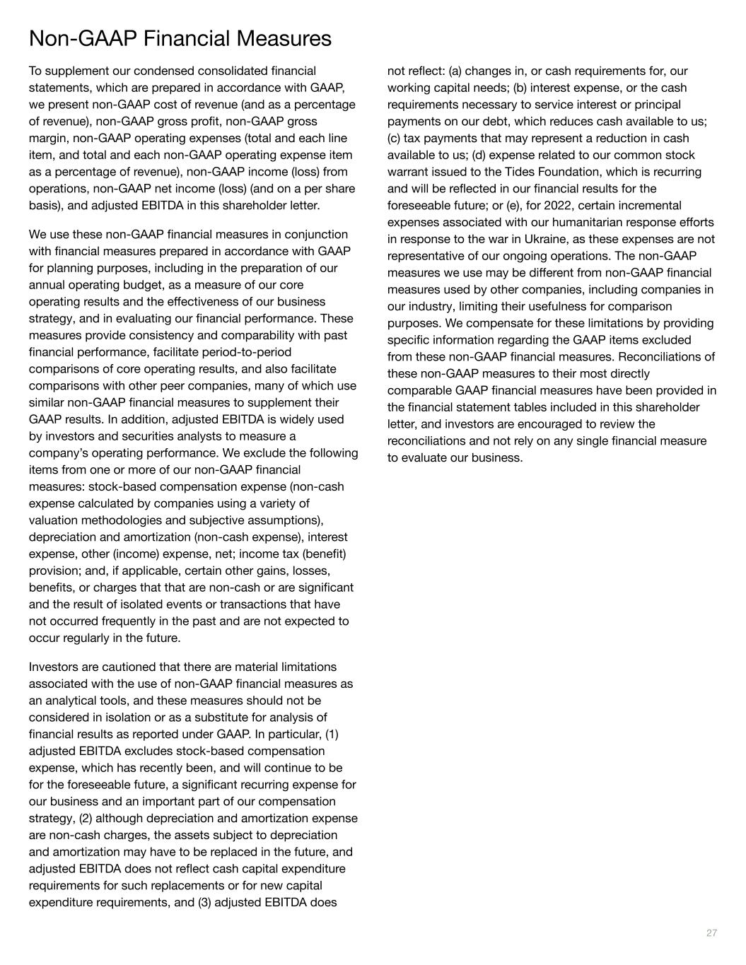 当社は株主通信および電話会議において、非GAAPベースの財務情報を参照している。GAAPベースの業績と非GAAPベースの業績の調整表は、本レポートの別紙99.1として添付されている株主通信に記載されている。