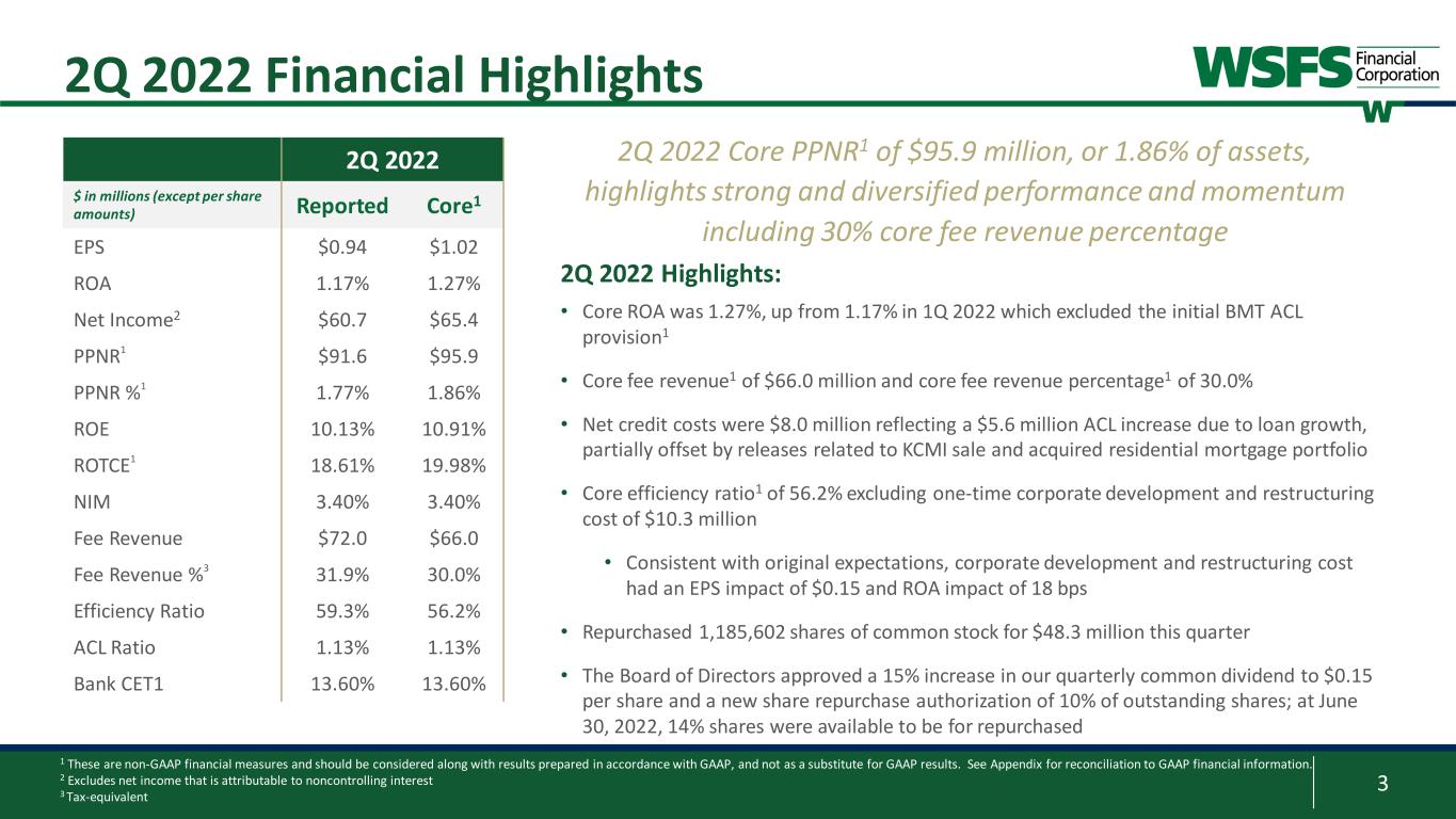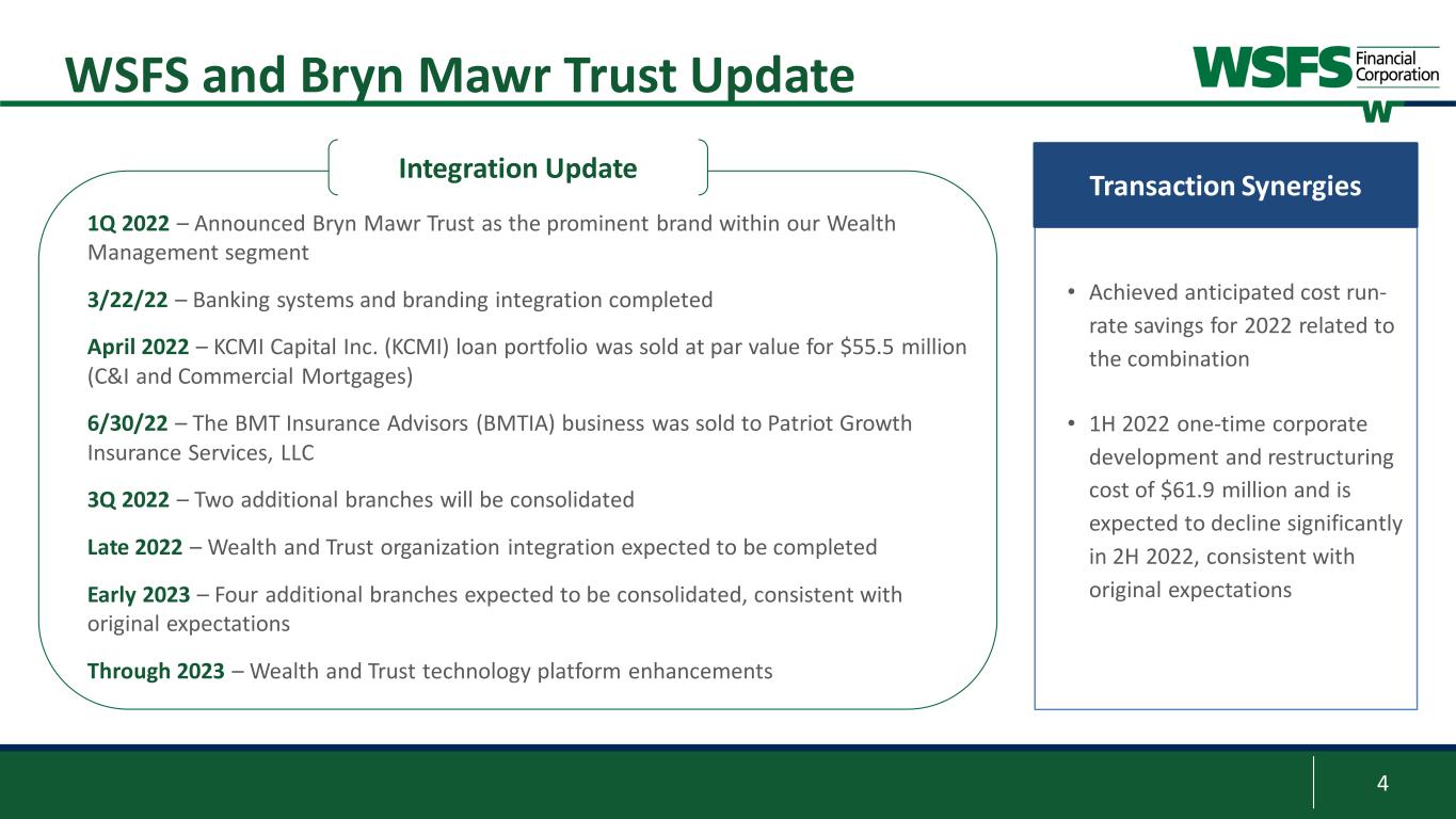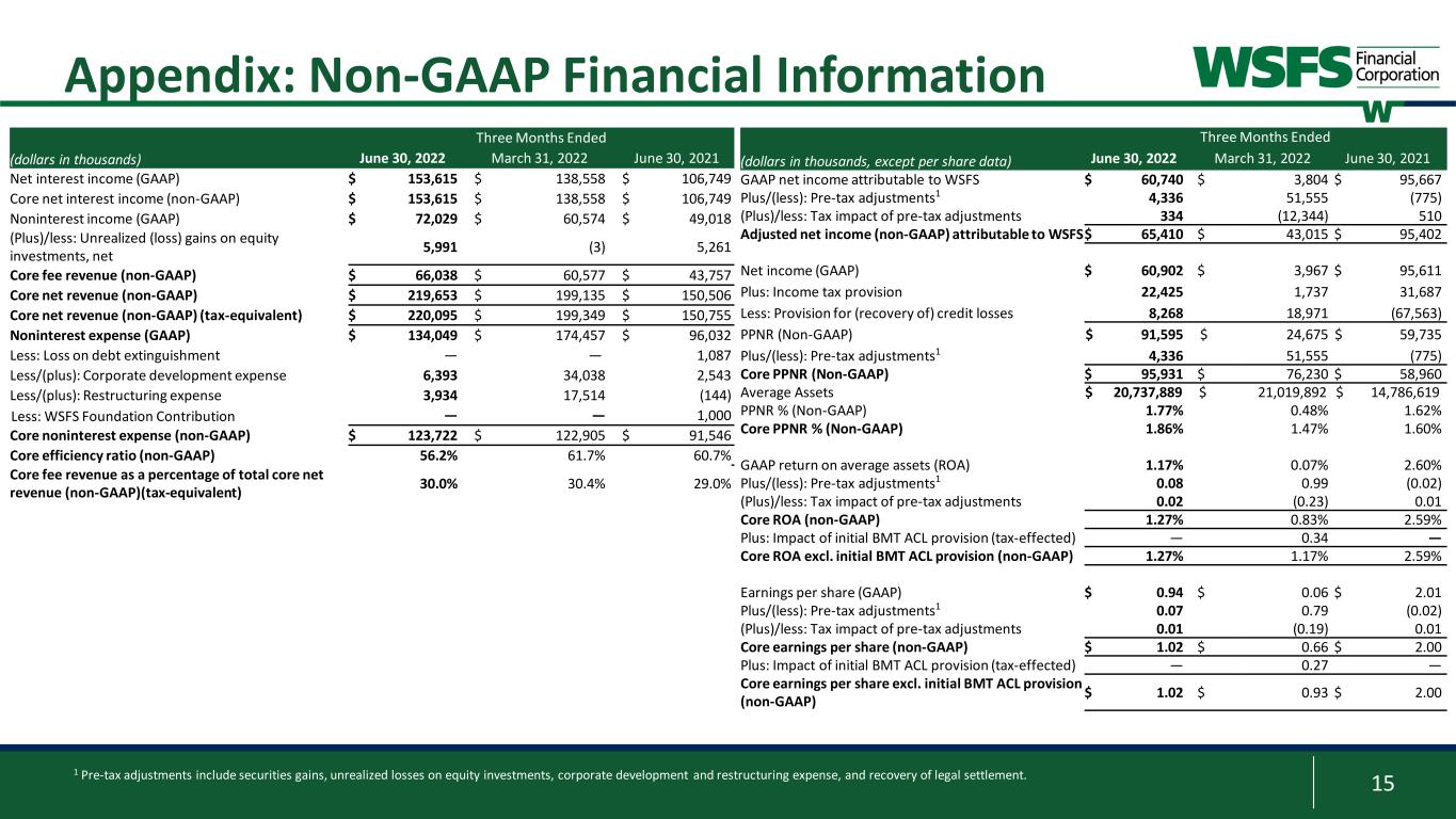 デリー州ウィルミントン発 - WSFS銀行の親会社であるWSFSファイナンシャル・コーポレーション(Nasdaq: WSFS)は本日、2022年度第2四半期の決算を発表しました。