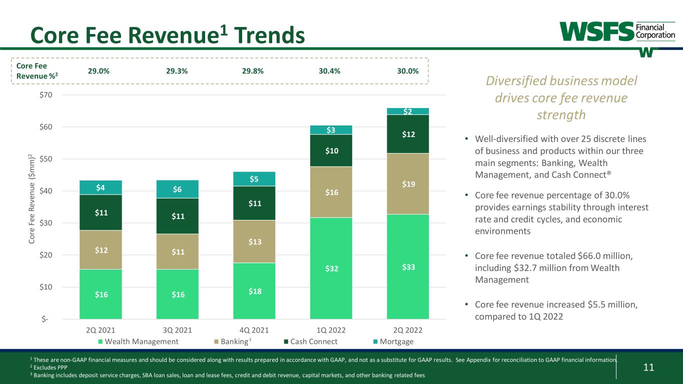 純金利マージンは、金利上昇環境の影響による26bps、バランスシートミックスによる9bps、購入会計増価による4bpsに起因して、2022年1Qから39bps増加した。純金利マージンは、2021年第2四半期から17bps増加しました。これは、バランスシートの規模とミックスから38bps増加しましたが、購入会計増価の減少から13bps、PPPローンから8bps減少し、相殺されたためです。