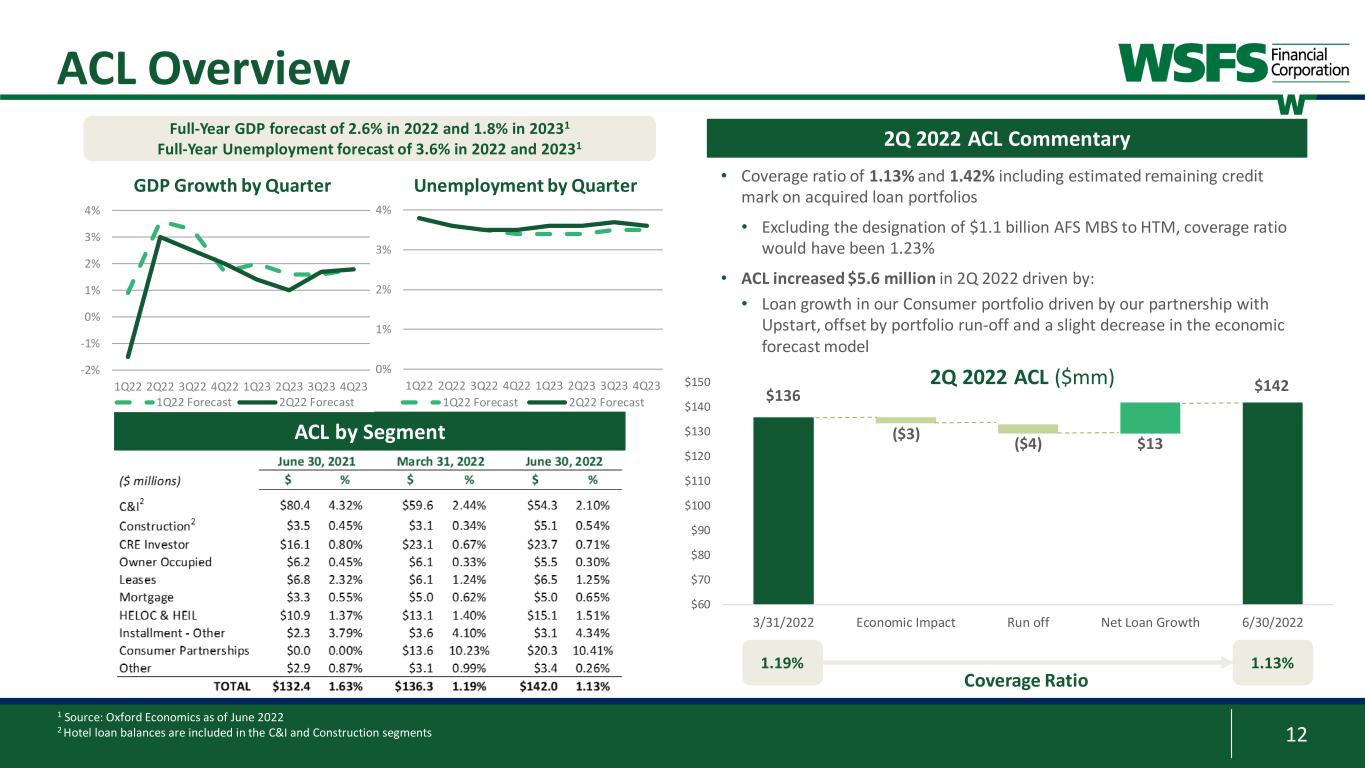 「当面の経済見通しは不透明ですが、当四半期のローンの増加に関連したACLの増加により、資産の質に関する指標は非常に良好な状態を維持しています」。